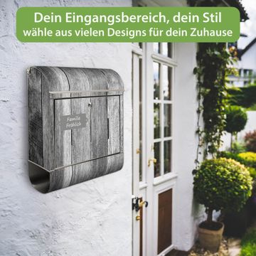 Wandbriefkasten Edelstahl Motiv Holz Monochrom