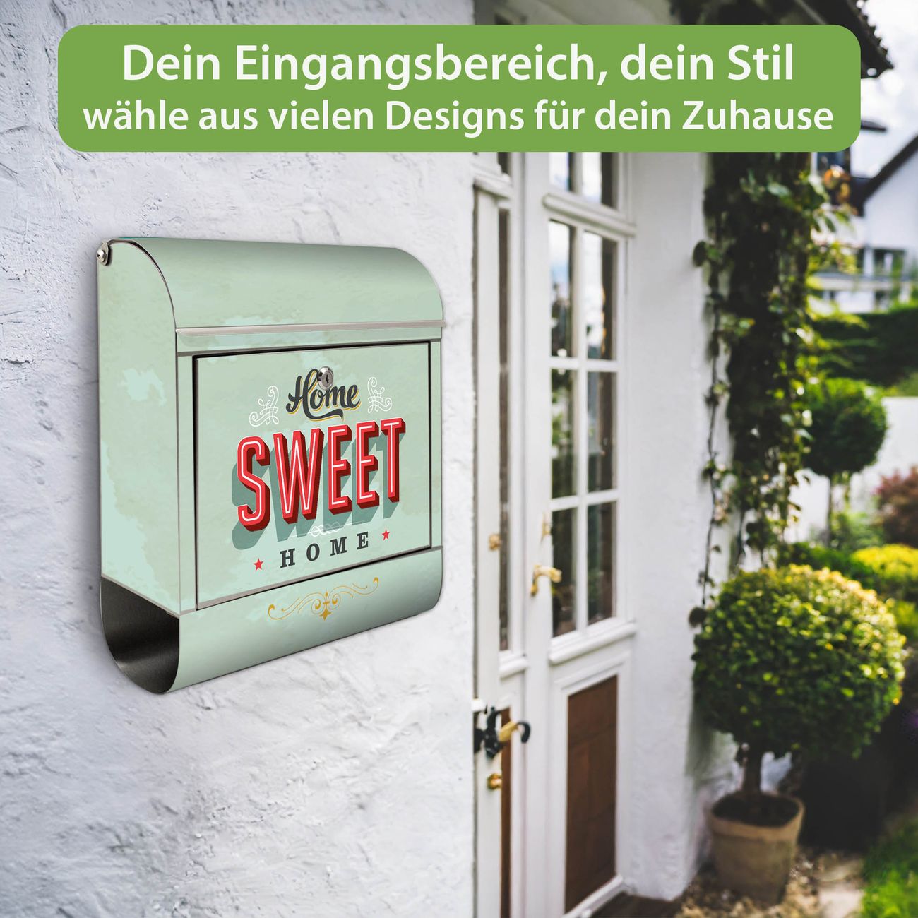 Wandbriefkasten Edelstahl Motiv Home Sweet Home