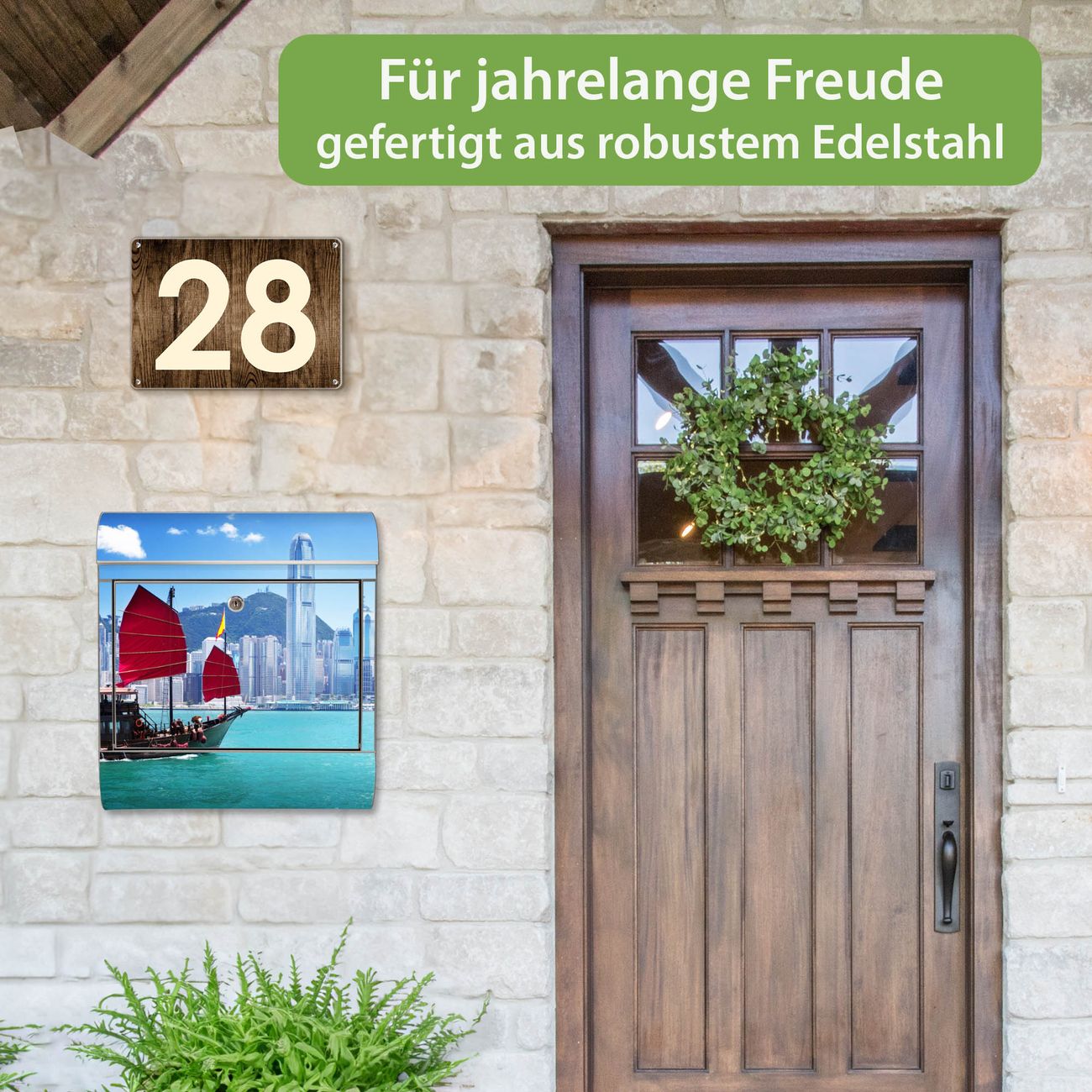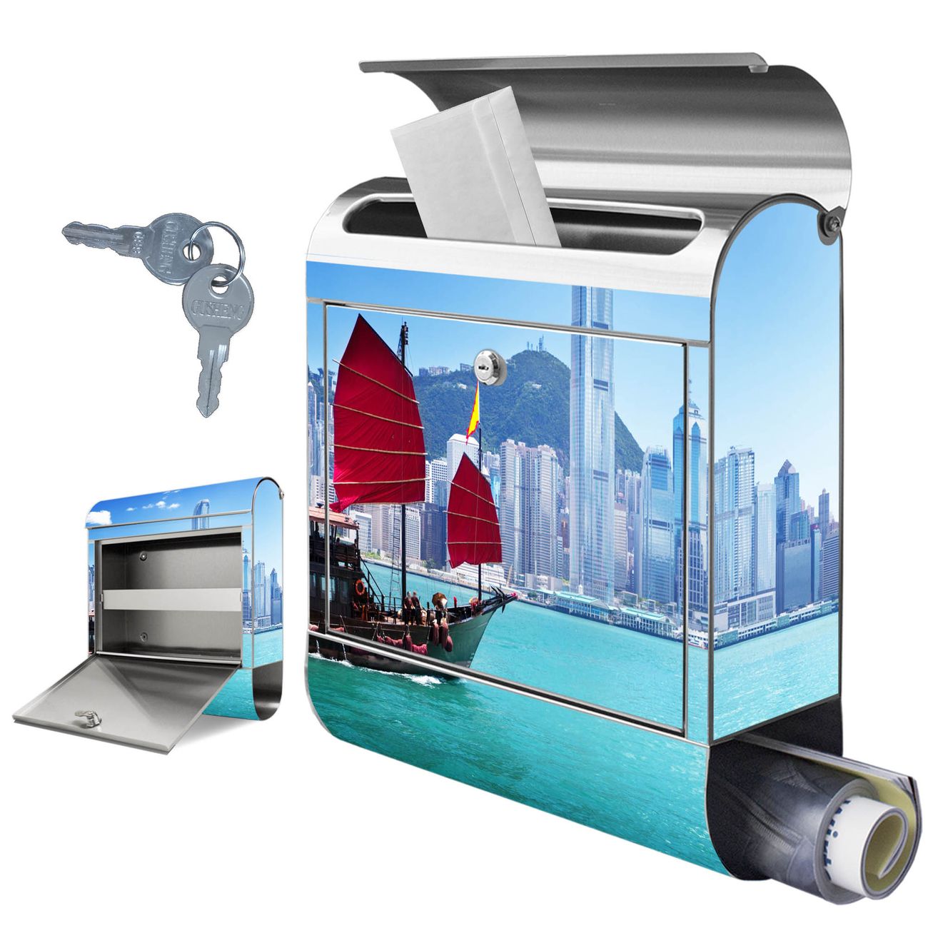 Wandbriefkasten Edelstahl Motiv Hong Kong