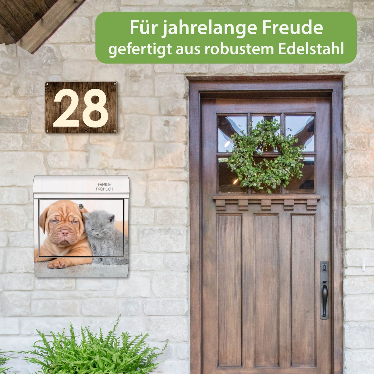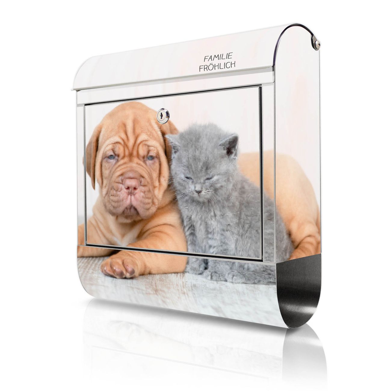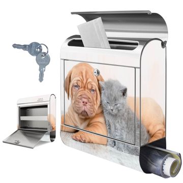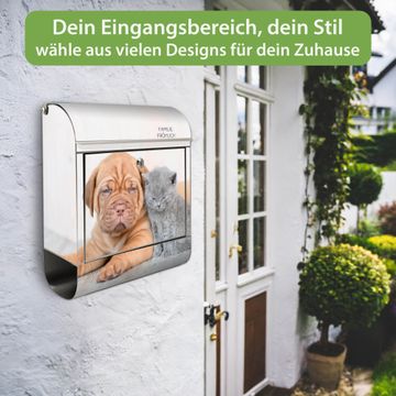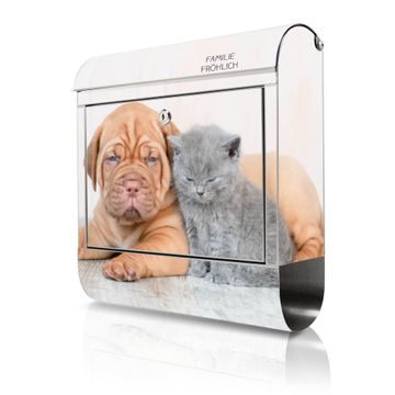 Wandbriefkasten Edelstahl Motiv Hund und Katze