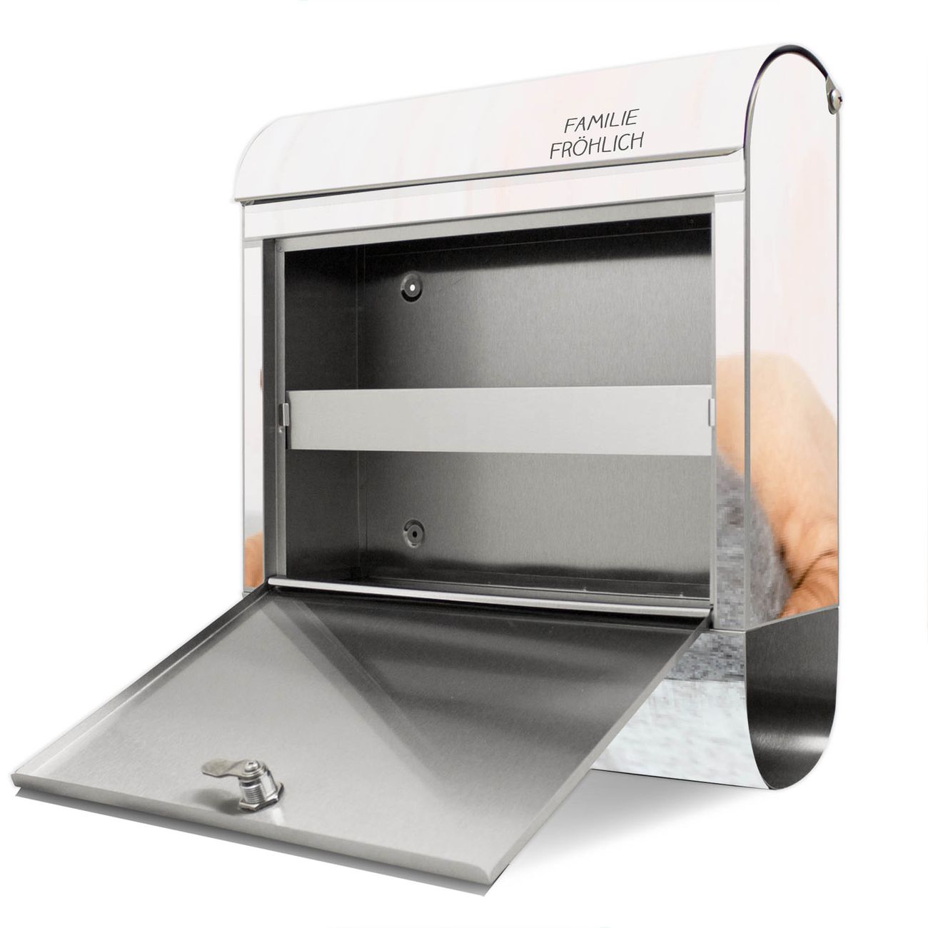 Der Vorschau-Text Familie Fröhlich wird durch Ihren persönlichen Wunschtext ersetzt. Die Schriftart und Farbe bleiben gleich wie in der Vorschau.