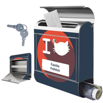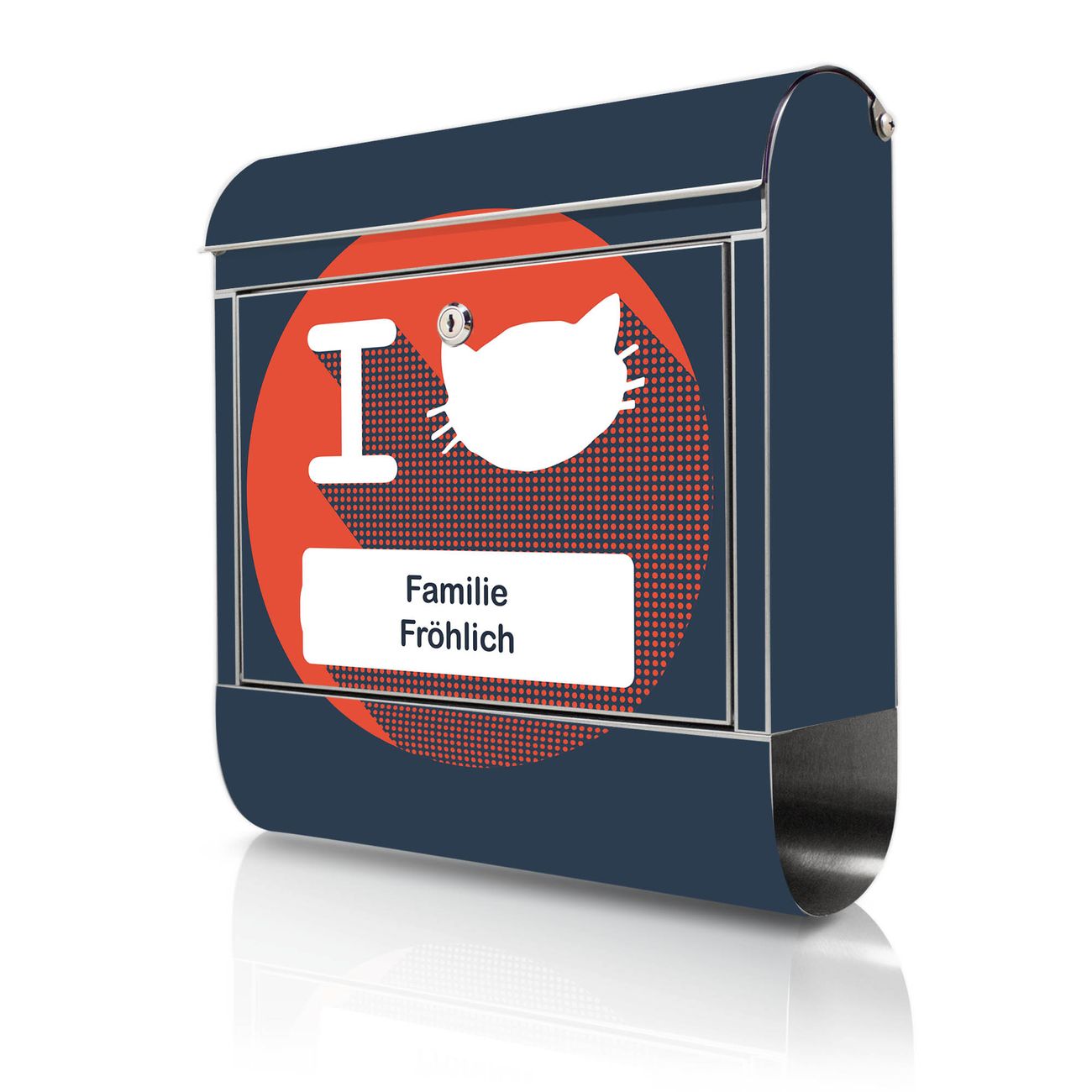 Wandbriefkasten Edelstahl Motiv I Love Cats