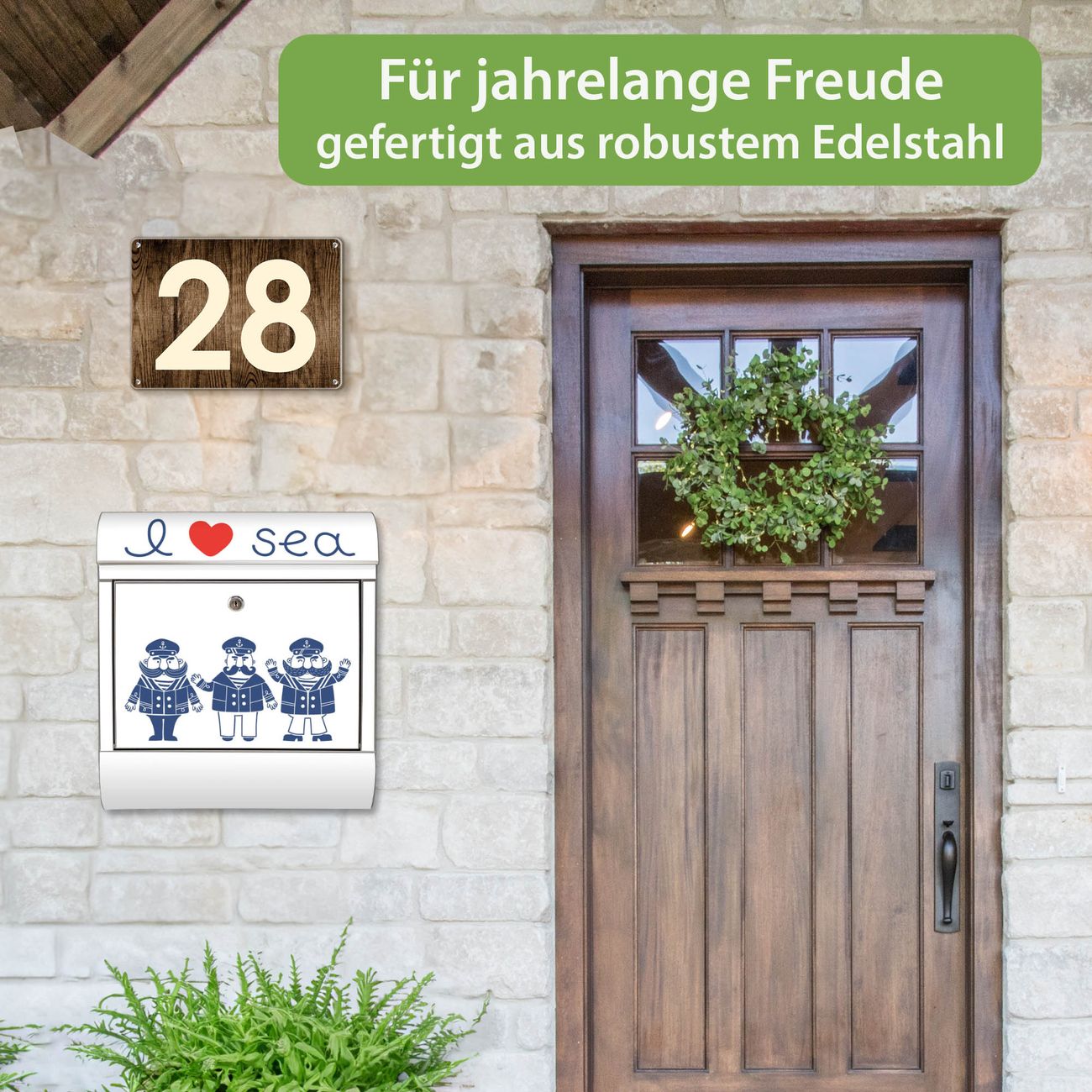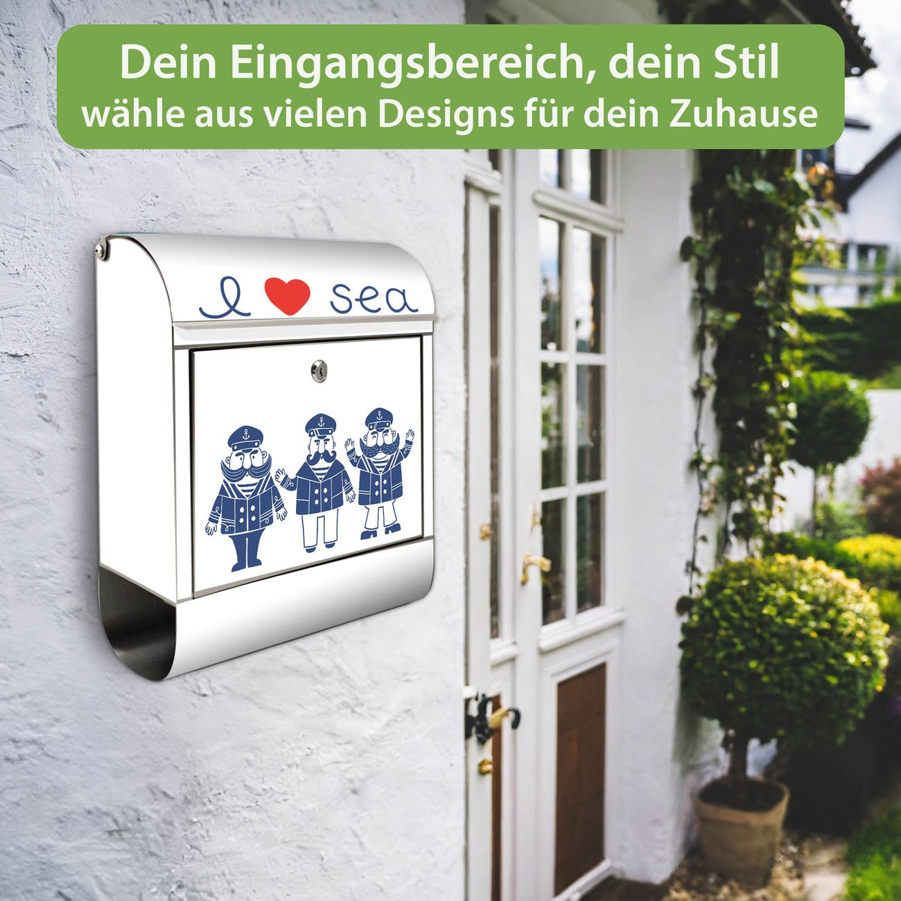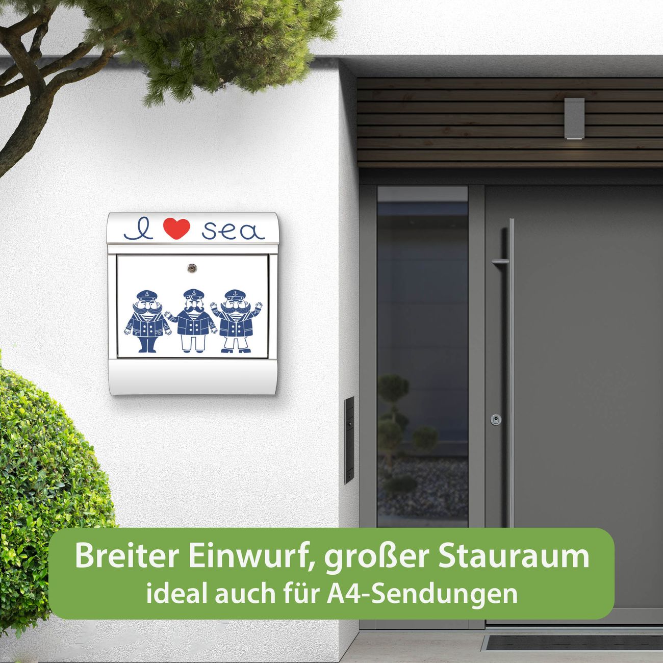Wandbriefkasten Edelstahl Motiv I Love Sea