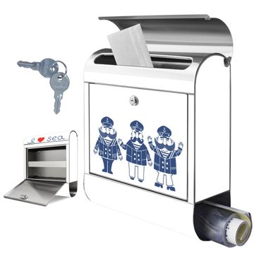 FUNKTION: Der banjado Edelstahl Briefkasten mit Motiv Motiv I Love Sea bietet Ihnen mit seinem Fassungsvermögen genügend Platz auch für große A4 Sendungen. Das integrierte Zeitungsfach eignet sich hervorragend um unkompliziert die Tageszeitung zu fassen. Auf Wunsch können Sie bei uns den passenden Ständer kaufen und so aus dem Wandbriefkasten einen Standbriefkasten machen. DESIGN: Der Motivbriefkasten hat ein sehr ansprechendes und ausgefallenes Design, damit entlocken Sie Ihren Nachbarn und dem Postboten ein Lächeln. Heben Sie Sich ab von der tristen grauen Masse ohne auf Funktionalität zu verzichten. DETAILS: Der Design Briefkasten mit Motiv Motiv I Love Sea besteht aus hochwertigem 18/0 Edelstahl. Das Motiv besteht aus einer wetter- und UV-resistenten Folie, die mit einem Schutzlaminat überzogen ist. Der Briefkasten wird mit Montagematerial und zwei Schlüsseln geliefert. NUTZEN: Sie können diesen Briefkasten sowohl als Wandbriefkasten montieren oder einen passenden Ständer auswählen und als Standbriefkasten einbetonieren. Die Größe bietet genügend Platz für Sendungen aller Art, das hochwertige Edelstahl ist rostfrei und die Motivfolie absolut wetterfest. SCHUTZ: Um Ihre Post optimal vor Witterungseinflüssen wie Starkregen zu schützen, empfehlen wir, den Briefkasten geschützt anzubringen. BANJADO: Ihr Briefkasten wird in Sachsen in einer kleinen Manufaktur von Hand veredelt. Die Motivfolie ist lösungsmittelfrei und schutzlaminiert, dies sorgt für einen langen Halt. Wir legen großen Wert auf die Verbindung von Funktionalität und Design. Sie erhalten Handarbeit aus Sachsen.
