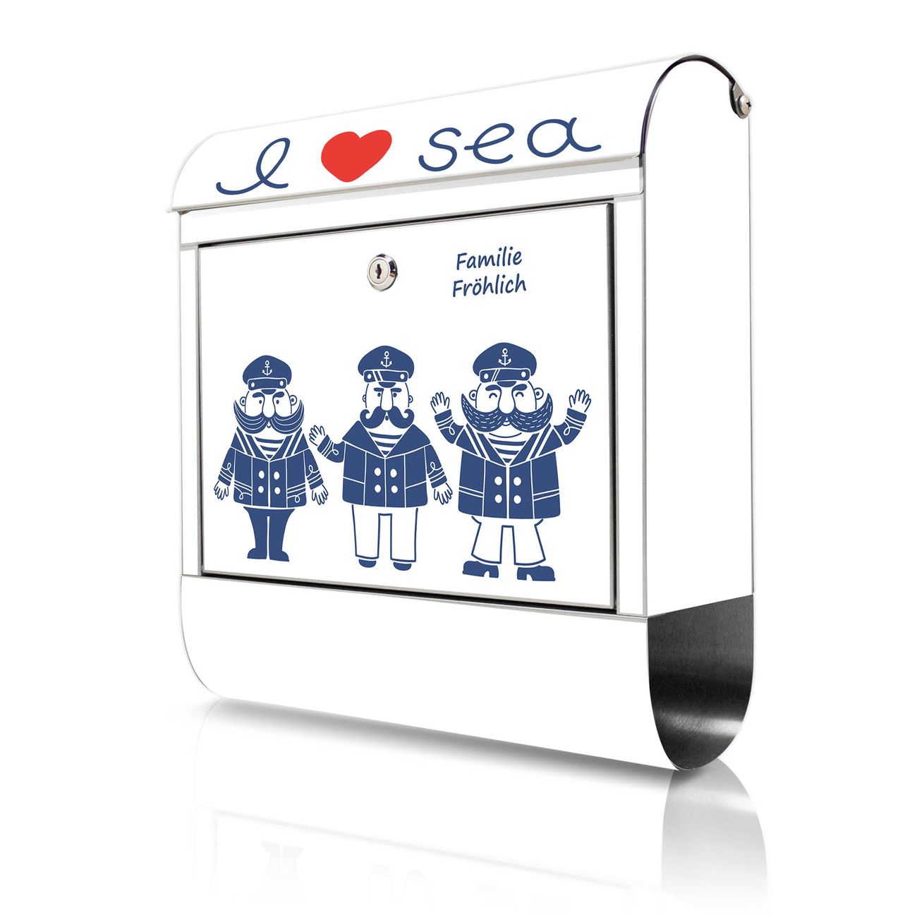 Wandbriefkasten Edelstahl Motiv I Love Sea