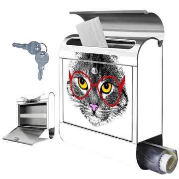 FUNKTION: Der banjado Edelstahl Briefkasten mit Motiv Motiv Intellicat bietet Ihnen mit seinem Fassungsvermögen genügend Platz auch für große A4 Sendungen. Das integrierte Zeitungsfach eignet sich hervorragend um unkompliziert die Tageszeitung zu fassen. Auf Wunsch können Sie bei uns den passenden Ständer kaufen und so aus dem Wandbriefkasten einen Standbriefkasten machen. DESIGN: Der Motivbriefkasten hat ein sehr ansprechendes und ausgefallenes Design, damit entlocken Sie Ihren Nachbarn und dem Postboten ein Lächeln. Heben Sie Sich ab von der tristen grauen Masse ohne auf Funktionalität zu verzichten. DETAILS: Der Design Briefkasten mit Motiv Motiv Intellicat besteht aus hochwertigem 18/0 Edelstahl. Das Motiv besteht aus einer wetter- und UV-resistenten Folie, die mit einem Schutzlaminat überzogen ist. Der Briefkasten wird mit Montagematerial und zwei Schlüsseln geliefert. NUTZEN: Sie können diesen Briefkasten sowohl als Wandbriefkasten montieren oder einen passenden Ständer auswählen und als Standbriefkasten einbetonieren. Die Größe bietet genügend Platz für Sendungen aller Art, das hochwertige Edelstahl ist rostfrei und die Motivfolie absolut wetterfest. SCHUTZ: Um Ihre Post optimal vor Witterungseinflüssen wie Starkregen zu schützen, empfehlen wir, den Briefkasten geschützt anzubringen. BANJADO: Ihr Briefkasten wird in Sachsen in einer kleinen Manufaktur von Hand veredelt. Die Motivfolie ist lösungsmittelfrei und schutzlaminiert, dies sorgt für einen langen Halt. Wir legen großen Wert auf die Verbindung von Funktionalität und Design. Sie erhalten Handarbeit aus Sachsen.