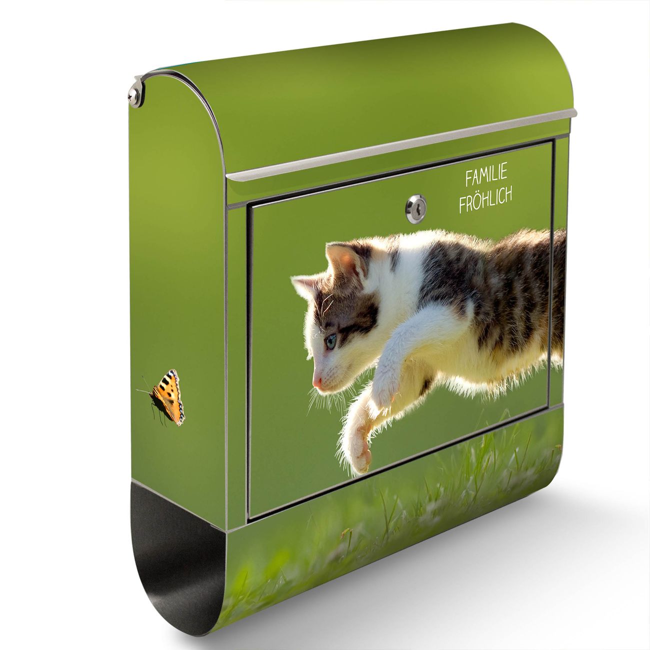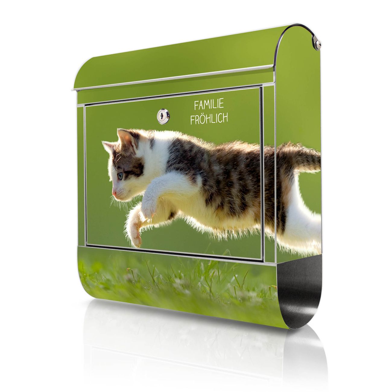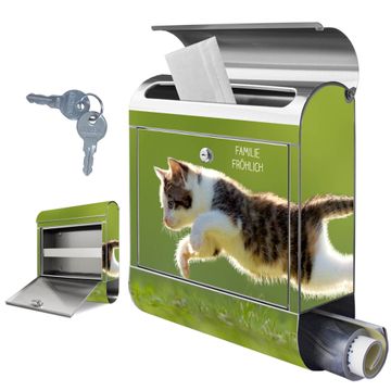 Wandbriefkasten Edelstahl Motiv Jagende Katze