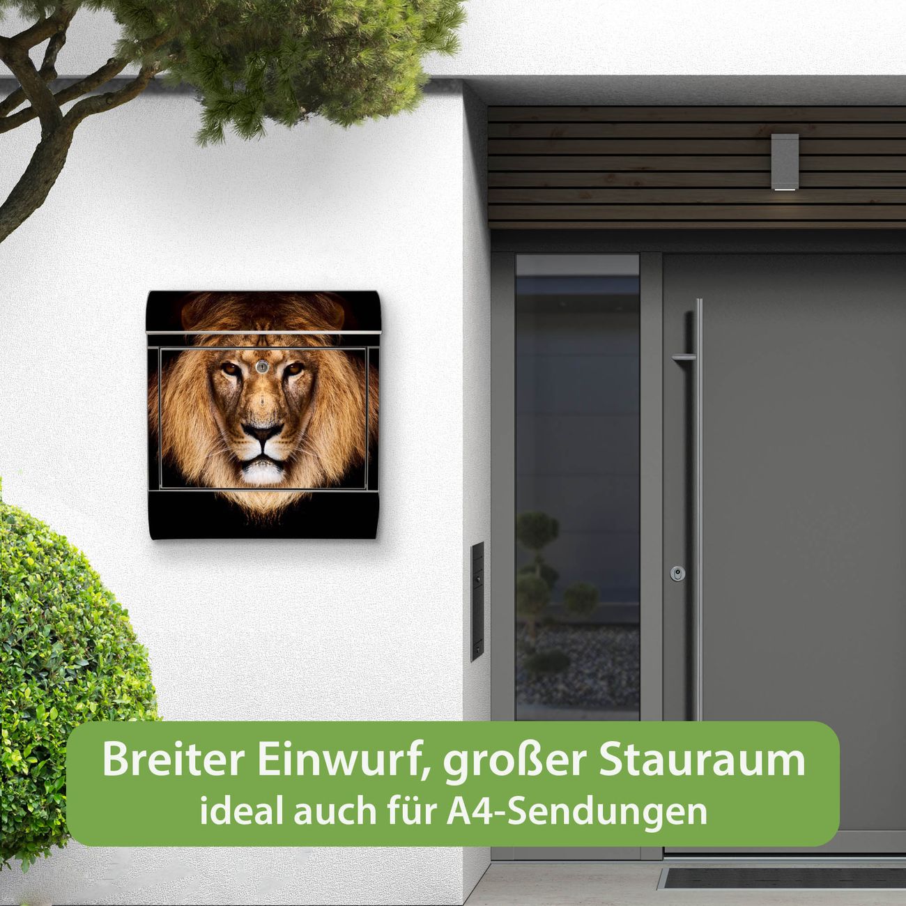 FUNKTION: Der banjado Edelstahl Briefkasten mit Motiv Motiv Jakob bietet Ihnen mit seinem Fassungsvermögen genügend Platz auch für große A4 Sendungen. Das integrierte Zeitungsfach eignet sich hervorragend um unkompliziert die Tageszeitung zu fassen. Auf Wunsch können Sie bei uns den passenden Ständer kaufen und so aus dem Wandbriefkasten einen Standbriefkasten machen. DESIGN: Der Motivbriefkasten hat ein sehr ansprechendes und ausgefallenes Design, damit entlocken Sie Ihren Nachbarn und dem Postboten ein Lächeln. Heben Sie Sich ab von der tristen grauen Masse ohne auf Funktionalität zu verzichten. DETAILS: Der Design Briefkasten mit Motiv Motiv Jakob besteht aus hochwertigem 18/0 Edelstahl. Das Motiv besteht aus einer wetter- und UV-resistenten Folie, die mit einem Schutzlaminat überzogen ist. Der Briefkasten wird mit Montagematerial und zwei Schlüsseln geliefert. NUTZEN: Sie können diesen Briefkasten sowohl als Wandbriefkasten montieren oder einen passenden Ständer auswählen und als Standbriefkasten einbetonieren. Die Größe bietet genügend Platz für Sendungen aller Art, das hochwertige Edelstahl ist rostfrei und die Motivfolie absolut wetterfest. SCHUTZ: Um Ihre Post optimal vor Witterungseinflüssen wie Starkregen zu schützen, empfehlen wir, den Briefkasten geschützt anzubringen. BANJADO: Ihr Briefkasten wird in Sachsen in einer kleinen Manufaktur von Hand veredelt. Die Motivfolie ist lösungsmittelfrei und schutzlaminiert, dies sorgt für einen langen Halt. Wir legen großen Wert auf die Verbindung von Funktionalität und Design. Sie erhalten Handarbeit aus Sachsen.