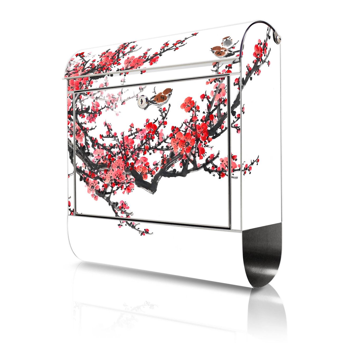 Wandbriefkasten Edelstahl Motiv Japanische Blüten 1