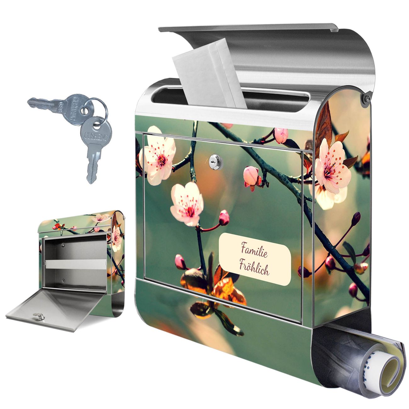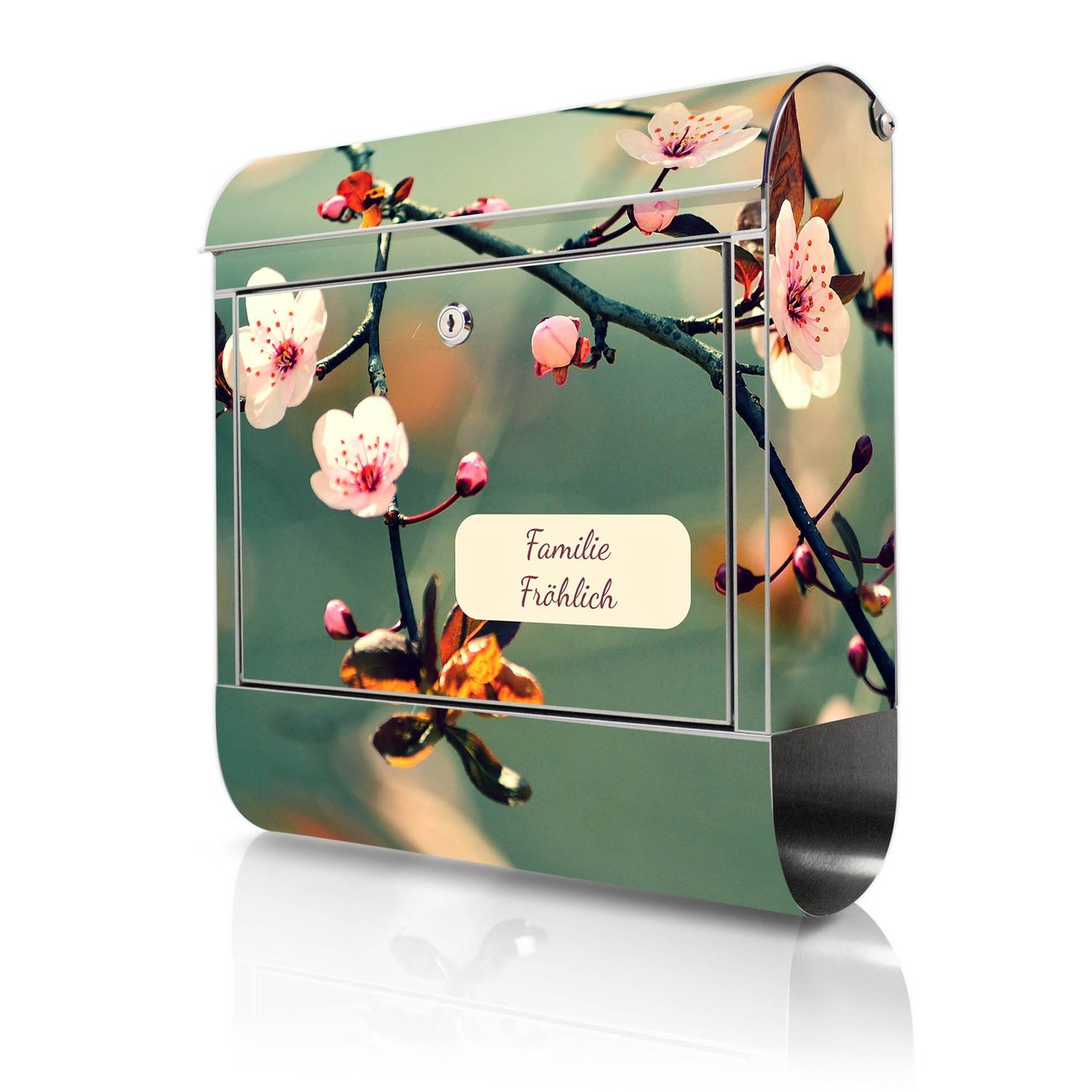 Wandbriefkasten Edelstahl Motiv Japankirsche