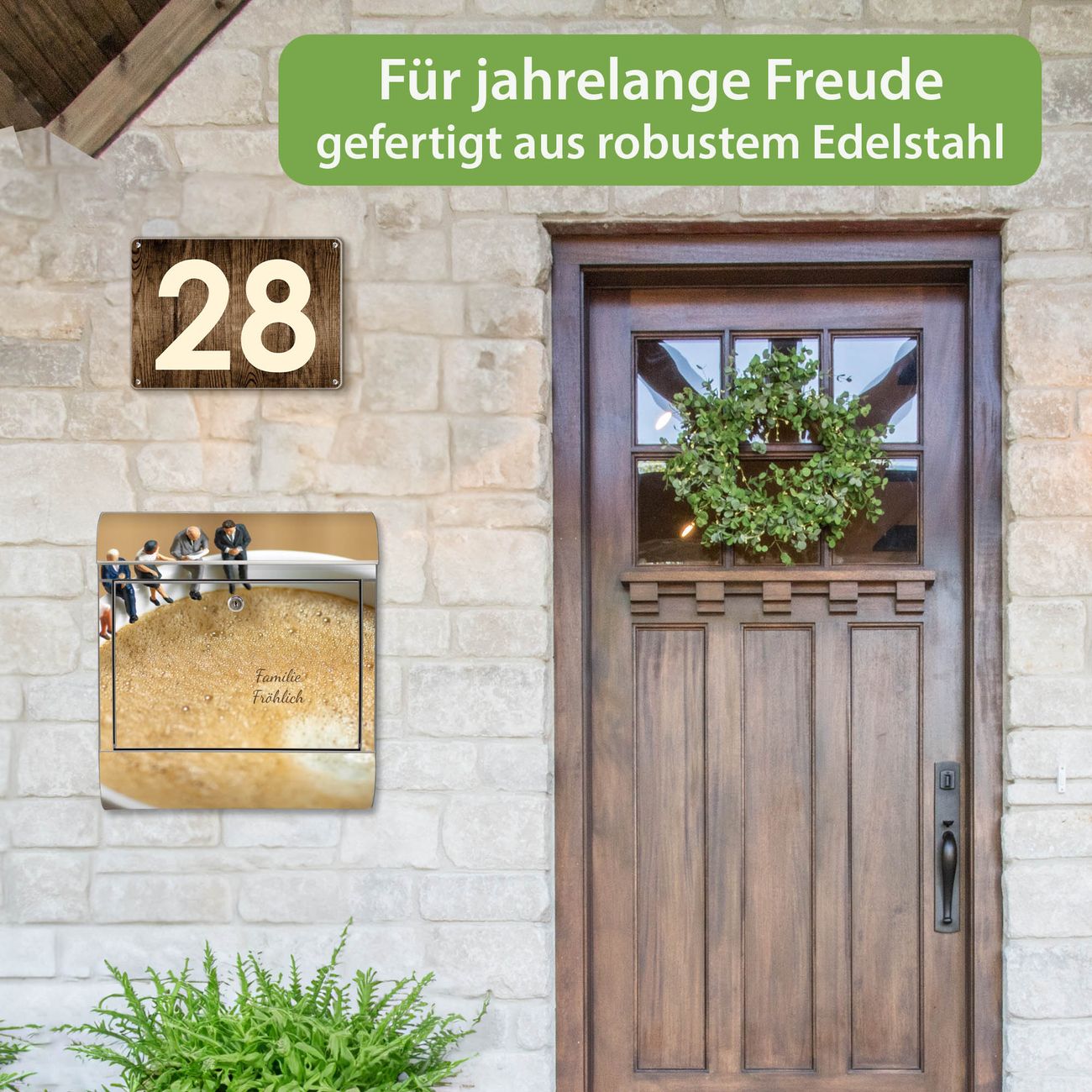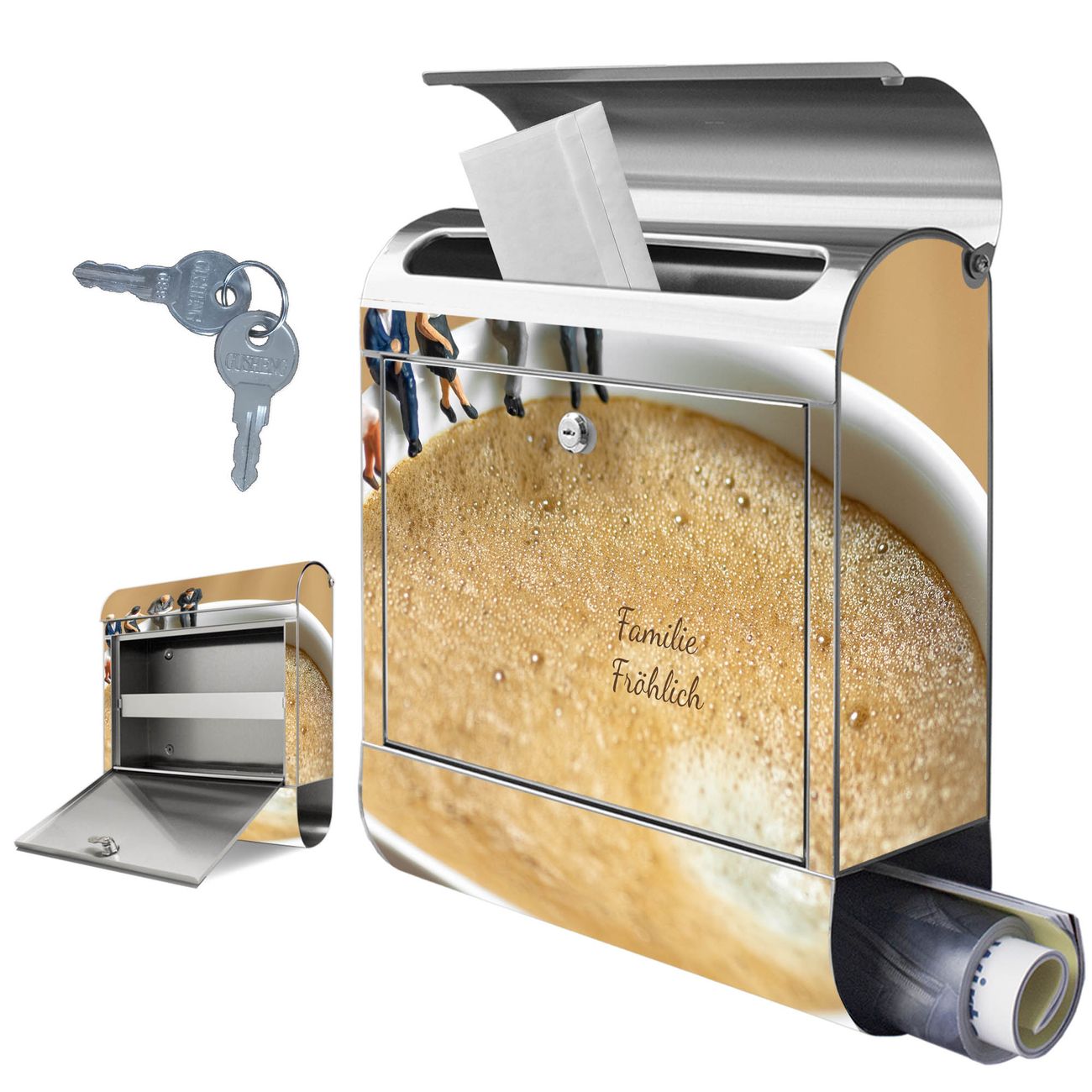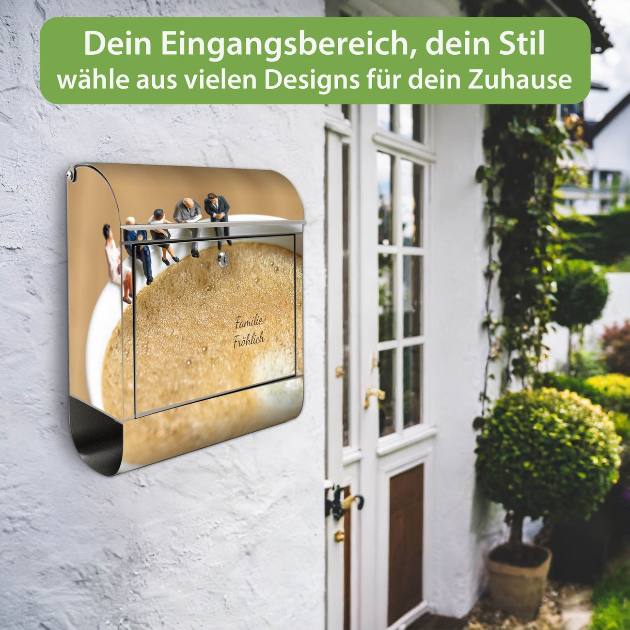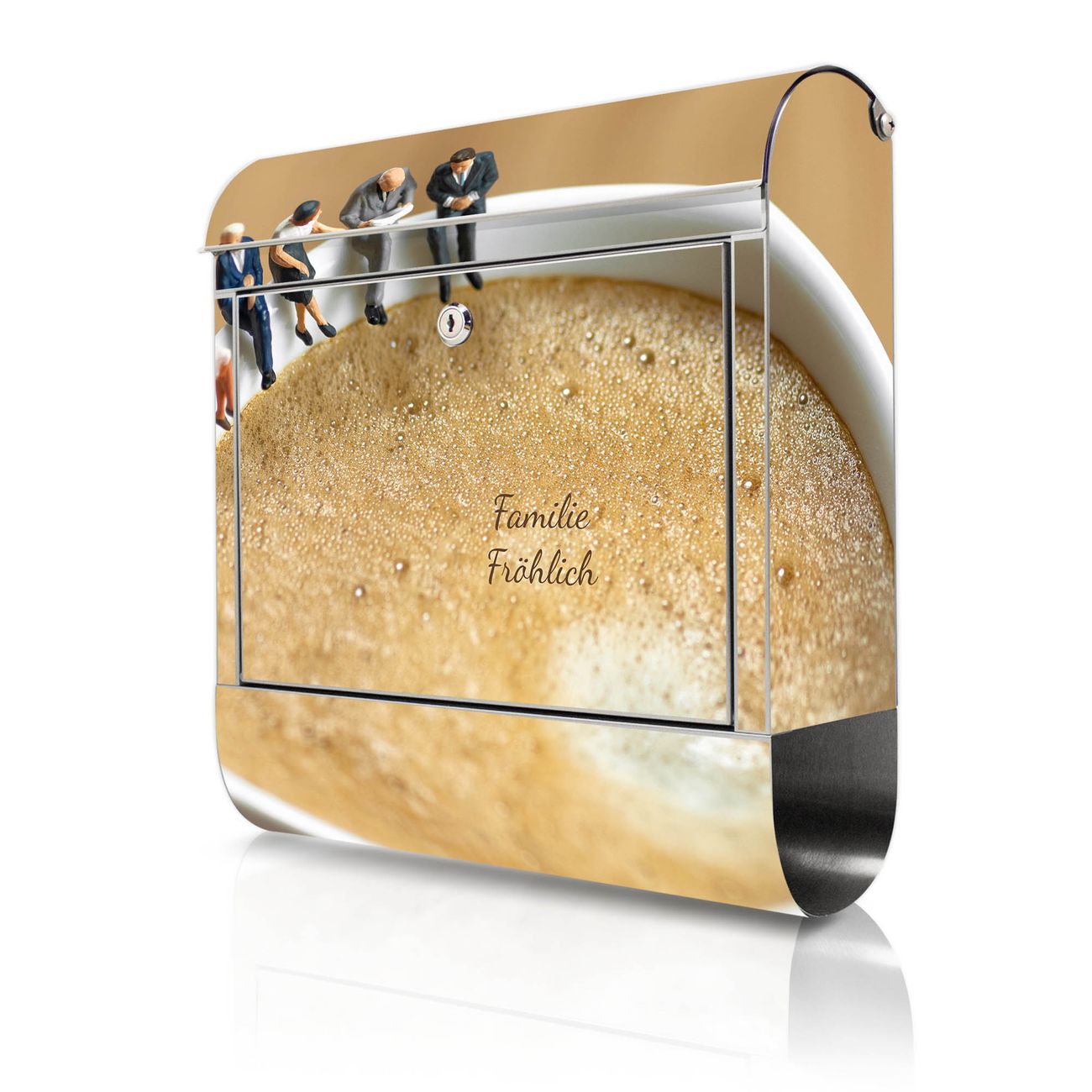Wandbriefkasten Edelstahl Motiv Kaffeepause