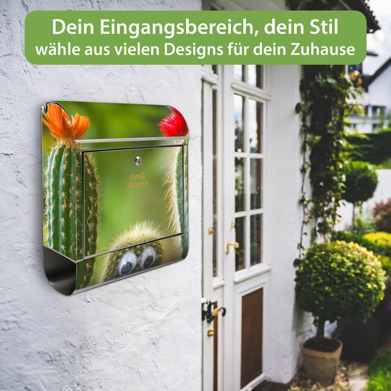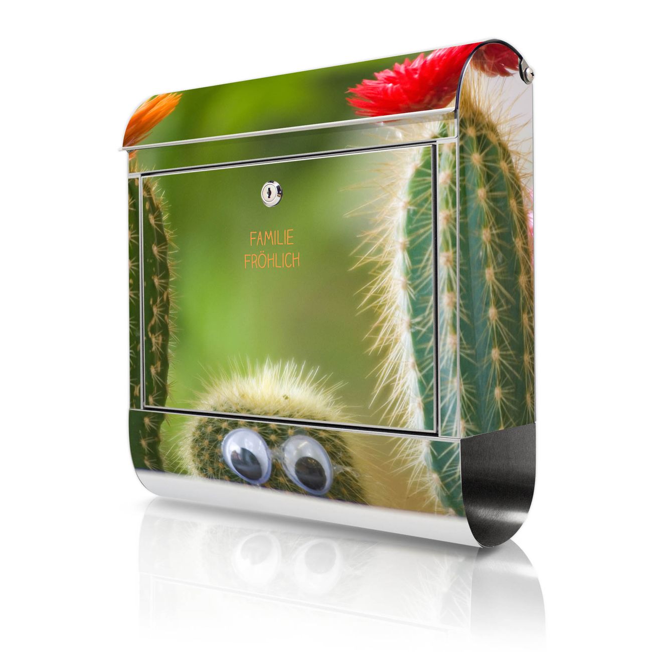 Wandbriefkasten Edelstahl Motiv Kakteen