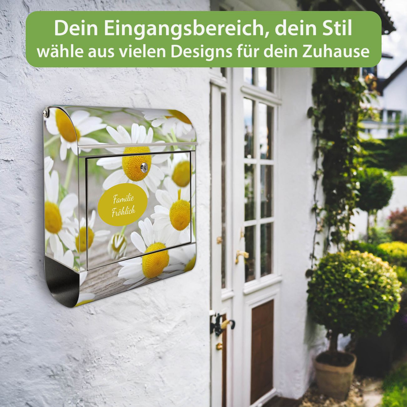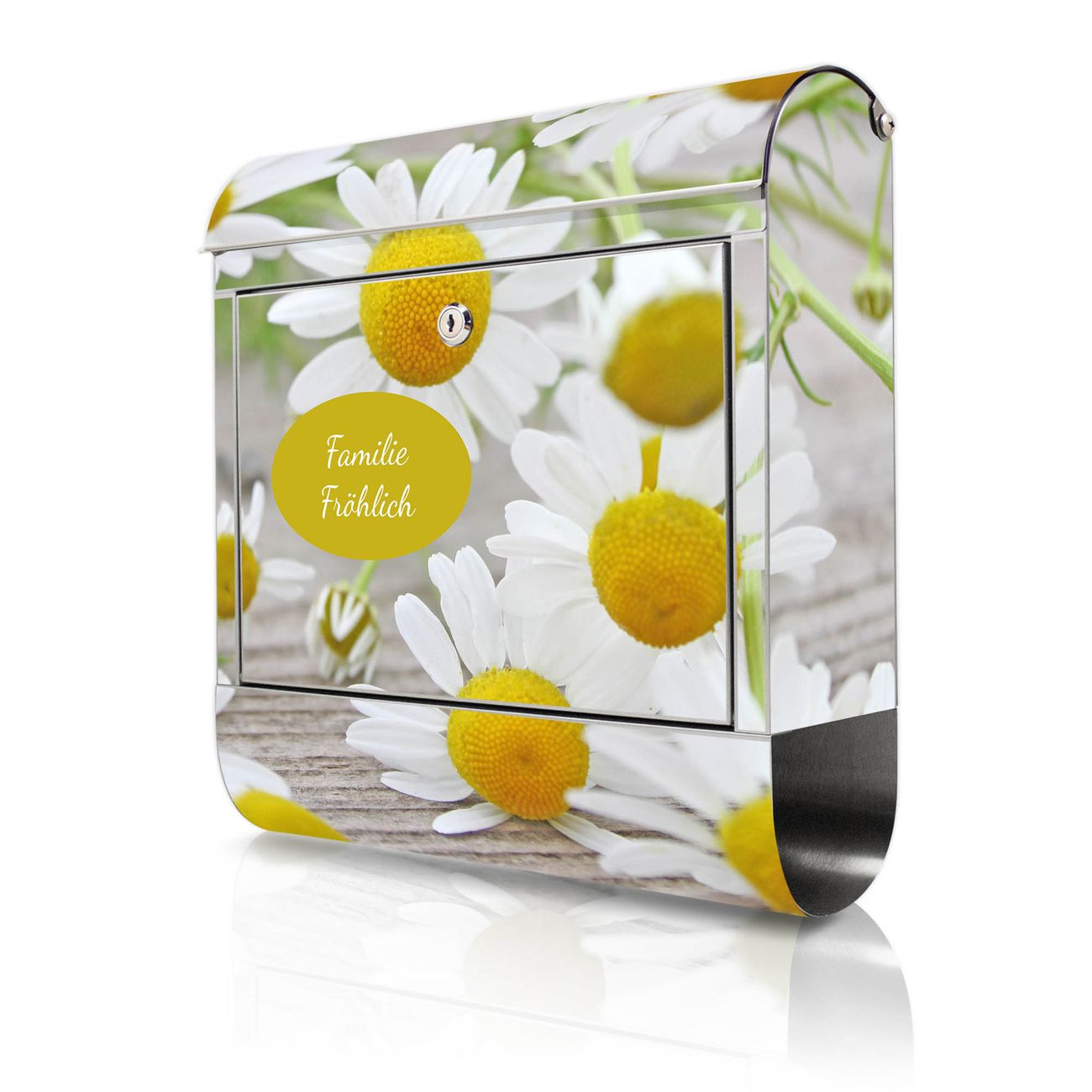 Wandbriefkasten Edelstahl Motiv Kamillenblüten