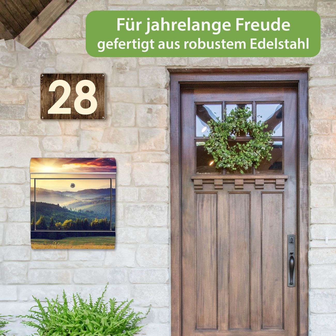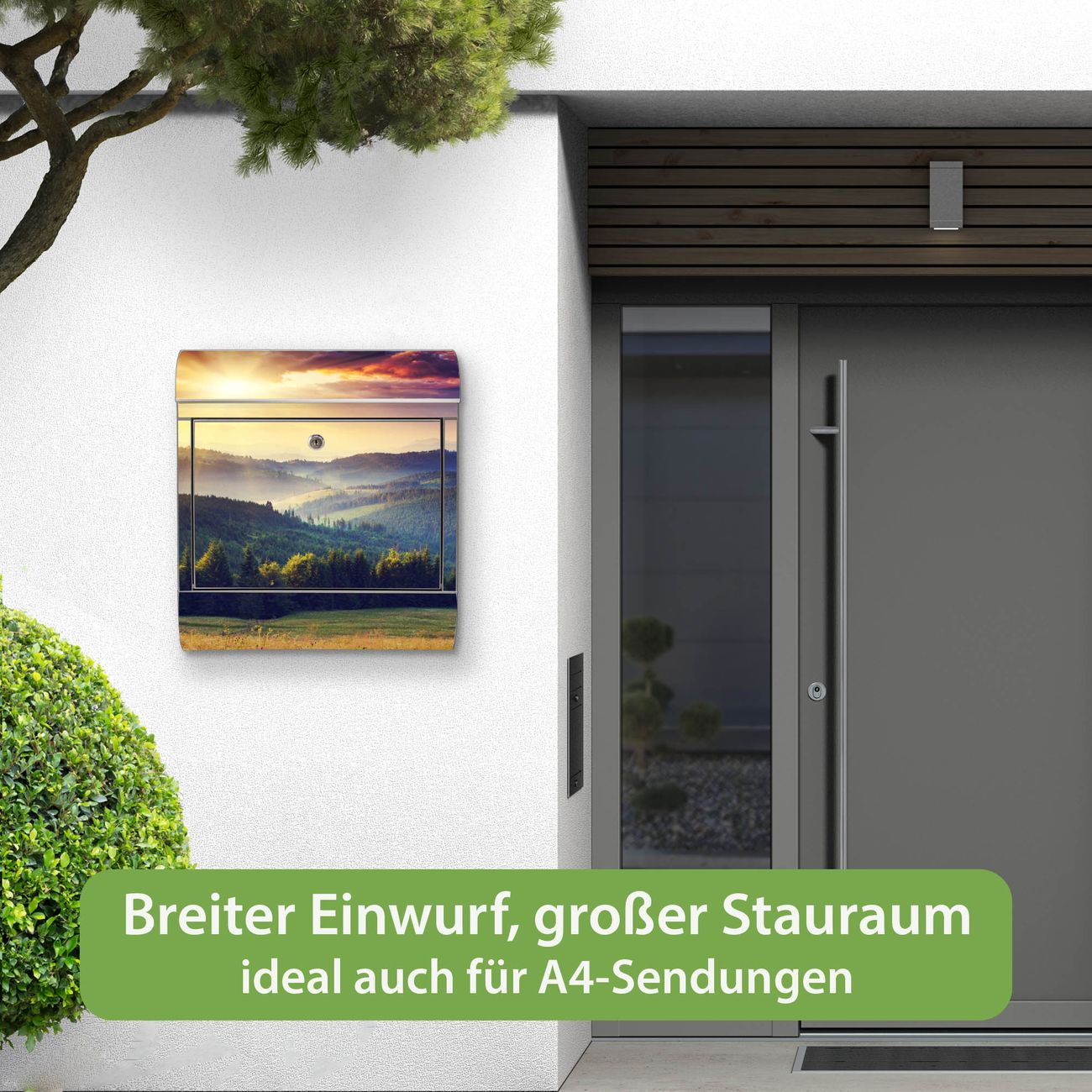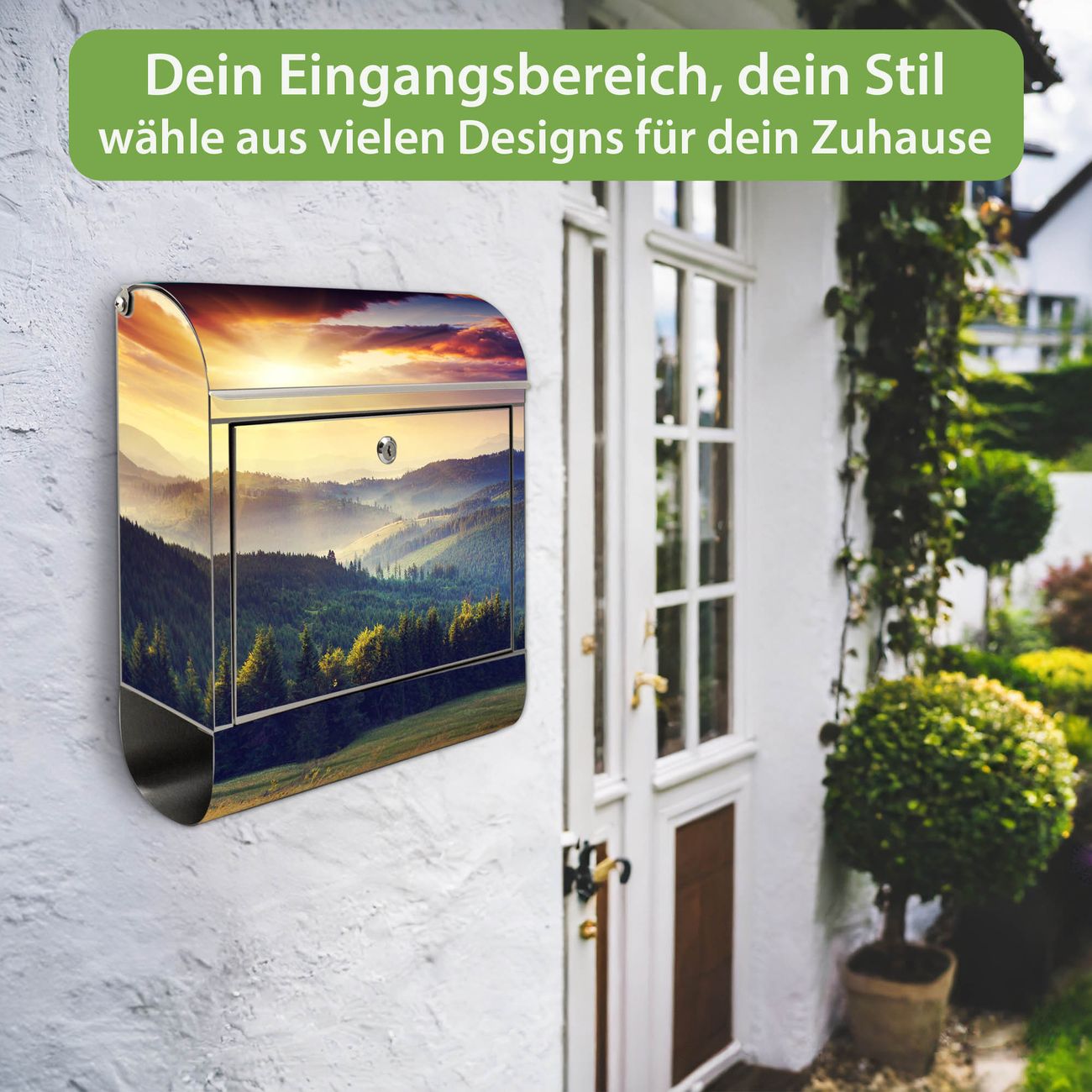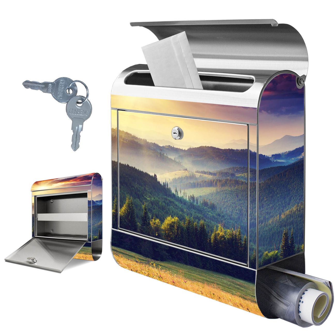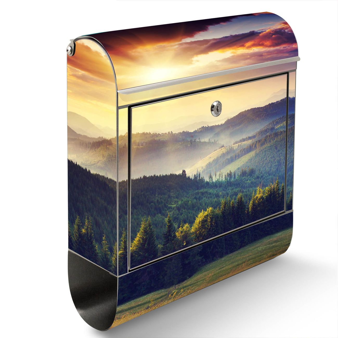 Wandbriefkasten Edelstahl Motiv Karpaten Sonnenuntergang