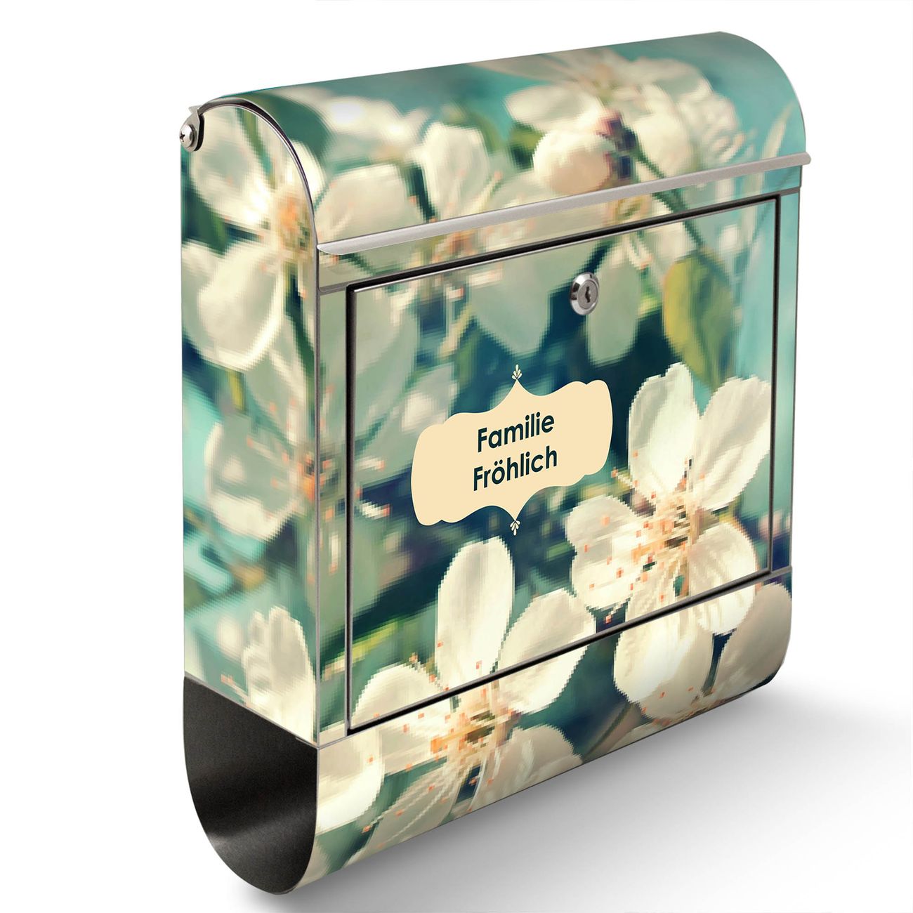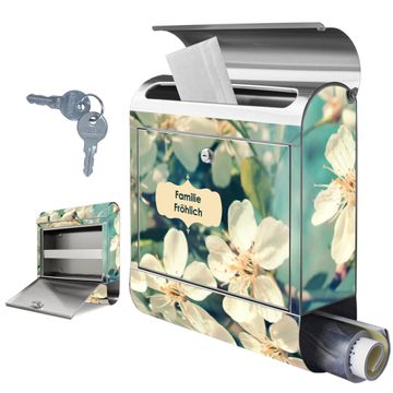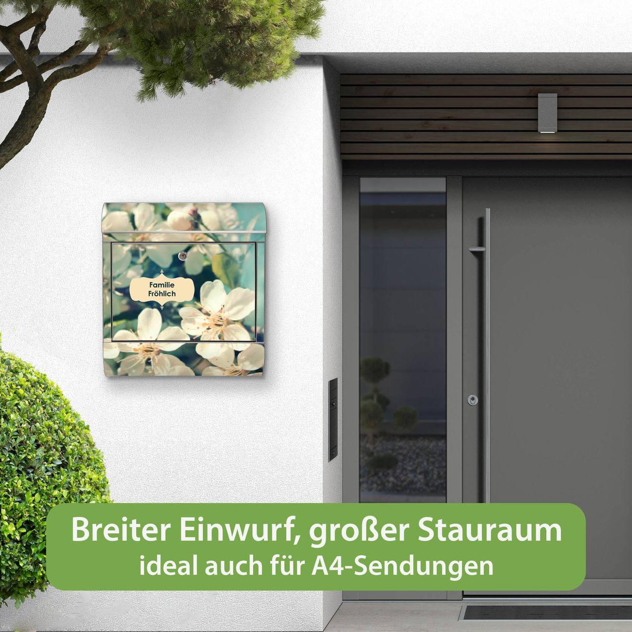 Wandbriefkasten Edelstahl Motiv Kirschblüten 2