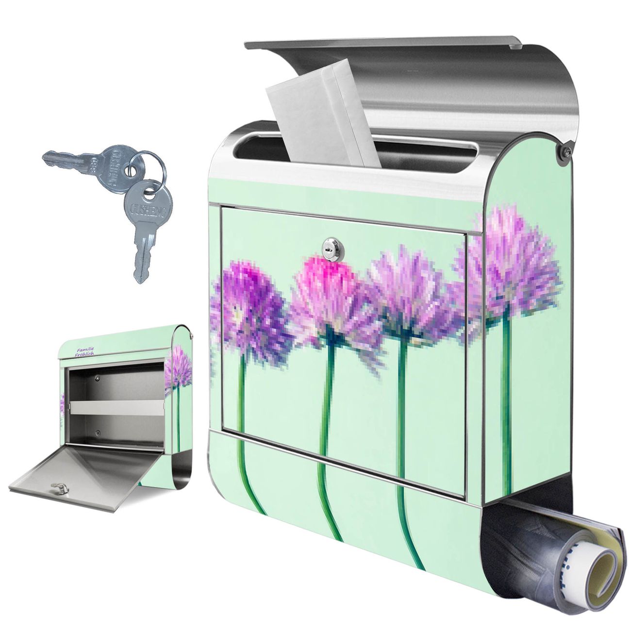Wandbriefkasten Edelstahl Motiv Klee in Reihe
