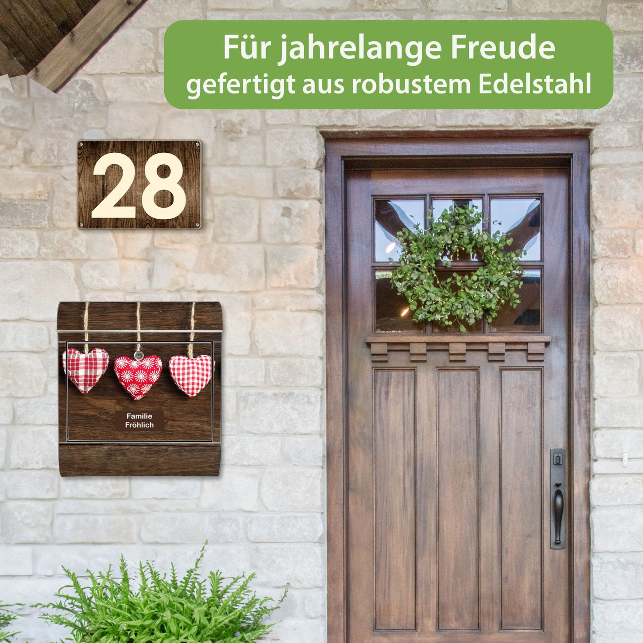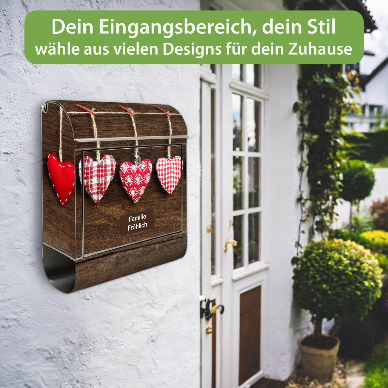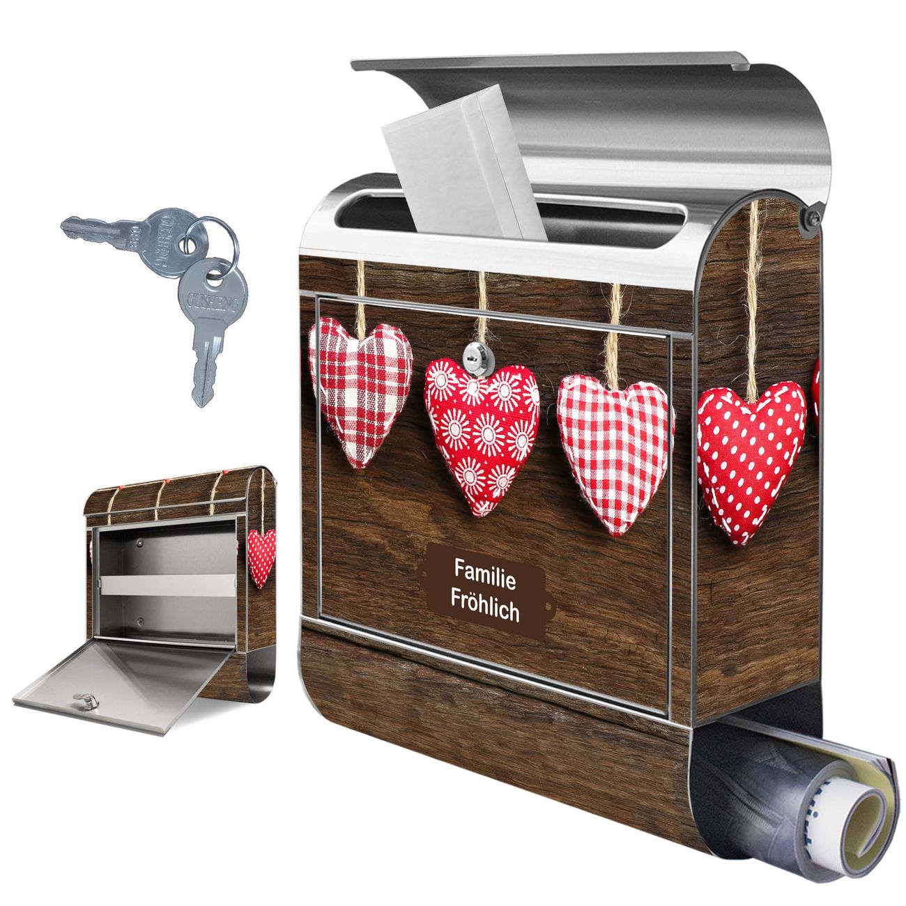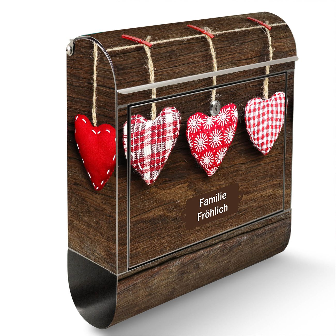 Wandbriefkasten Edelstahl Motiv Kleine Herzen
