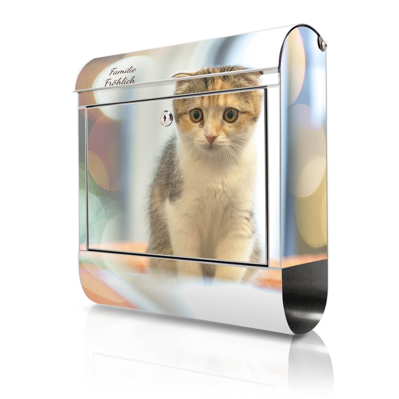 Wandbriefkasten Edelstahl Motiv Kleine Katze
