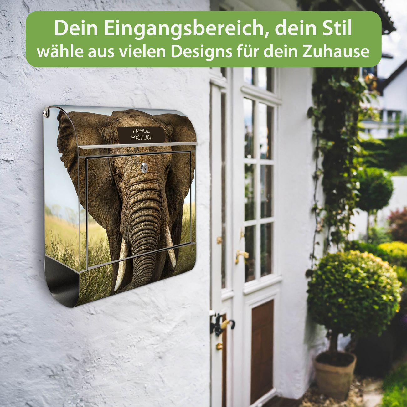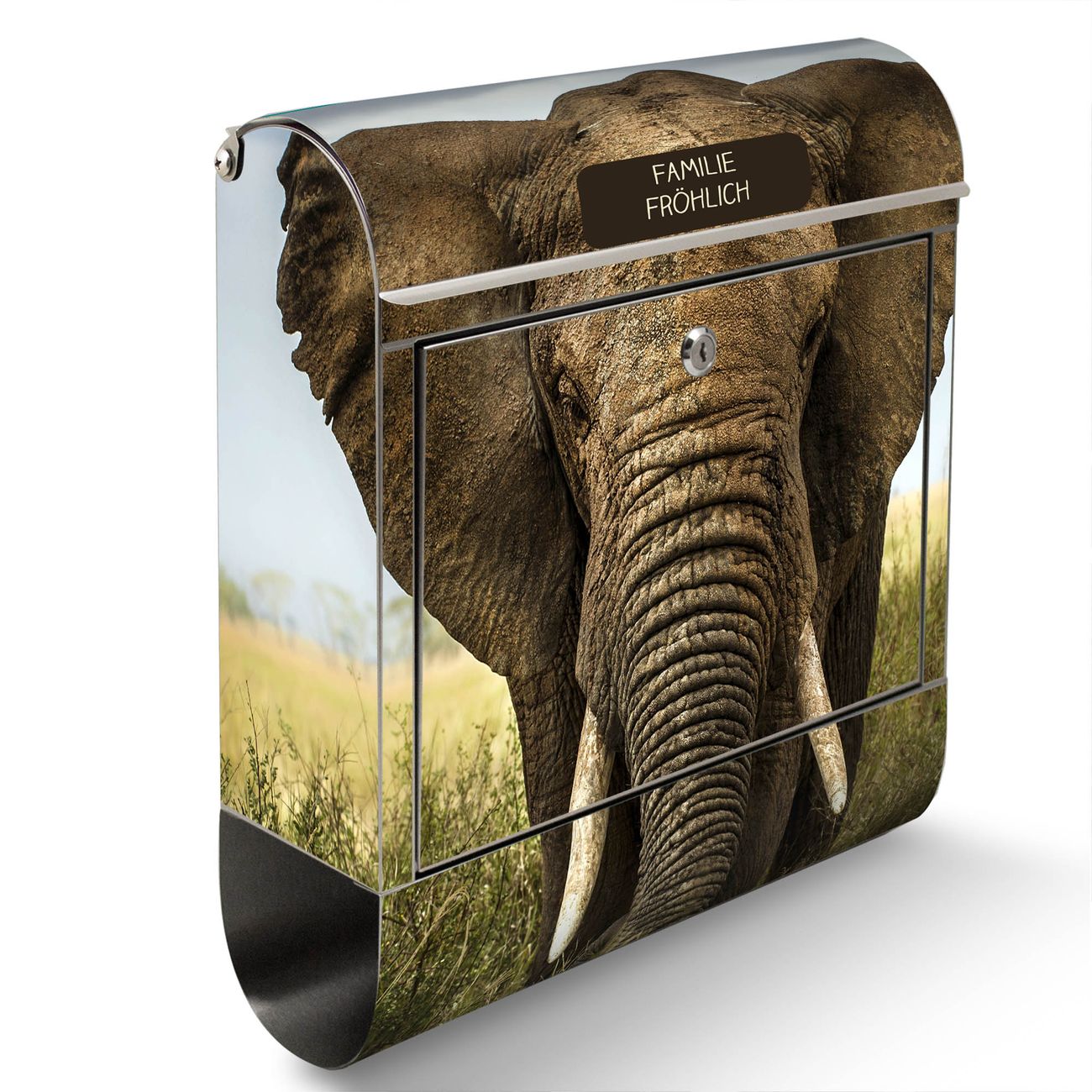 Wandbriefkasten Edelstahl Motiv Korbinian