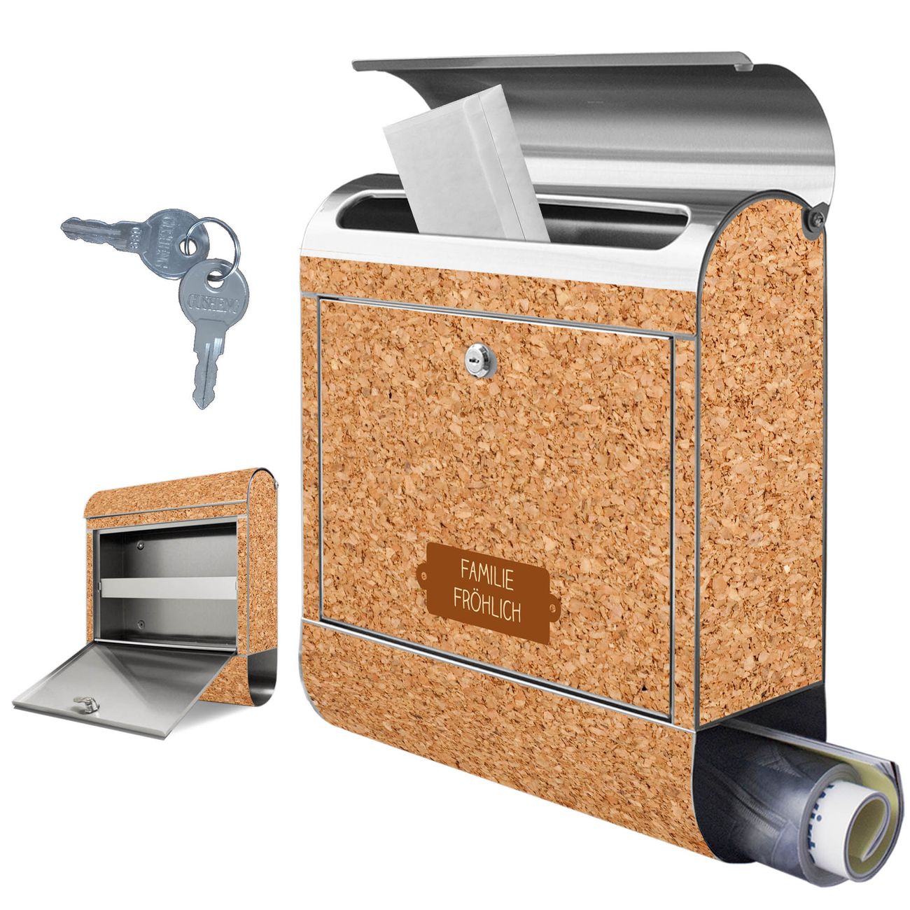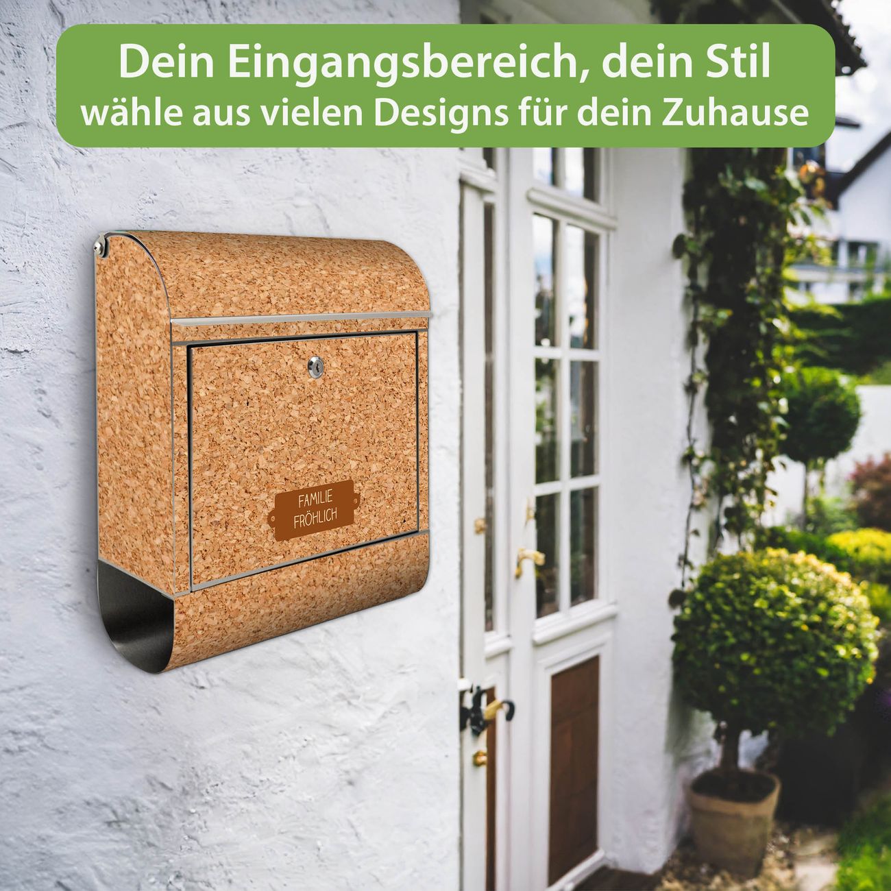 FUNKTION: Der banjado Edelstahl Briefkasten mit Motiv Motiv Kork bietet Ihnen mit seinem Fassungsvermögen genügend Platz auch für große A4 Sendungen. Das integrierte Zeitungsfach eignet sich hervorragend um unkompliziert die Tageszeitung zu fassen. Auf Wunsch können Sie bei uns den passenden Ständer kaufen und so aus dem Wandbriefkasten einen Standbriefkasten machen. DESIGN: Der Motivbriefkasten hat ein sehr ansprechendes und ausgefallenes Design, damit entlocken Sie Ihren Nachbarn und dem Postboten ein Lächeln. Heben Sie Sich ab von der tristen grauen Masse ohne auf Funktionalität zu verzichten. DETAILS: Der Design Briefkasten mit Motiv Motiv Kork besteht aus hochwertigem 18/0 Edelstahl. Das Motiv besteht aus einer wetter- und UV-resistenten Folie, die mit einem Schutzlaminat überzogen ist. Der Briefkasten wird mit Montagematerial und zwei Schlüsseln geliefert. NUTZEN: Sie können diesen Briefkasten sowohl als Wandbriefkasten montieren oder einen passenden Ständer auswählen und als Standbriefkasten einbetonieren. Die Größe bietet genügend Platz für Sendungen aller Art, das hochwertige Edelstahl ist rostfrei und die Motivfolie absolut wetterfest. SCHUTZ: Um Ihre Post optimal vor Witterungseinflüssen wie Starkregen zu schützen, empfehlen wir, den Briefkasten geschützt anzubringen. BANJADO: Ihr Briefkasten wird in Sachsen in einer kleinen Manufaktur von Hand veredelt. Die Motivfolie ist lösungsmittelfrei und schutzlaminiert, dies sorgt für einen langen Halt. Wir legen großen Wert auf die Verbindung von Funktionalität und Design. Sie erhalten Handarbeit aus Sachsen.