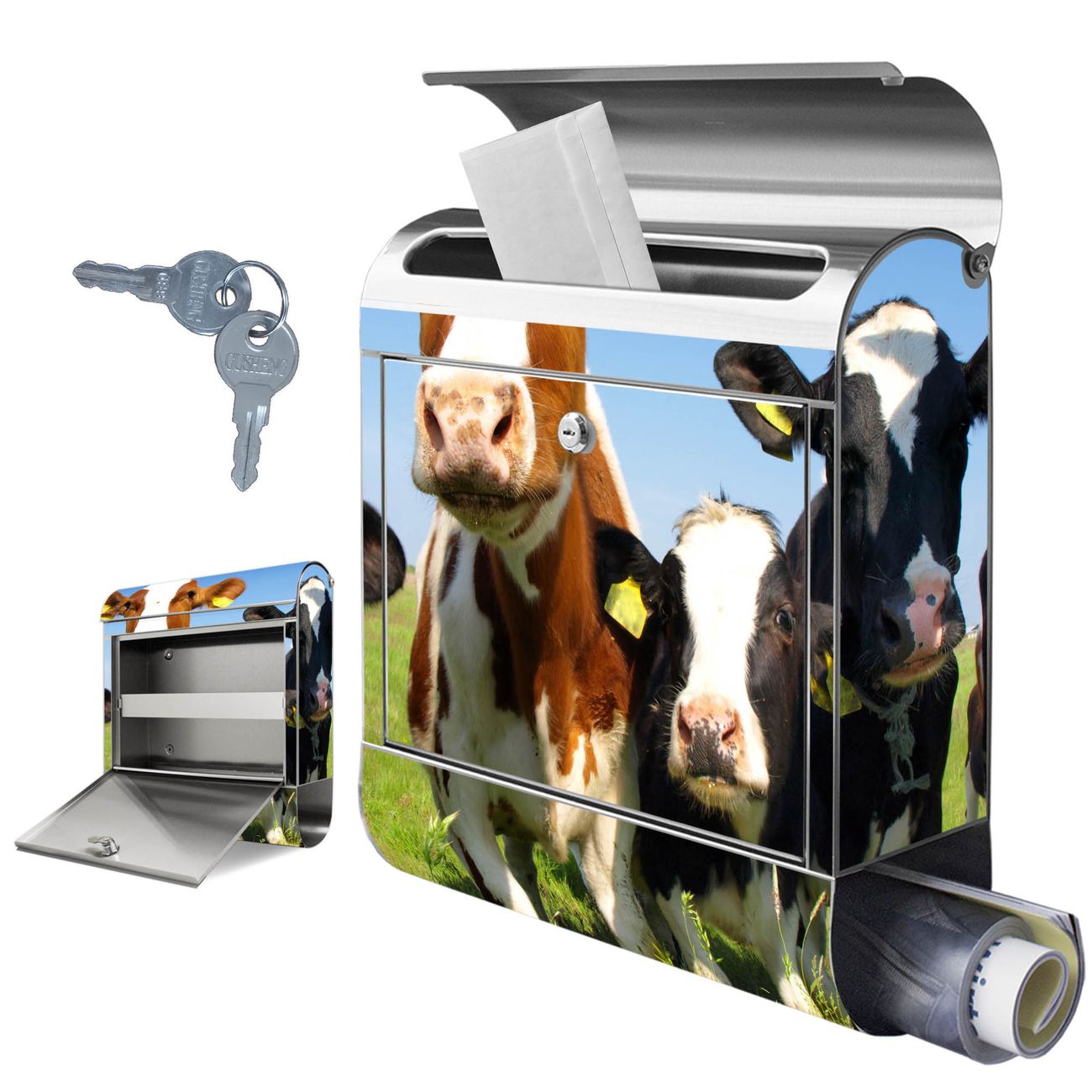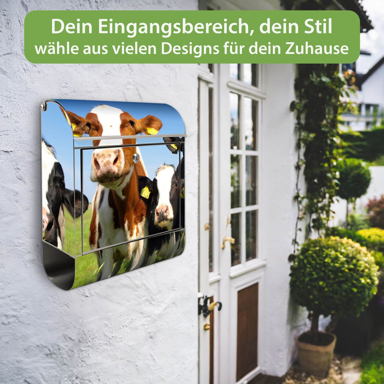 Wandbriefkasten Edelstahl Motiv Kühe
