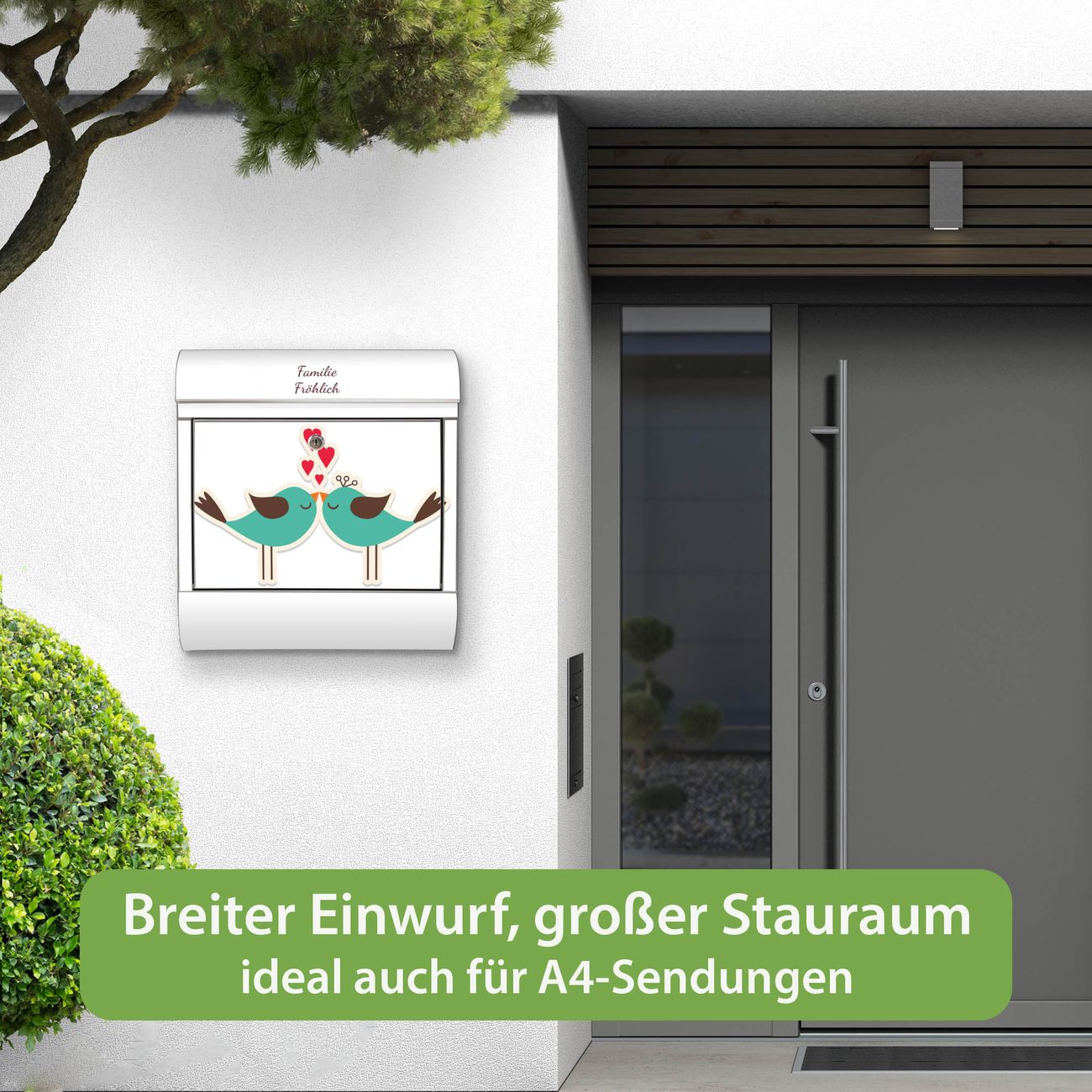 Wandbriefkasten Edelstahl Motiv Küsschen