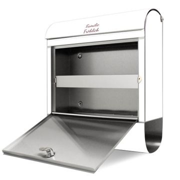 FUNKTION: Der banjado Edelstahl Briefkasten mit Motiv Motiv Küsschen bietet Ihnen mit seinem Fassungsvermögen genügend Platz auch für große A4 Sendungen. Das integrierte Zeitungsfach eignet sich hervorragend um unkompliziert die Tageszeitung zu fassen. Auf Wunsch können Sie bei uns den passenden Ständer kaufen und so aus dem Wandbriefkasten einen Standbriefkasten machen. DESIGN: Der Motivbriefkasten hat ein sehr ansprechendes und ausgefallenes Design, damit entlocken Sie Ihren Nachbarn und dem Postboten ein Lächeln. Heben Sie Sich ab von der tristen grauen Masse ohne auf Funktionalität zu verzichten. DETAILS: Der Design Briefkasten mit Motiv Motiv Küsschen besteht aus hochwertigem 18/0 Edelstahl. Das Motiv besteht aus einer wetter- und UV-resistenten Folie, die mit einem Schutzlaminat überzogen ist. Der Briefkasten wird mit Montagematerial und zwei Schlüsseln geliefert. NUTZEN: Sie können diesen Briefkasten sowohl als Wandbriefkasten montieren oder einen passenden Ständer auswählen und als Standbriefkasten einbetonieren. Die Größe bietet genügend Platz für Sendungen aller Art, das hochwertige Edelstahl ist rostfrei und die Motivfolie absolut wetterfest. SCHUTZ: Um Ihre Post optimal vor Witterungseinflüssen wie Starkregen zu schützen, empfehlen wir, den Briefkasten geschützt anzubringen. BANJADO: Ihr Briefkasten wird in Sachsen in einer kleinen Manufaktur von Hand veredelt. Die Motivfolie ist lösungsmittelfrei und schutzlaminiert, dies sorgt für einen langen Halt. Wir legen großen Wert auf die Verbindung von Funktionalität und Design. Sie erhalten Handarbeit aus Sachsen.
