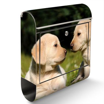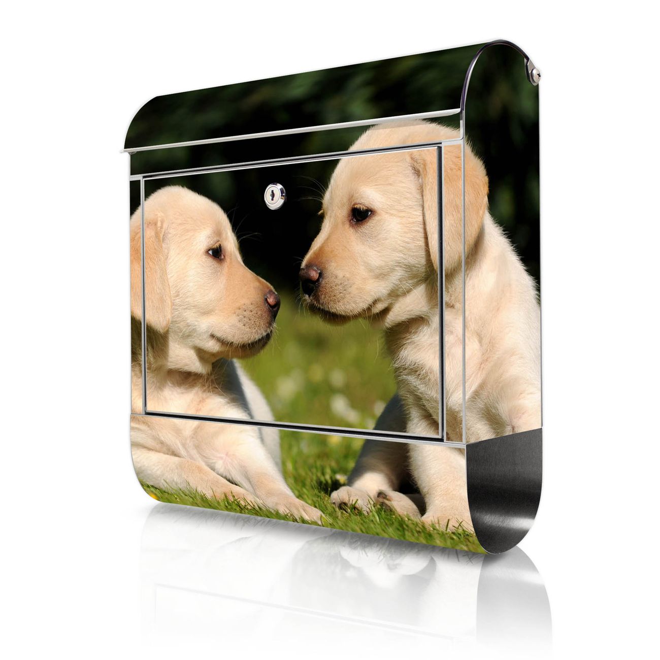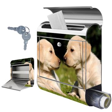 FUNKTION: Der banjado Edelstahl Briefkasten mit Motiv Motiv Labrador bietet Ihnen mit seinem Fassungsvermögen genügend Platz auch für große A4 Sendungen. Das integrierte Zeitungsfach eignet sich hervorragend um unkompliziert die Tageszeitung zu fassen. Auf Wunsch können Sie bei uns den passenden Ständer kaufen und so aus dem Wandbriefkasten einen Standbriefkasten machen. DESIGN: Der Motivbriefkasten hat ein sehr ansprechendes und ausgefallenes Design, damit entlocken Sie Ihren Nachbarn und dem Postboten ein Lächeln. Heben Sie Sich ab von der tristen grauen Masse ohne auf Funktionalität zu verzichten. DETAILS: Der Design Briefkasten mit Motiv Motiv Labrador besteht aus hochwertigem 18/0 Edelstahl. Das Motiv besteht aus einer wetter- und UV-resistenten Folie, die mit einem Schutzlaminat überzogen ist. Der Briefkasten wird mit Montagematerial und zwei Schlüsseln geliefert. NUTZEN: Sie können diesen Briefkasten sowohl als Wandbriefkasten montieren oder einen passenden Ständer auswählen und als Standbriefkasten einbetonieren. Die Größe bietet genügend Platz für Sendungen aller Art, das hochwertige Edelstahl ist rostfrei und die Motivfolie absolut wetterfest. SCHUTZ: Um Ihre Post optimal vor Witterungseinflüssen wie Starkregen zu schützen, empfehlen wir, den Briefkasten geschützt anzubringen. BANJADO: Ihr Briefkasten wird in Sachsen in einer kleinen Manufaktur von Hand veredelt. Die Motivfolie ist lösungsmittelfrei und schutzlaminiert, dies sorgt für einen langen Halt. Wir legen großen Wert auf die Verbindung von Funktionalität und Design. Sie erhalten Handarbeit aus Sachsen.