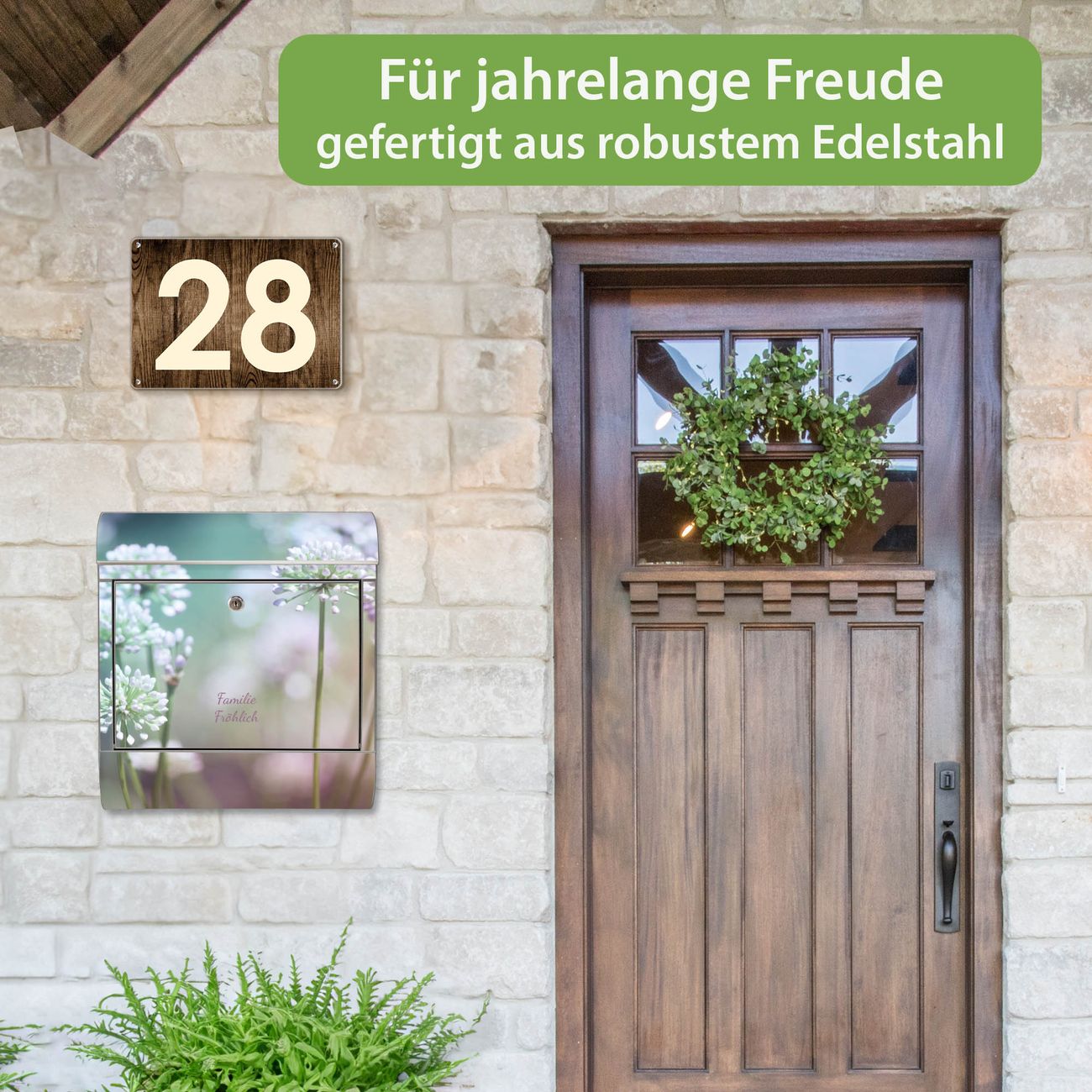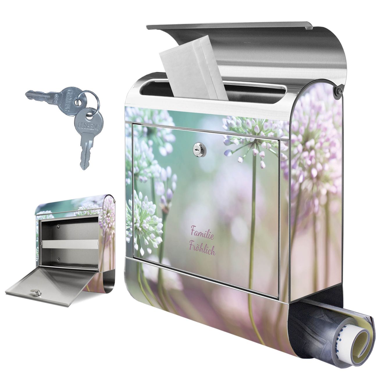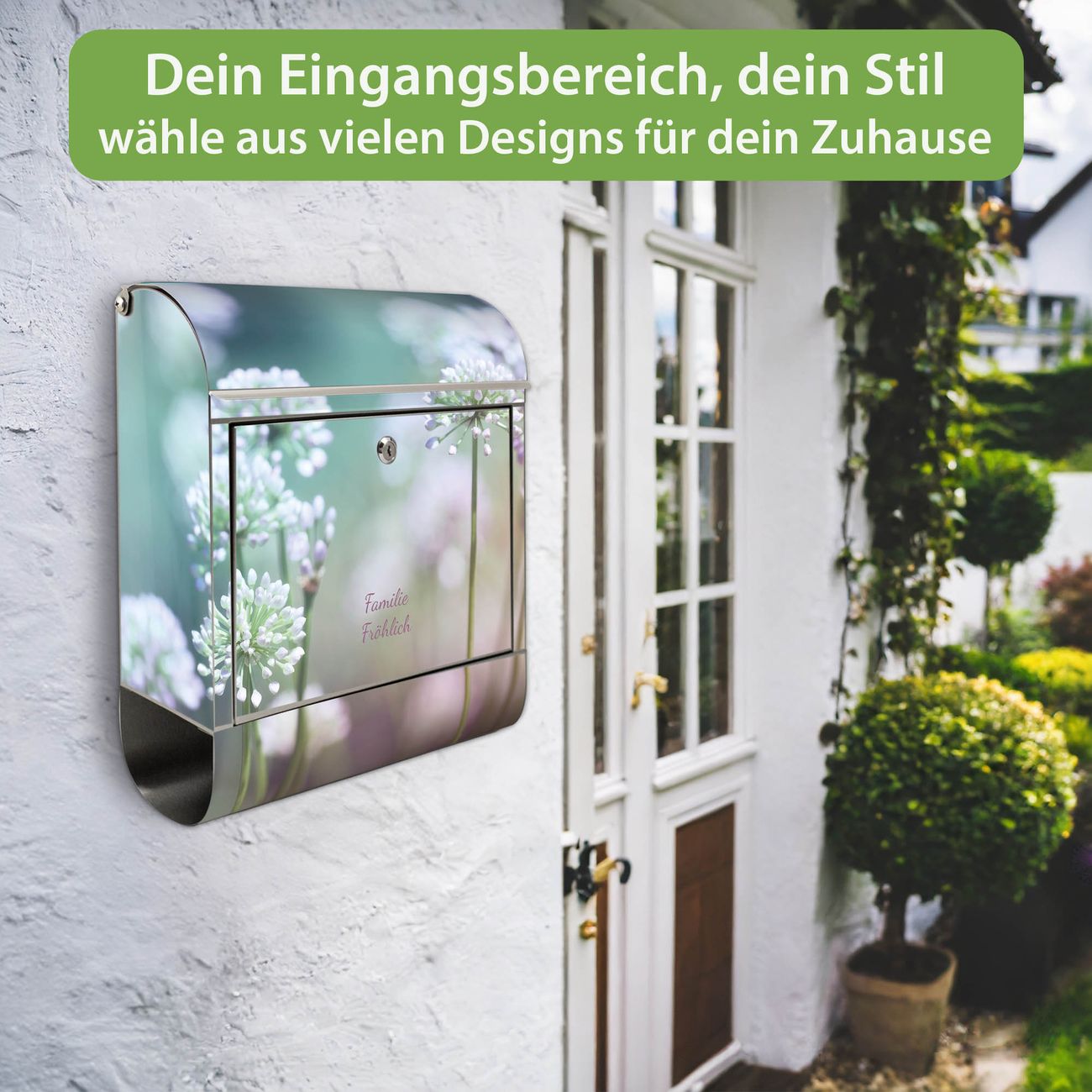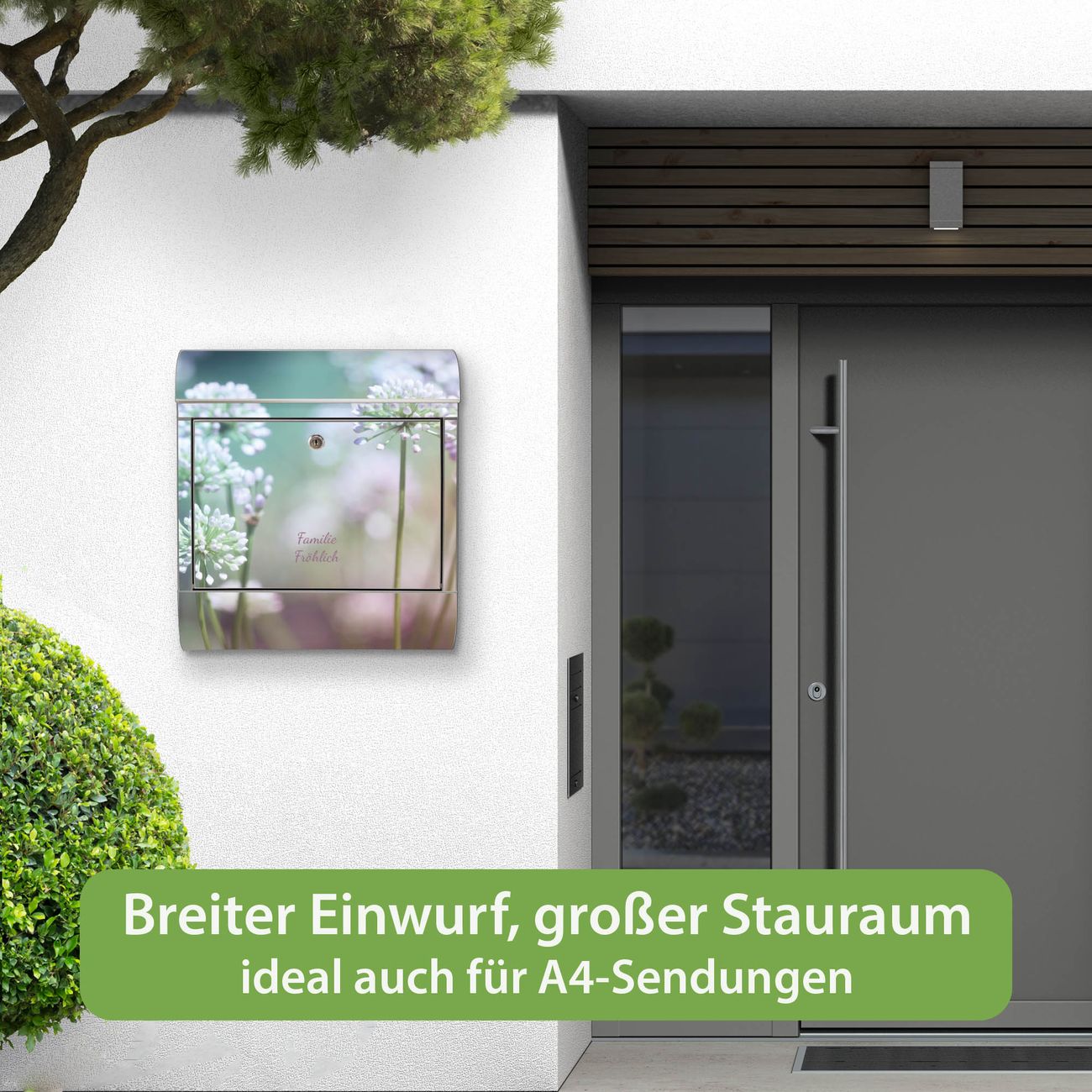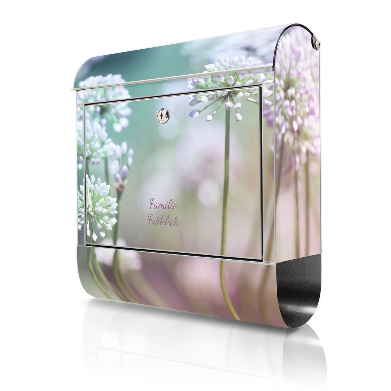 Wandbriefkasten Edelstahl Motiv Lauchblüte