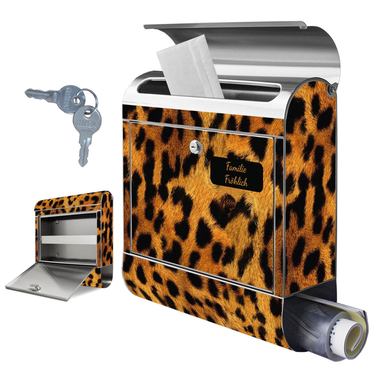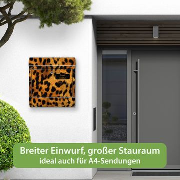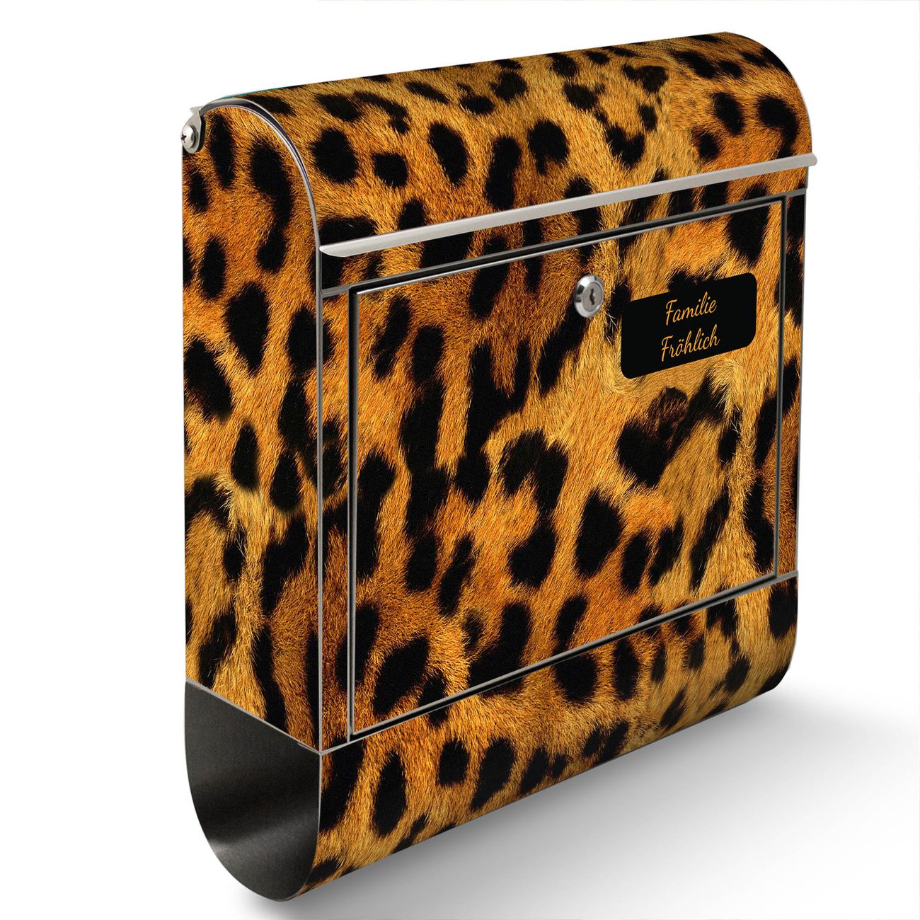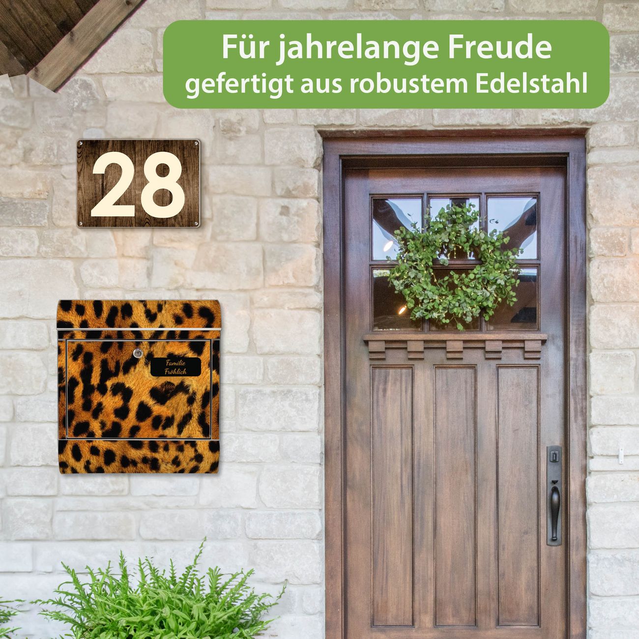 FUNKTION: Der banjado Edelstahl Briefkasten mit Motiv Motiv Leopard bietet Ihnen mit seinem Fassungsvermögen genügend Platz auch für große A4 Sendungen. Das integrierte Zeitungsfach eignet sich hervorragend um unkompliziert die Tageszeitung zu fassen. Auf Wunsch können Sie bei uns den passenden Ständer kaufen und so aus dem Wandbriefkasten einen Standbriefkasten machen. DESIGN: Der Motivbriefkasten hat ein sehr ansprechendes und ausgefallenes Design, damit entlocken Sie Ihren Nachbarn und dem Postboten ein Lächeln. Heben Sie Sich ab von der tristen grauen Masse ohne auf Funktionalität zu verzichten. DETAILS: Der Design Briefkasten mit Motiv Motiv Leopard besteht aus hochwertigem 18/0 Edelstahl. Das Motiv besteht aus einer wetter- und UV-resistenten Folie, die mit einem Schutzlaminat überzogen ist. Der Briefkasten wird mit Montagematerial und zwei Schlüsseln geliefert. NUTZEN: Sie können diesen Briefkasten sowohl als Wandbriefkasten montieren oder einen passenden Ständer auswählen und als Standbriefkasten einbetonieren. Die Größe bietet genügend Platz für Sendungen aller Art, das hochwertige Edelstahl ist rostfrei und die Motivfolie absolut wetterfest. SCHUTZ: Um Ihre Post optimal vor Witterungseinflüssen wie Starkregen zu schützen, empfehlen wir, den Briefkasten geschützt anzubringen. BANJADO: Ihr Briefkasten wird in Sachsen in einer kleinen Manufaktur von Hand veredelt. Die Motivfolie ist lösungsmittelfrei und schutzlaminiert, dies sorgt für einen langen Halt. Wir legen großen Wert auf die Verbindung von Funktionalität und Design. Sie erhalten Handarbeit aus Sachsen.