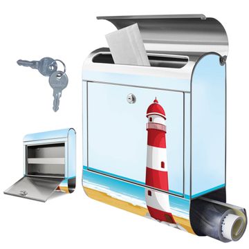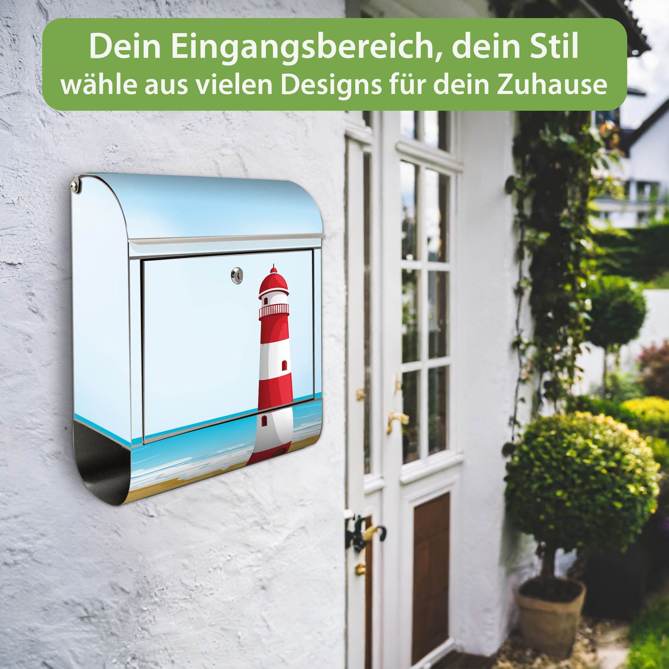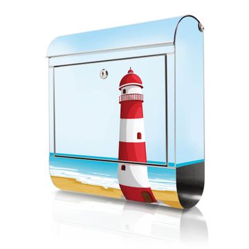 Wandbriefkasten Edelstahl Motiv Leuchtturm Illustration
