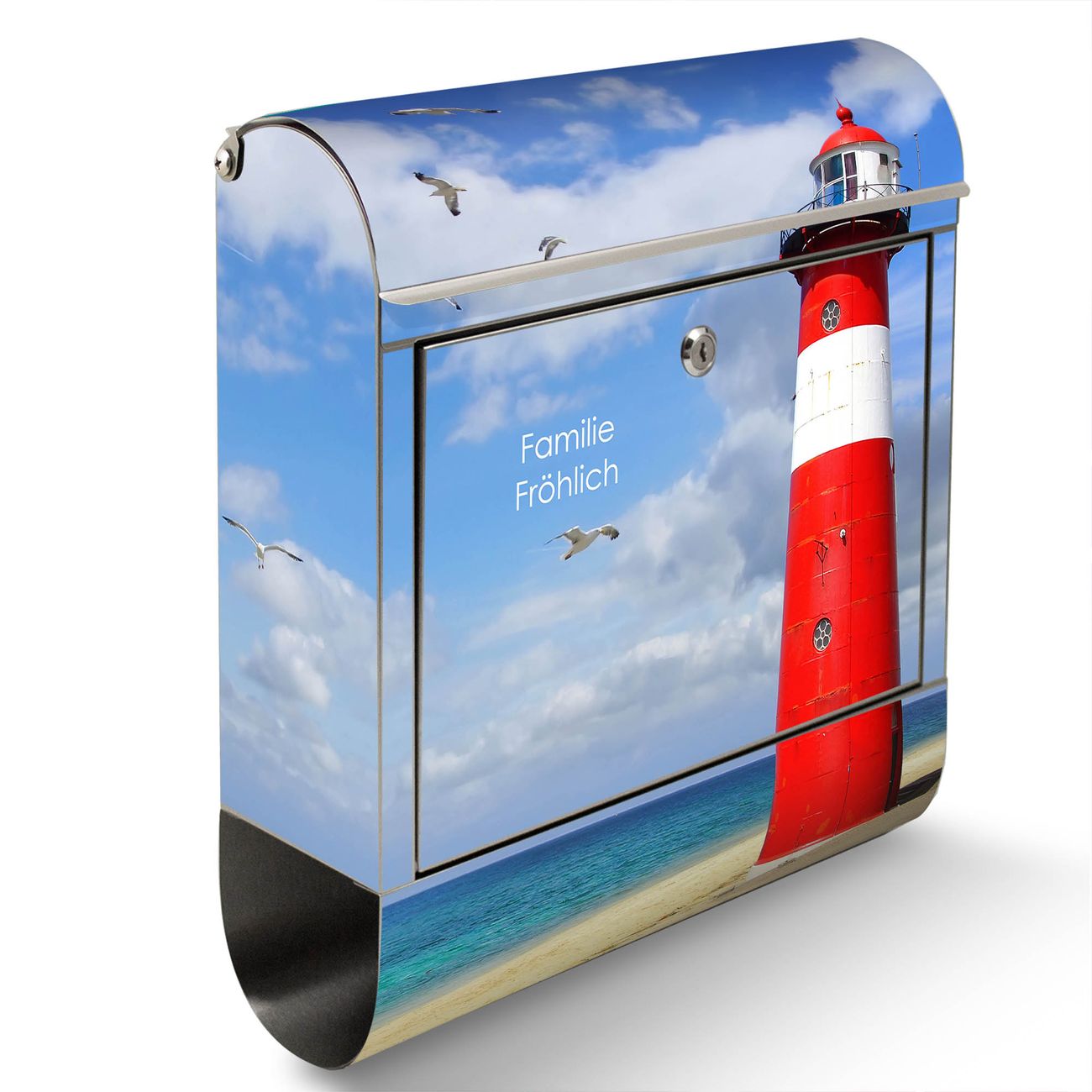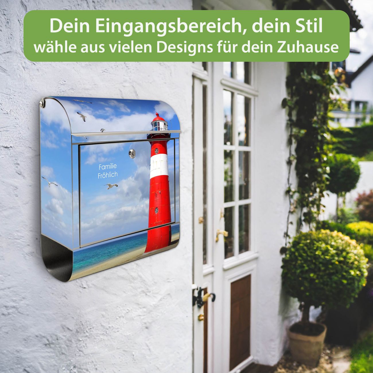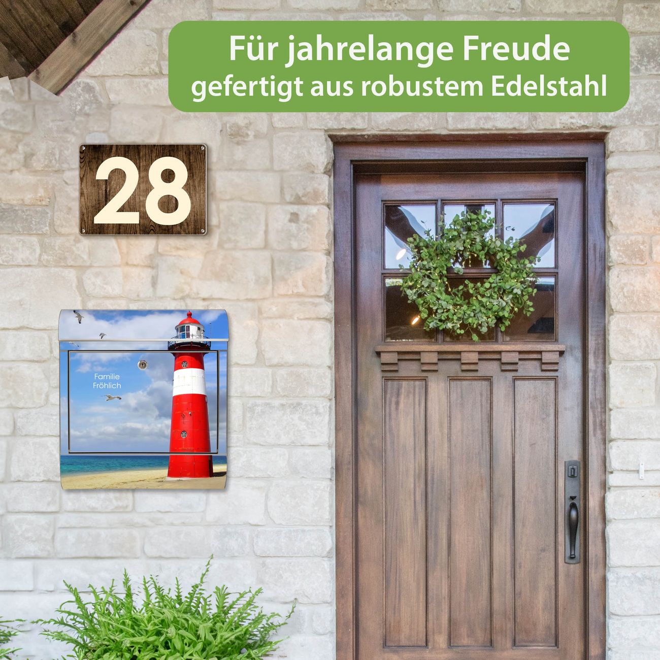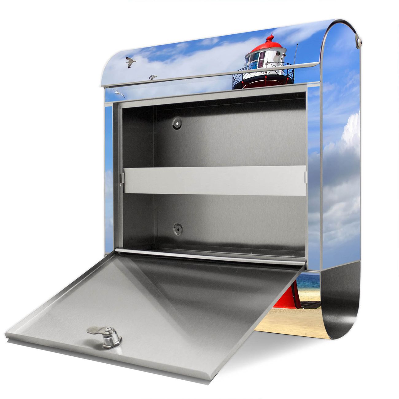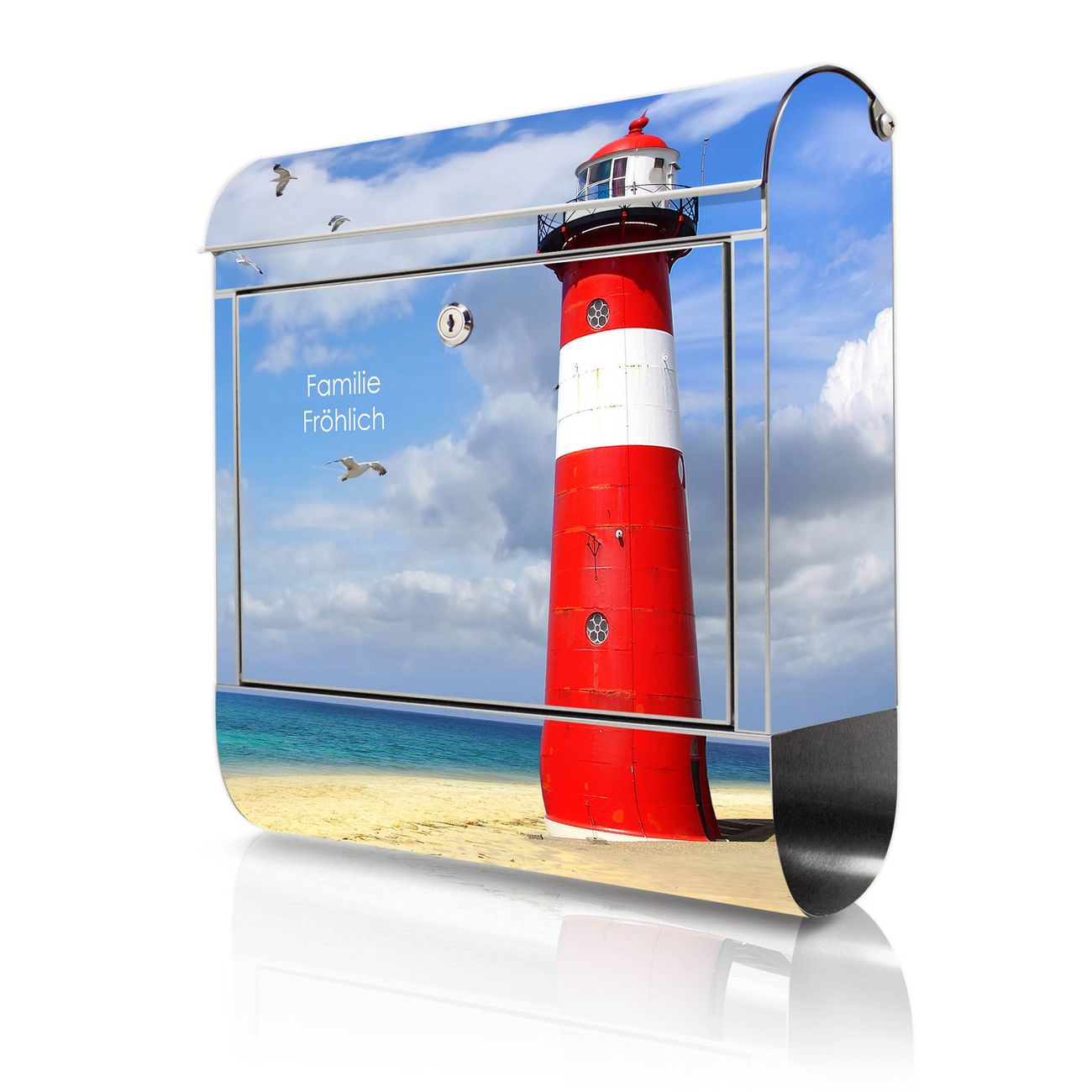 Wandbriefkasten Edelstahl Motiv Leuchtturm Westkapelle
