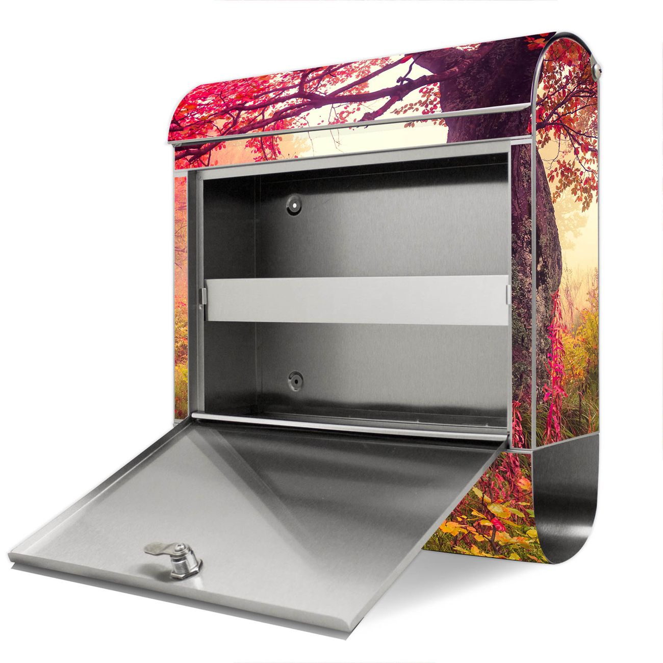 Wandbriefkasten Edelstahl Motiv Lichtung Im Herbst