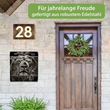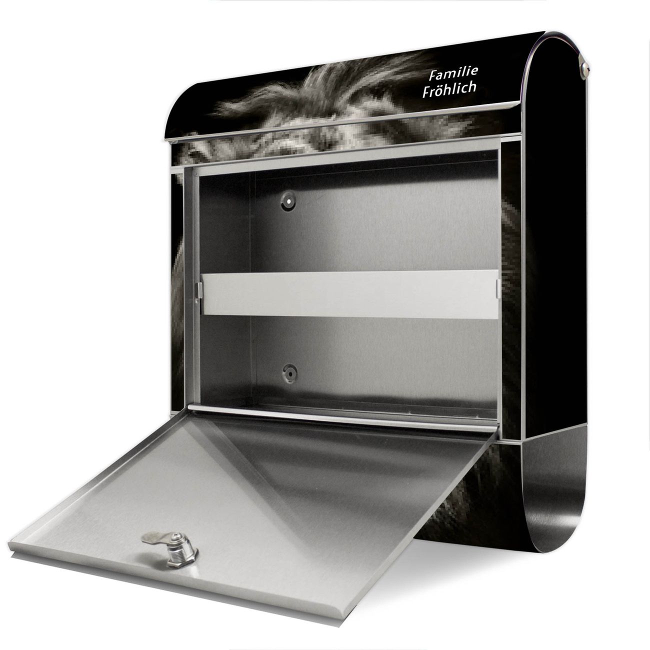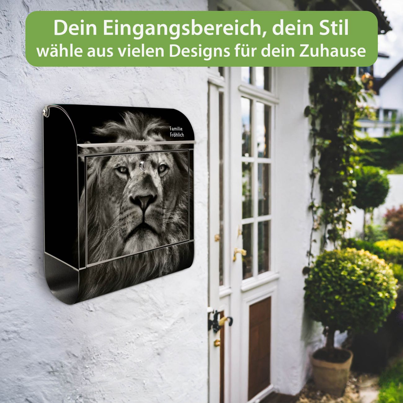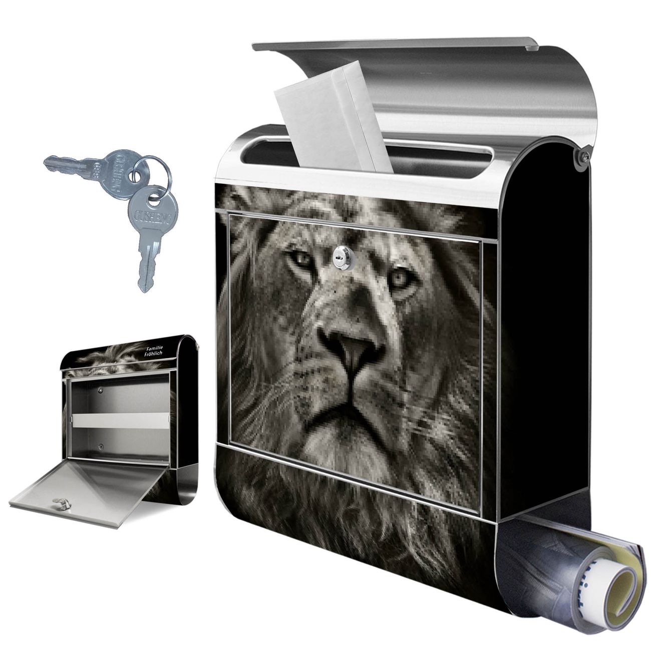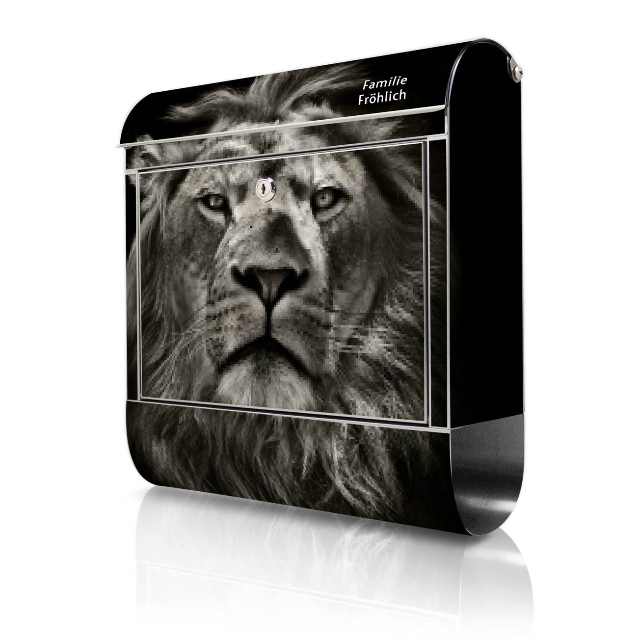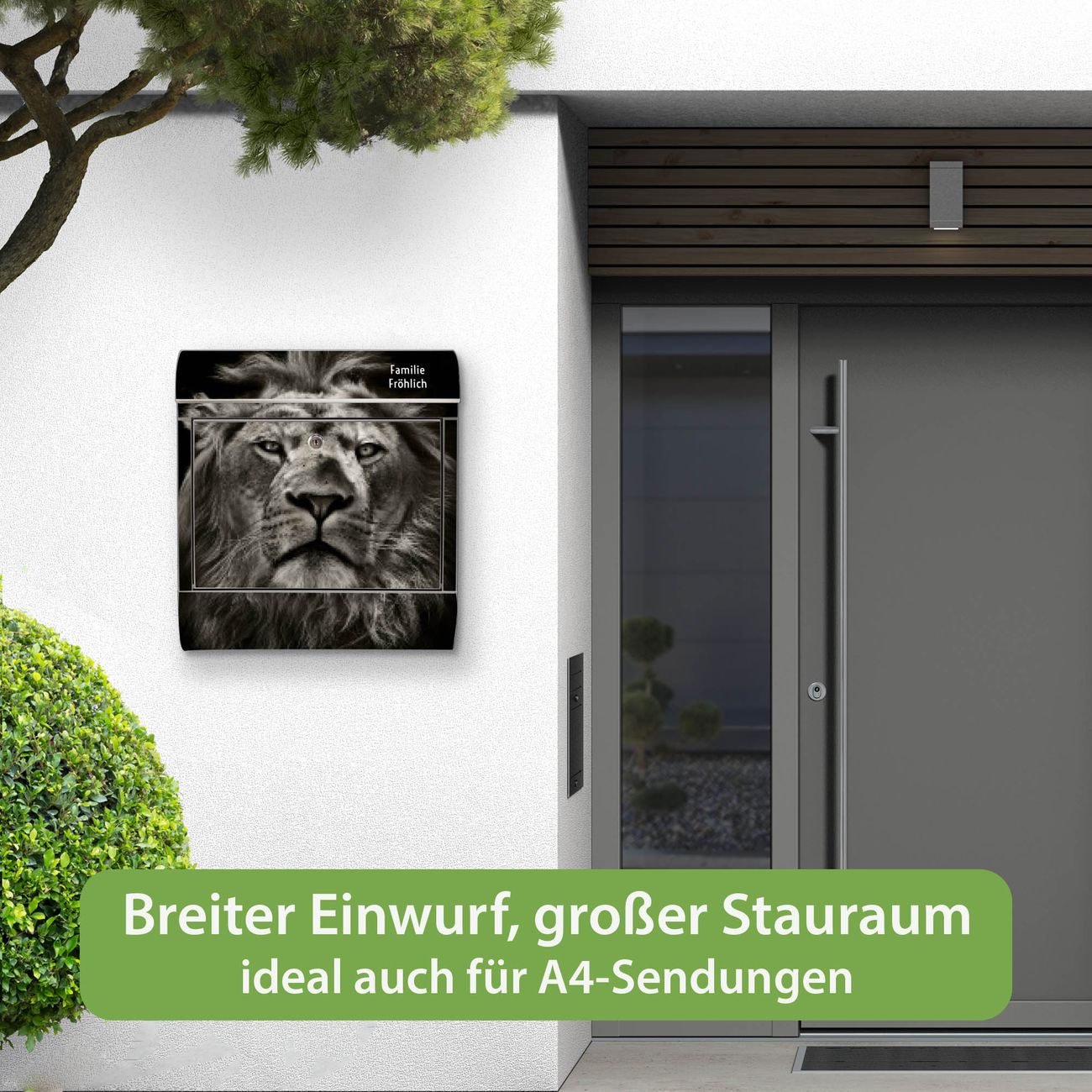 Wandbriefkasten Edelstahl Motiv Löwe Porträt