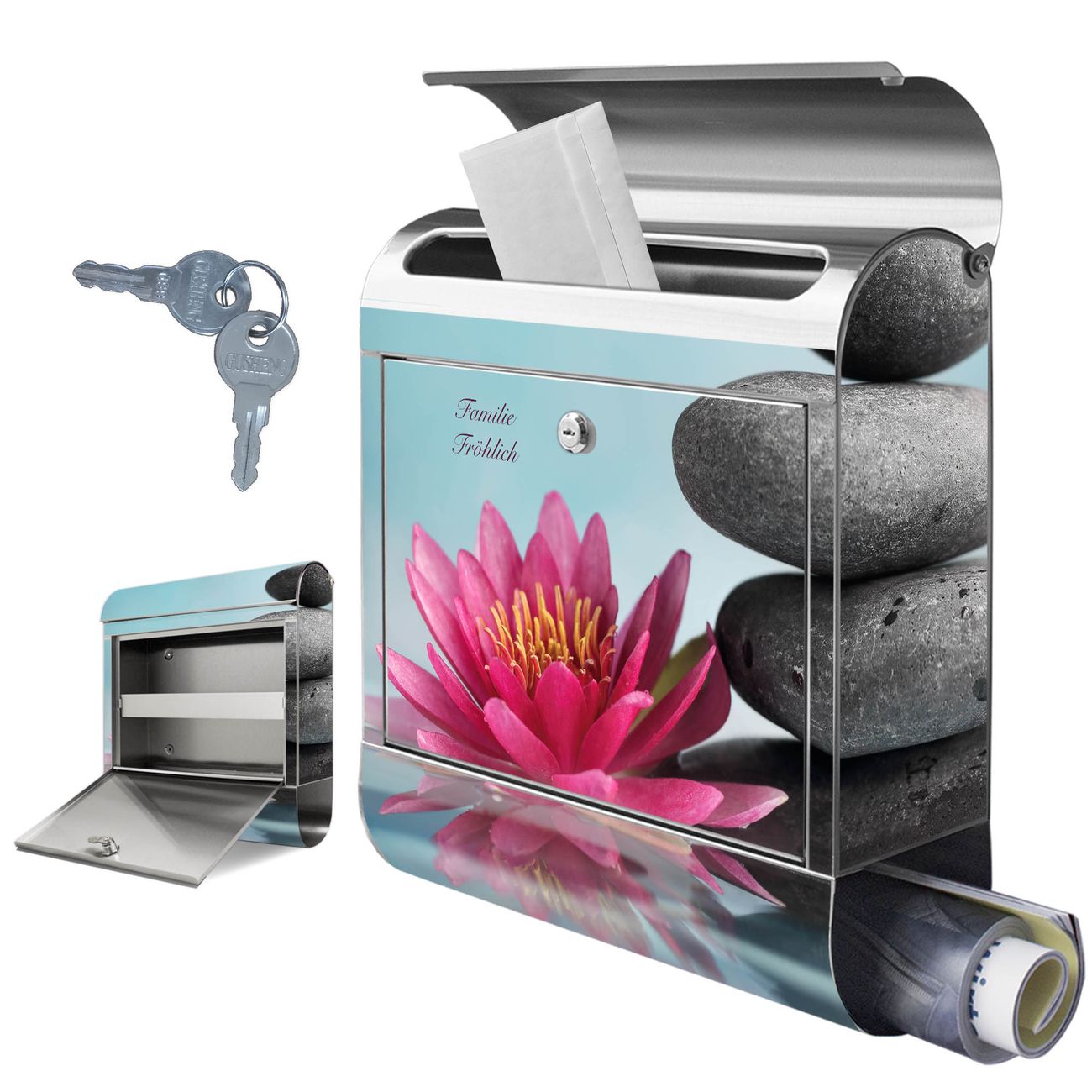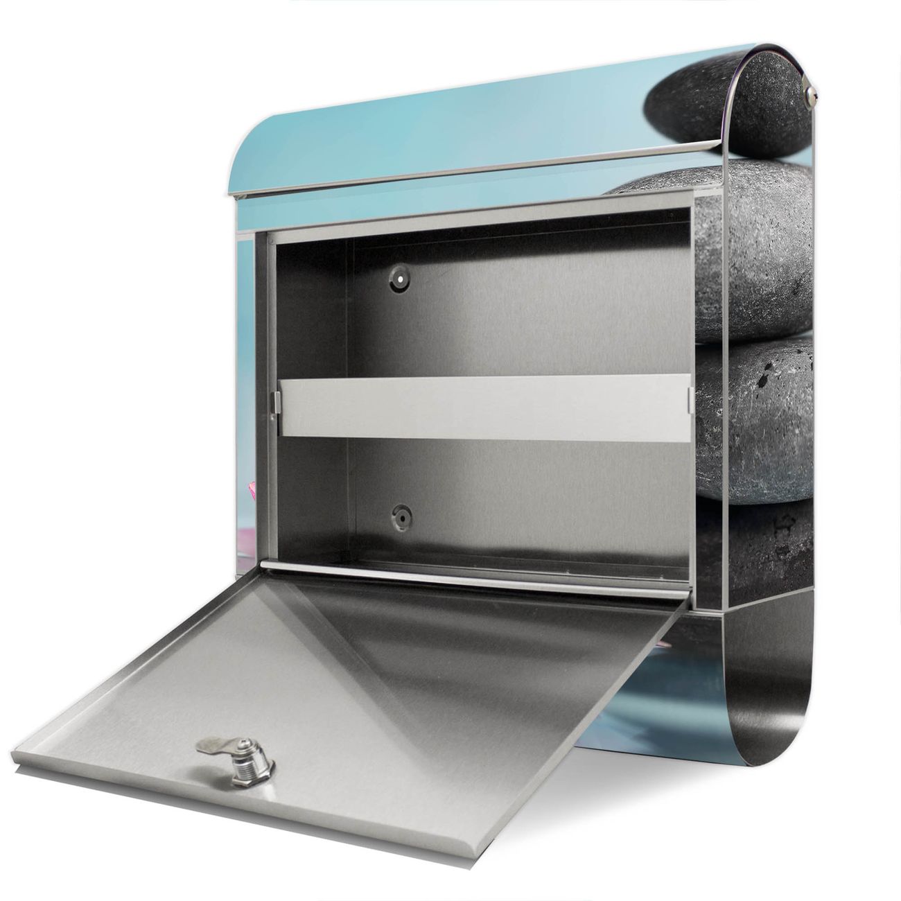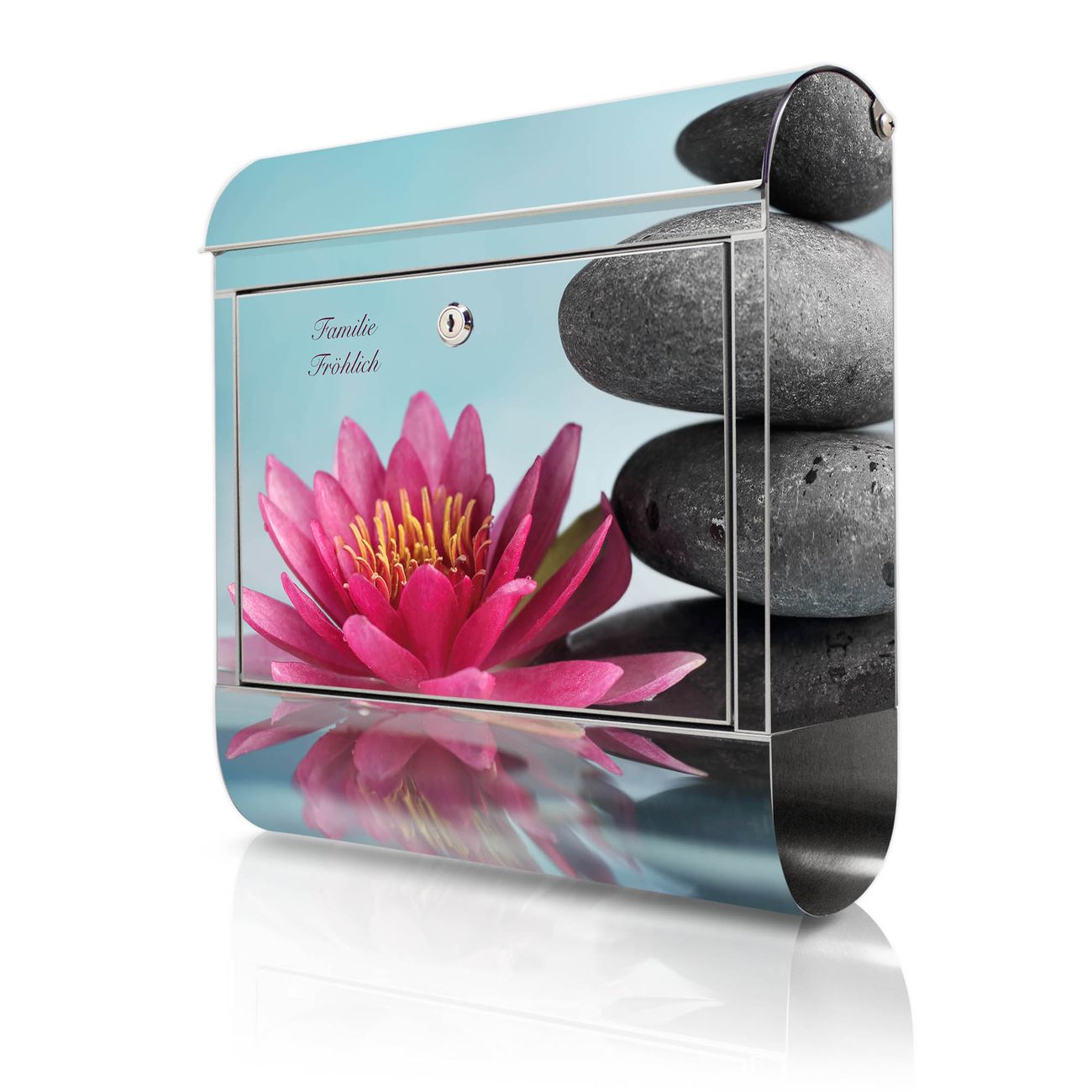 Wandbriefkasten Edelstahl Motiv Lotus Und Steine