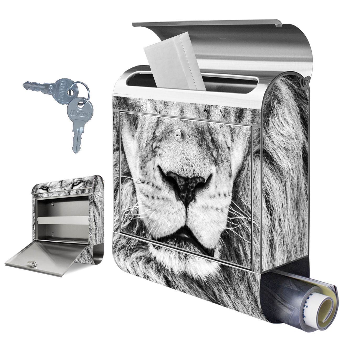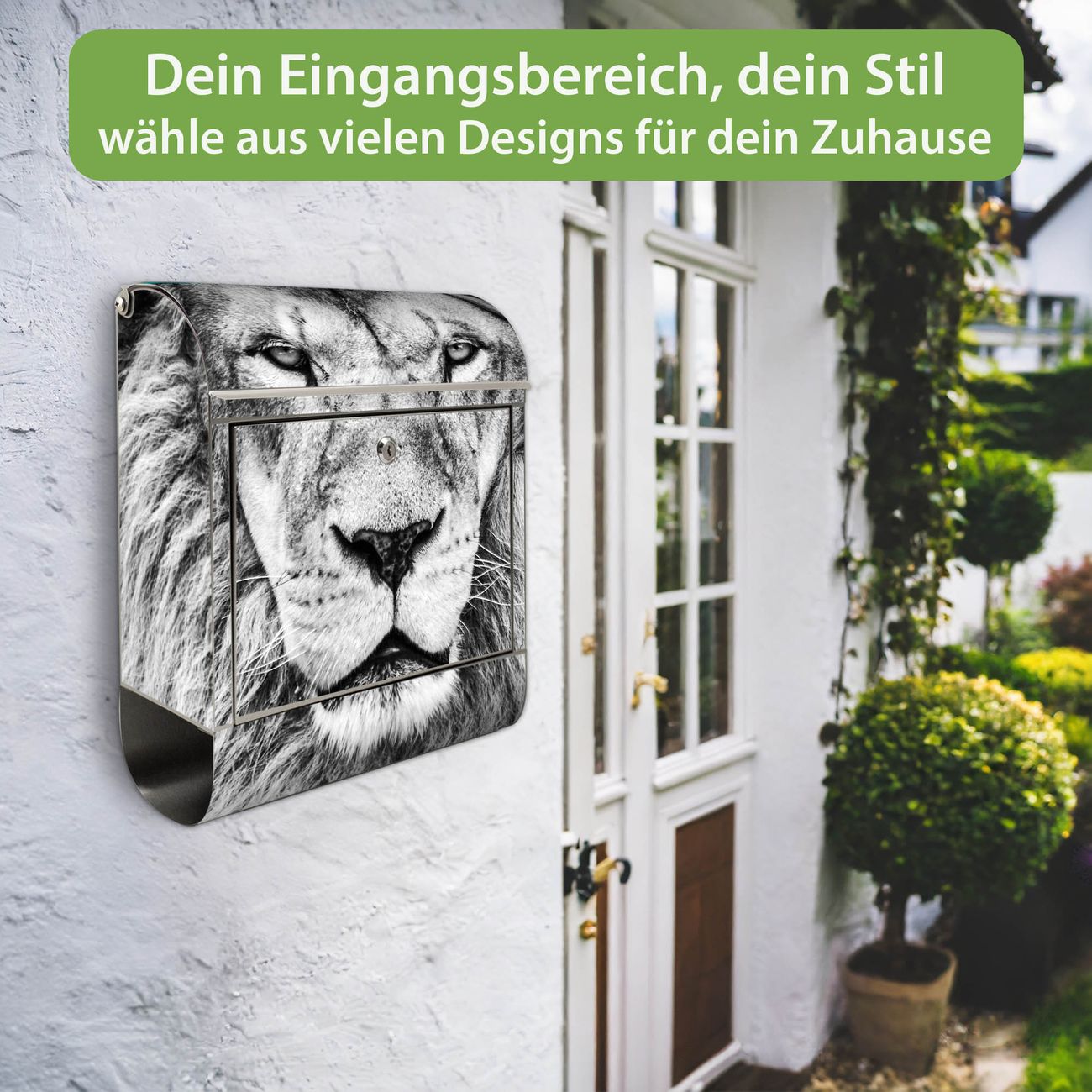 FUNKTION: Der banjado Edelstahl Briefkasten mit Motiv Motiv Ludwig bietet Ihnen mit seinem Fassungsvermögen genügend Platz auch für große A4 Sendungen. Das integrierte Zeitungsfach eignet sich hervorragend um unkompliziert die Tageszeitung zu fassen. Auf Wunsch können Sie bei uns den passenden Ständer kaufen und so aus dem Wandbriefkasten einen Standbriefkasten machen. DESIGN: Der Motivbriefkasten hat ein sehr ansprechendes und ausgefallenes Design, damit entlocken Sie Ihren Nachbarn und dem Postboten ein Lächeln. Heben Sie Sich ab von der tristen grauen Masse ohne auf Funktionalität zu verzichten. DETAILS: Der Design Briefkasten mit Motiv Motiv Ludwig besteht aus hochwertigem 18/0 Edelstahl. Das Motiv besteht aus einer wetter- und UV-resistenten Folie, die mit einem Schutzlaminat überzogen ist. Der Briefkasten wird mit Montagematerial und zwei Schlüsseln geliefert. NUTZEN: Sie können diesen Briefkasten sowohl als Wandbriefkasten montieren oder einen passenden Ständer auswählen und als Standbriefkasten einbetonieren. Die Größe bietet genügend Platz für Sendungen aller Art, das hochwertige Edelstahl ist rostfrei und die Motivfolie absolut wetterfest. SCHUTZ: Um Ihre Post optimal vor Witterungseinflüssen wie Starkregen zu schützen, empfehlen wir, den Briefkasten geschützt anzubringen. BANJADO: Ihr Briefkasten wird in Sachsen in einer kleinen Manufaktur von Hand veredelt. Die Motivfolie ist lösungsmittelfrei und schutzlaminiert, dies sorgt für einen langen Halt. Wir legen großen Wert auf die Verbindung von Funktionalität und Design. Sie erhalten Handarbeit aus Sachsen.