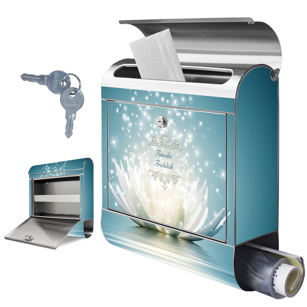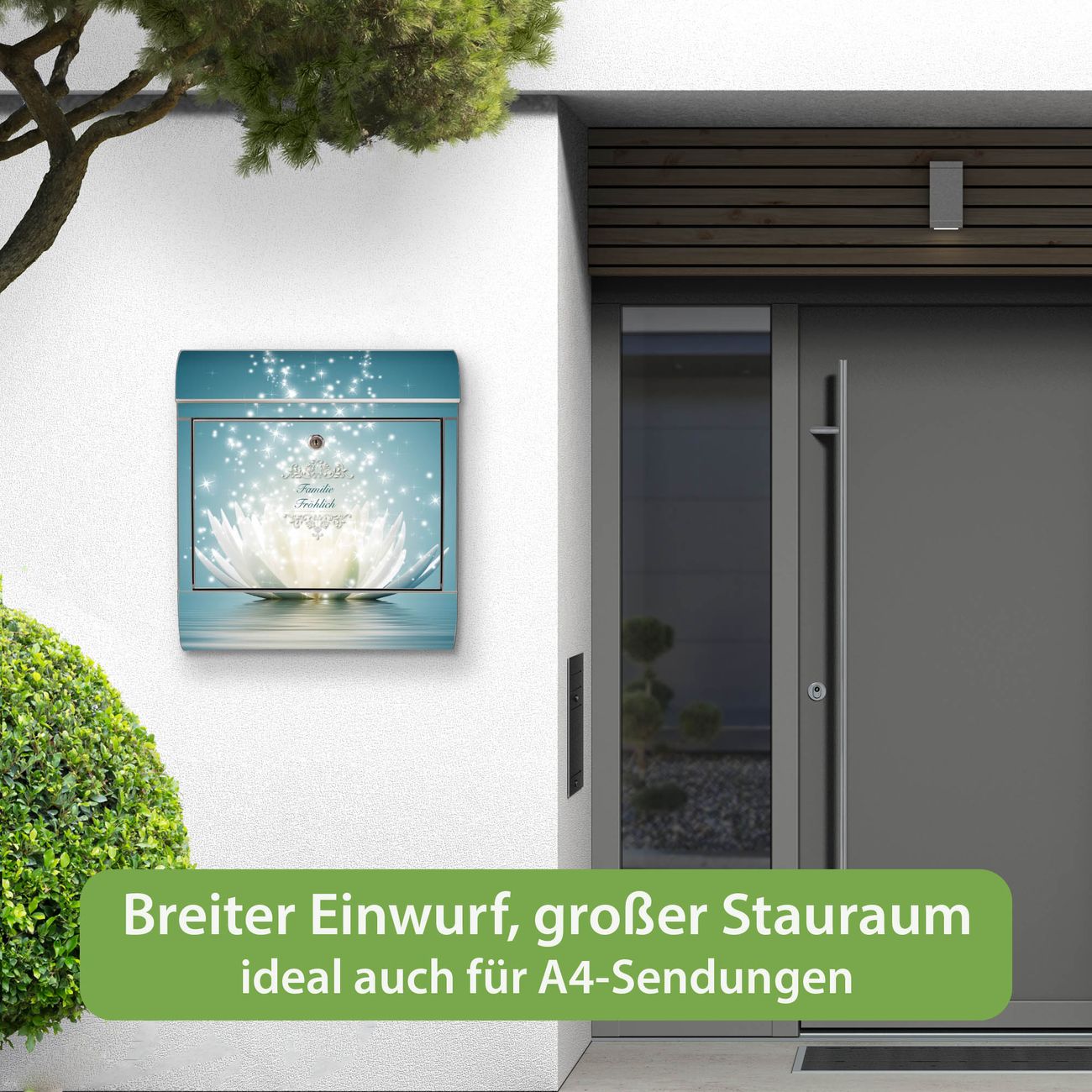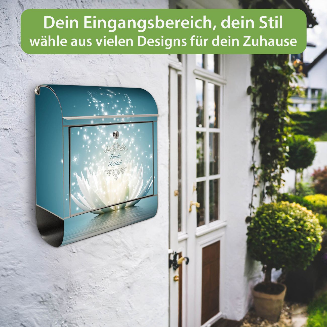 Wandbriefkasten Edelstahl Motiv Magische Lotusblüte