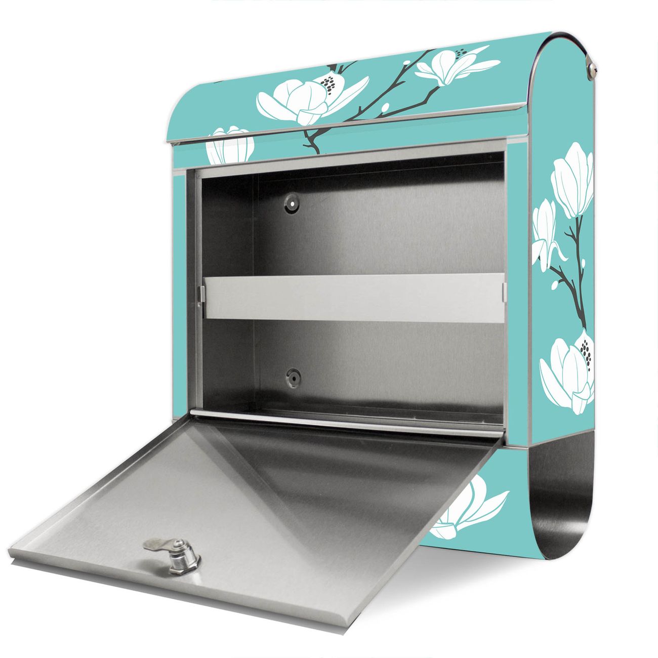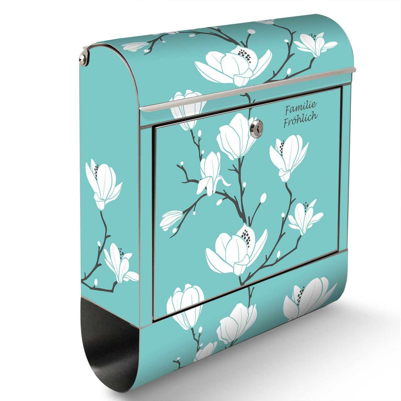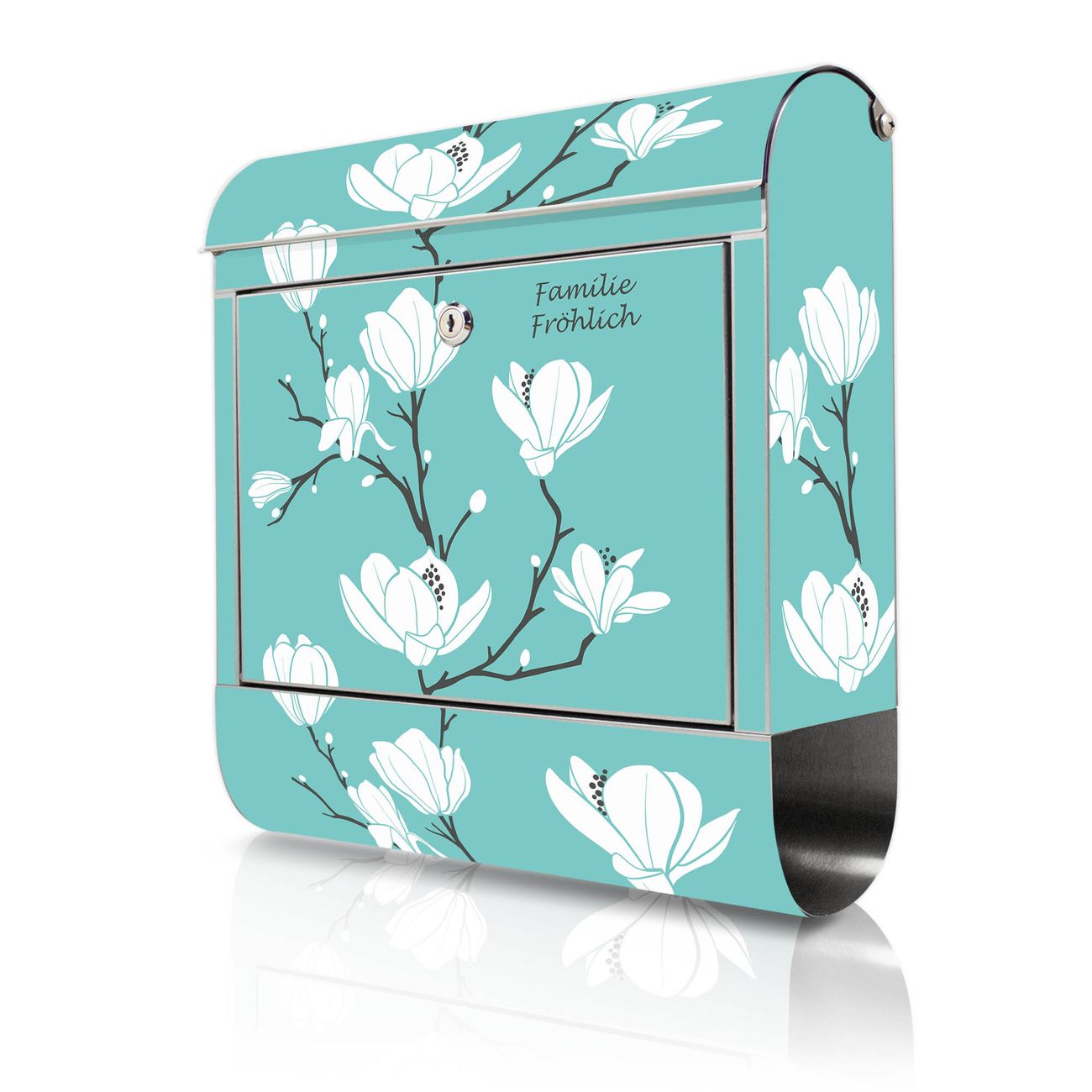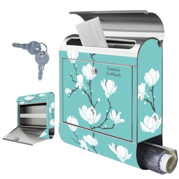 Wandbriefkasten Edelstahl Motiv Magnolien