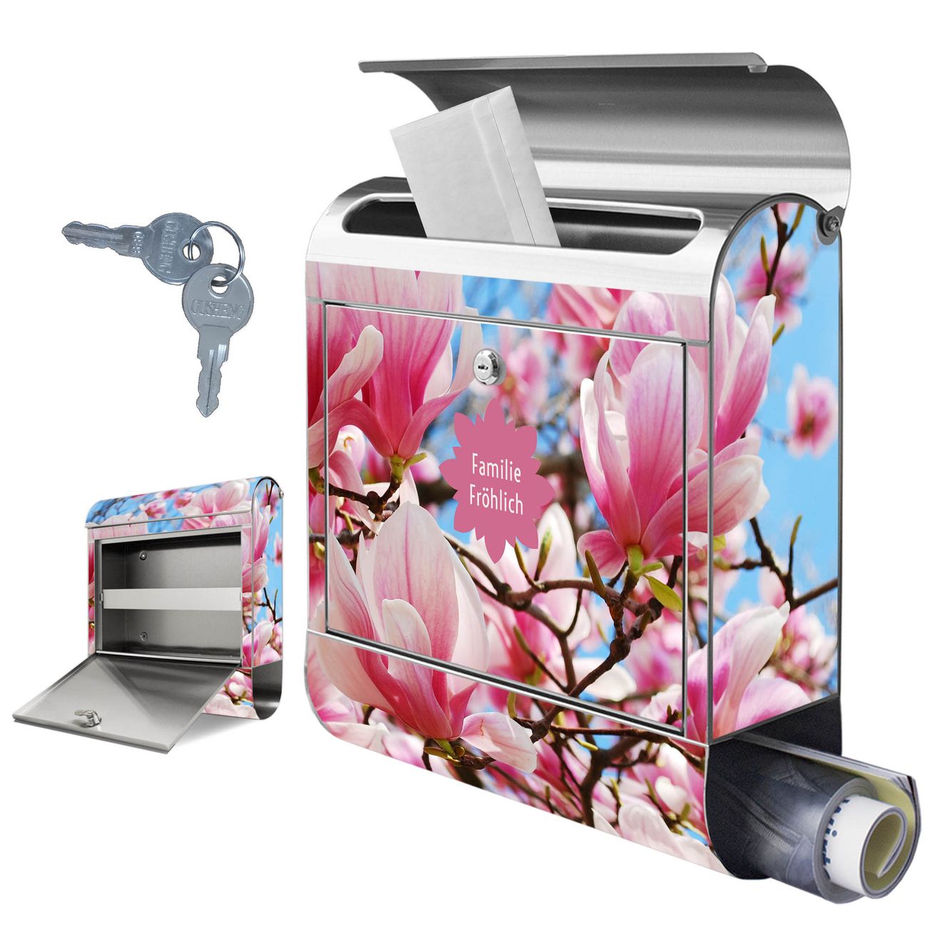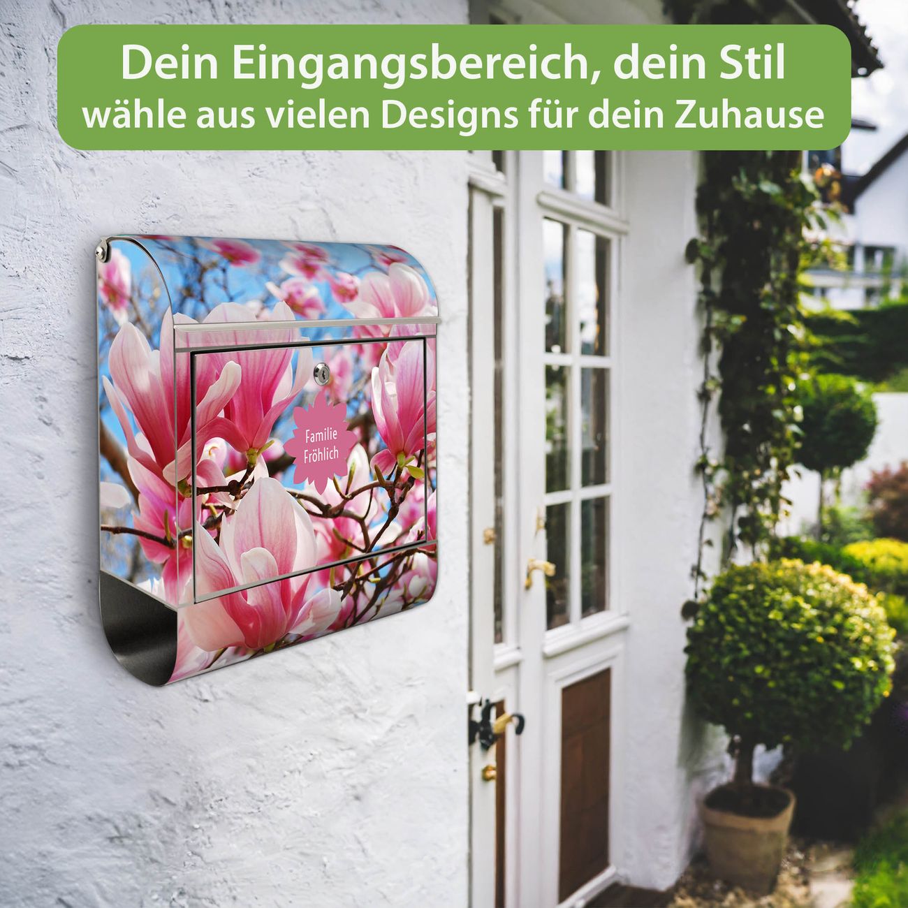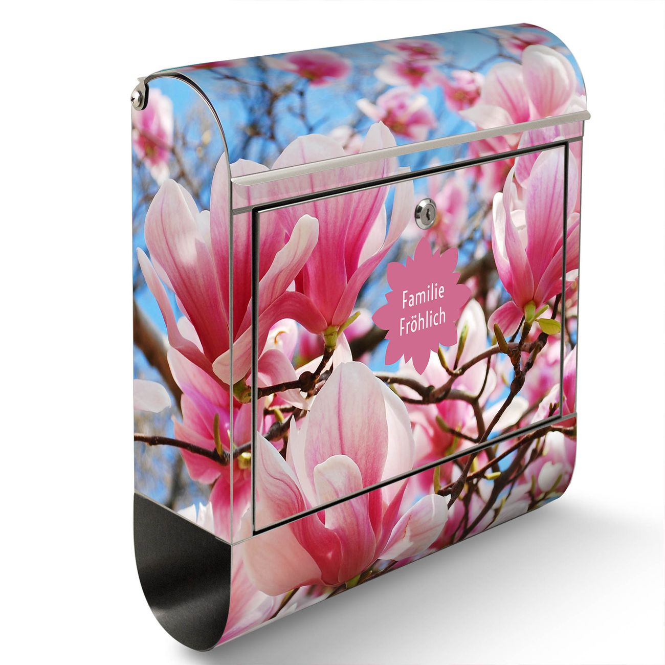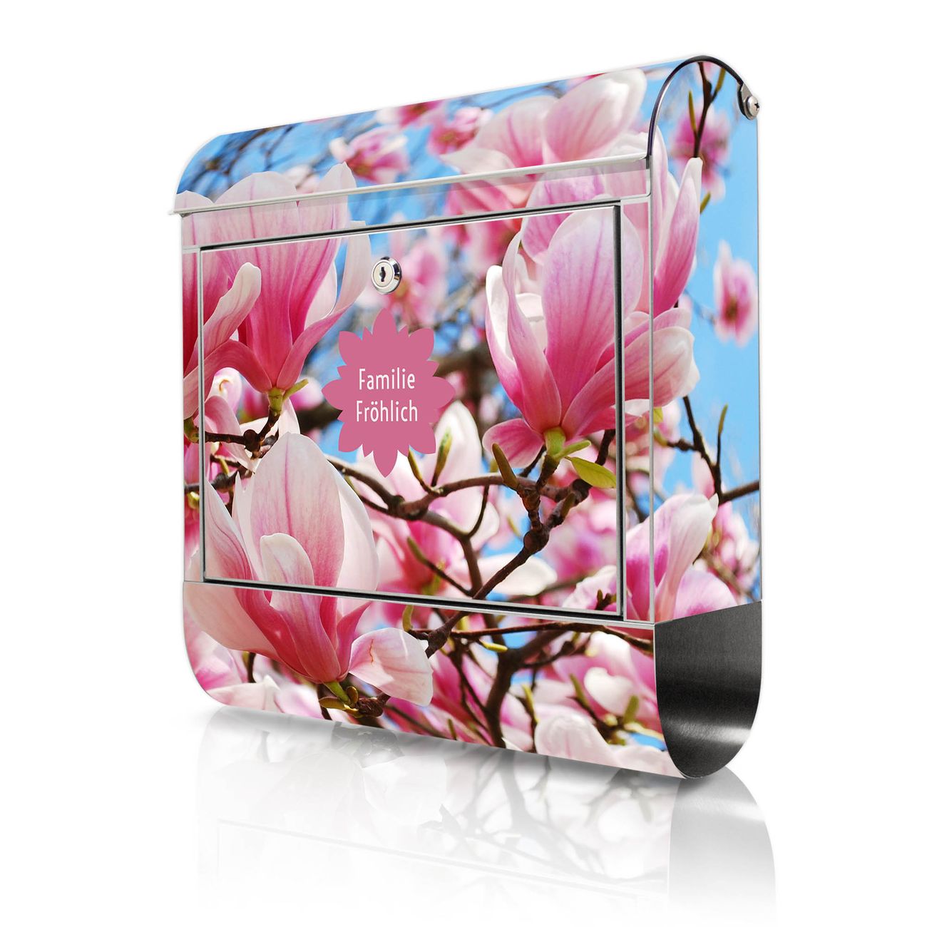 Wandbriefkasten Edelstahl Motiv Magnolienbaum