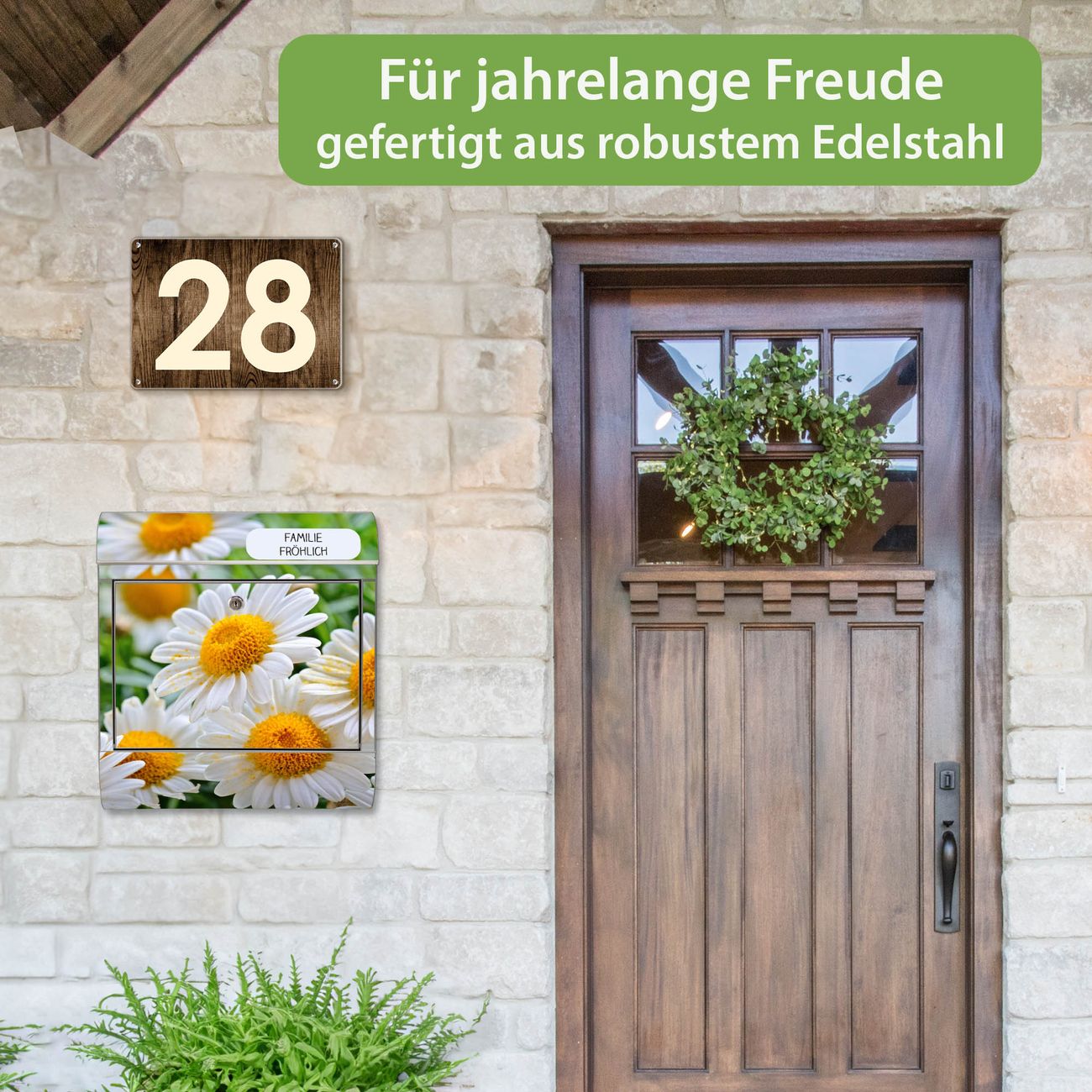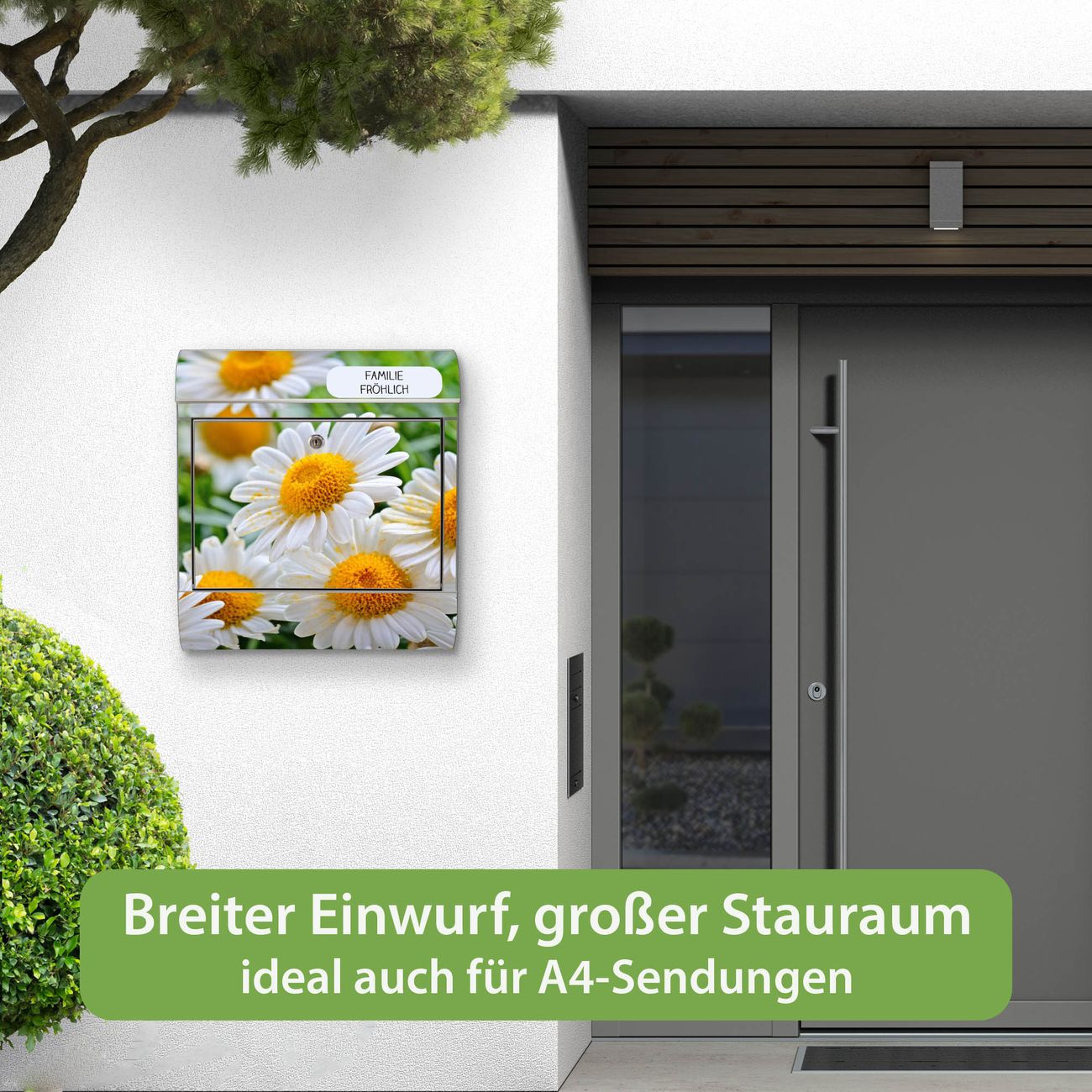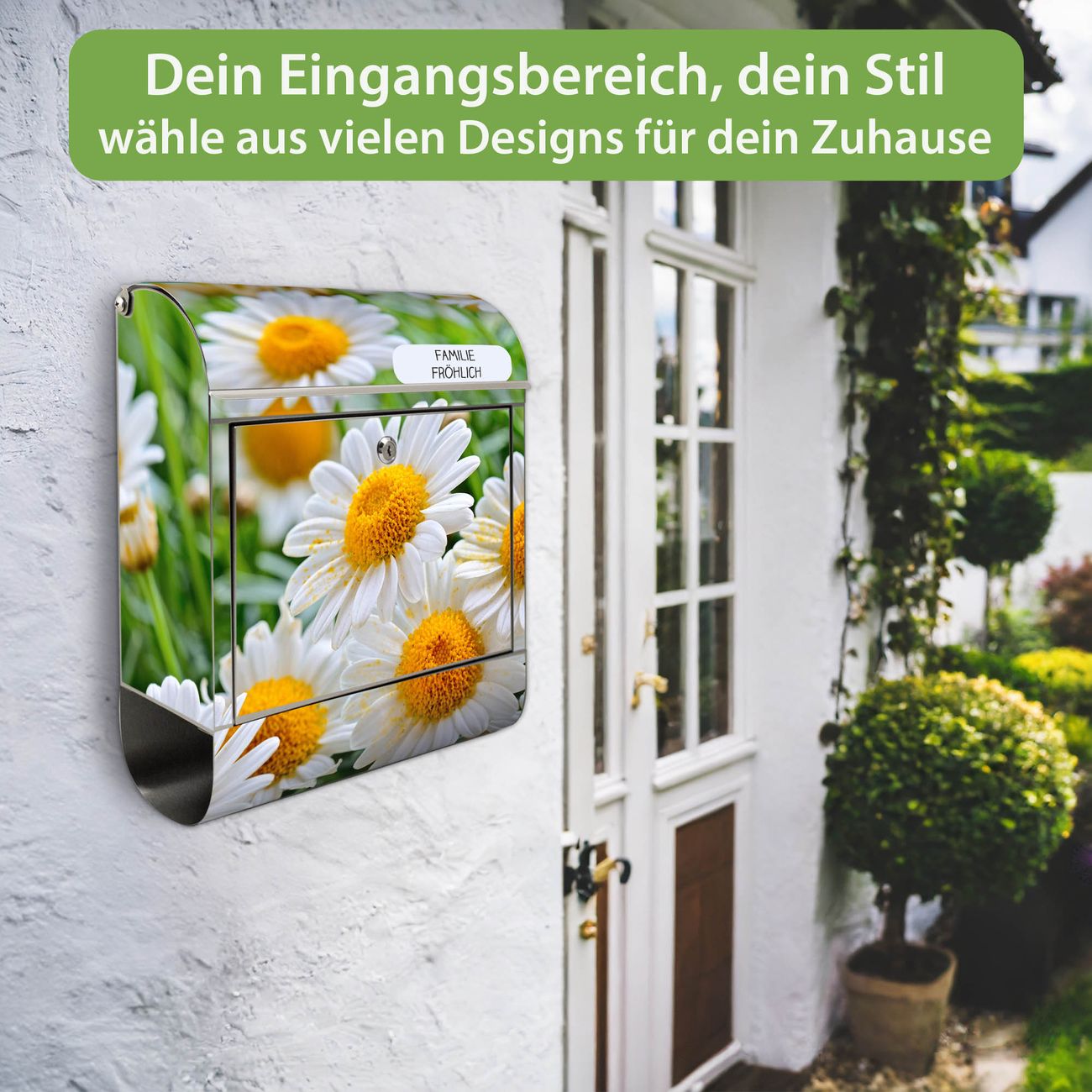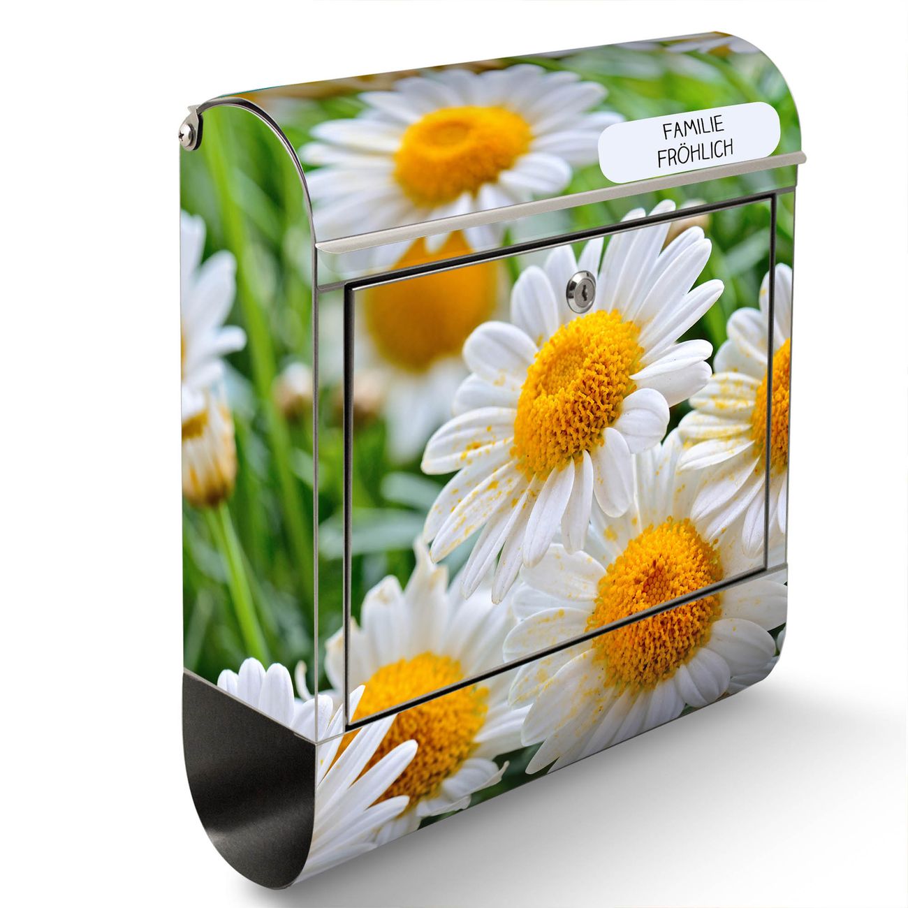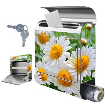 Wandbriefkasten Edelstahl Motiv Margeriten Illustration