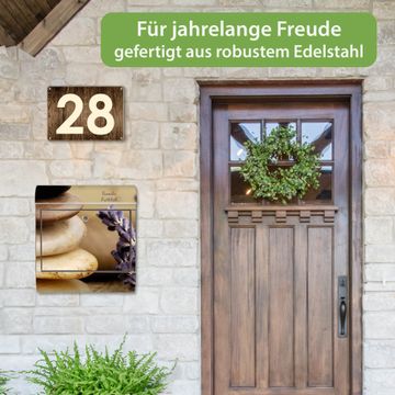 FUNKTION: Der banjado Edelstahl Briefkasten mit Motiv Motiv Meditation bietet Ihnen mit seinem Fassungsvermögen genügend Platz auch für große A4 Sendungen. Das integrierte Zeitungsfach eignet sich hervorragend um unkompliziert die Tageszeitung zu fassen. Auf Wunsch können Sie bei uns den passenden Ständer kaufen und so aus dem Wandbriefkasten einen Standbriefkasten machen. DESIGN: Der Motivbriefkasten hat ein sehr ansprechendes und ausgefallenes Design, damit entlocken Sie Ihren Nachbarn und dem Postboten ein Lächeln. Heben Sie Sich ab von der tristen grauen Masse ohne auf Funktionalität zu verzichten. DETAILS: Der Design Briefkasten mit Motiv Motiv Meditation besteht aus hochwertigem 18/0 Edelstahl. Das Motiv besteht aus einer wetter- und UV-resistenten Folie, die mit einem Schutzlaminat überzogen ist. Der Briefkasten wird mit Montagematerial und zwei Schlüsseln geliefert. NUTZEN: Sie können diesen Briefkasten sowohl als Wandbriefkasten montieren oder einen passenden Ständer auswählen und als Standbriefkasten einbetonieren. Die Größe bietet genügend Platz für Sendungen aller Art, das hochwertige Edelstahl ist rostfrei und die Motivfolie absolut wetterfest. SCHUTZ: Um Ihre Post optimal vor Witterungseinflüssen wie Starkregen zu schützen, empfehlen wir, den Briefkasten geschützt anzubringen. BANJADO: Ihr Briefkasten wird in Sachsen in einer kleinen Manufaktur von Hand veredelt. Die Motivfolie ist lösungsmittelfrei und schutzlaminiert, dies sorgt für einen langen Halt. Wir legen großen Wert auf die Verbindung von Funktionalität und Design. Sie erhalten Handarbeit aus Sachsen.
