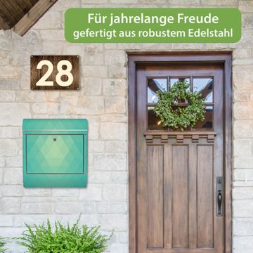 FUNKTION: Der banjado Edelstahl Briefkasten mit Motiv Motiv Meeresblau bietet Ihnen mit seinem Fassungsvermögen genügend Platz auch für große A4 Sendungen. Das integrierte Zeitungsfach eignet sich hervorragend um unkompliziert die Tageszeitung zu fassen. Auf Wunsch können Sie bei uns den passenden Ständer kaufen und so aus dem Wandbriefkasten einen Standbriefkasten machen. DESIGN: Der Motivbriefkasten hat ein sehr ansprechendes und ausgefallenes Design, damit entlocken Sie Ihren Nachbarn und dem Postboten ein Lächeln. Heben Sie Sich ab von der tristen grauen Masse ohne auf Funktionalität zu verzichten. DETAILS: Der Design Briefkasten mit Motiv Motiv Meeresblau besteht aus hochwertigem 18/0 Edelstahl. Das Motiv besteht aus einer wetter- und UV-resistenten Folie, die mit einem Schutzlaminat überzogen ist. Der Briefkasten wird mit Montagematerial und zwei Schlüsseln geliefert. NUTZEN: Sie können diesen Briefkasten sowohl als Wandbriefkasten montieren oder einen passenden Ständer auswählen und als Standbriefkasten einbetonieren. Die Größe bietet genügend Platz für Sendungen aller Art, das hochwertige Edelstahl ist rostfrei und die Motivfolie absolut wetterfest. SCHUTZ: Um Ihre Post optimal vor Witterungseinflüssen wie Starkregen zu schützen, empfehlen wir, den Briefkasten geschützt anzubringen. BANJADO: Ihr Briefkasten wird in Sachsen in einer kleinen Manufaktur von Hand veredelt. Die Motivfolie ist lösungsmittelfrei und schutzlaminiert, dies sorgt für einen langen Halt. Wir legen großen Wert auf die Verbindung von Funktionalität und Design. Sie erhalten Handarbeit aus Sachsen.