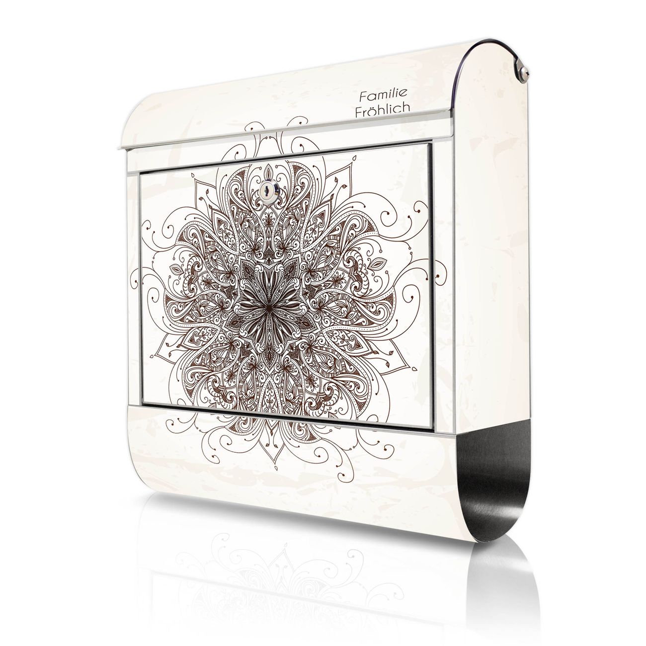 Wandbriefkasten Edelstahl Motiv Mehendi