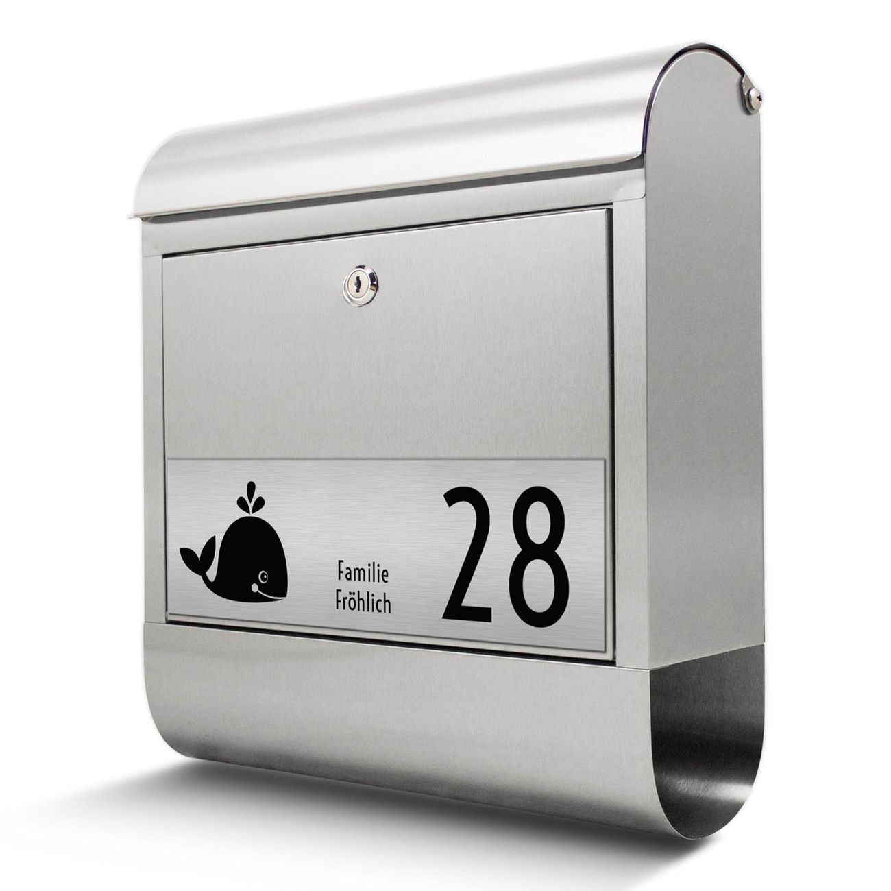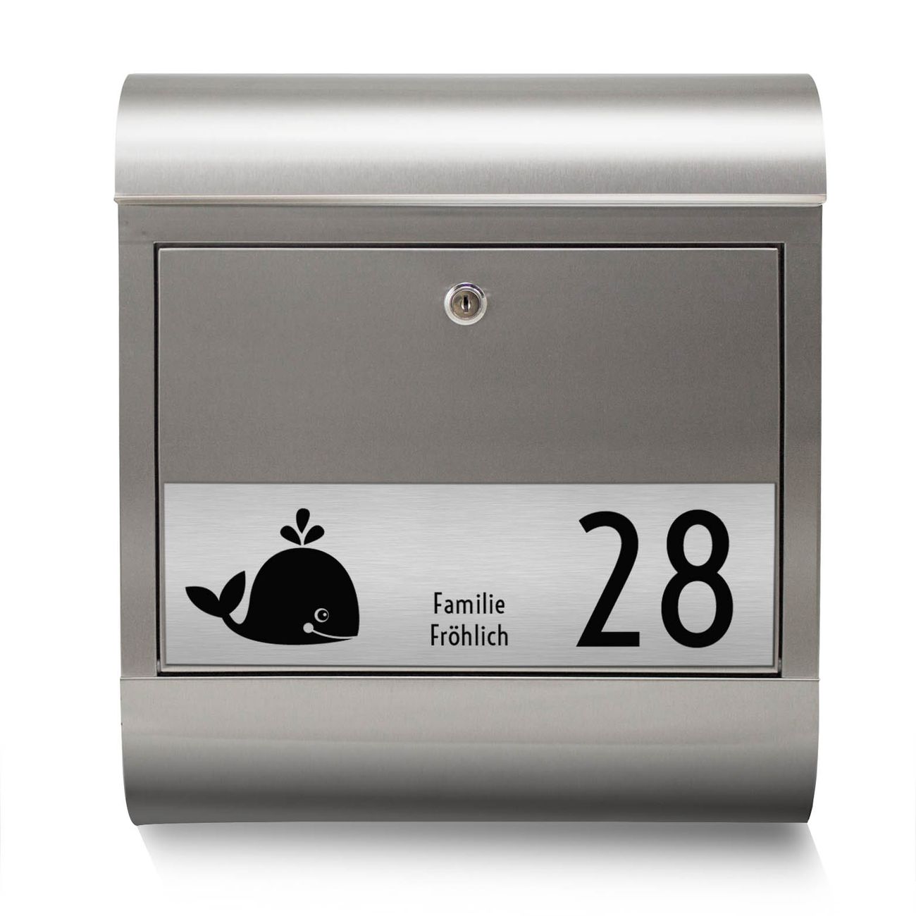 Heben Sie Sich von der tristen grauen Masse ab, ohne auf Funktionalität zu verzichten. Die Gravur Platte aus Acryl in Edelstahl-Optik ist 33x10cm groß und schmückt die Vorderseite des Briefkastens. Das Material sieht Edelstahl zum Verwechseln ähnlich und ist ebenso witterungsbeständig wie dieser. Durch das Bearbeiten erscheint an den gravierten Stellen die schwarze Unterschicht und hebt so in einem guten Kontrast ihren Wunschtext, Ihre Hausnummer und das Gravur Motiv Ahoy ab.