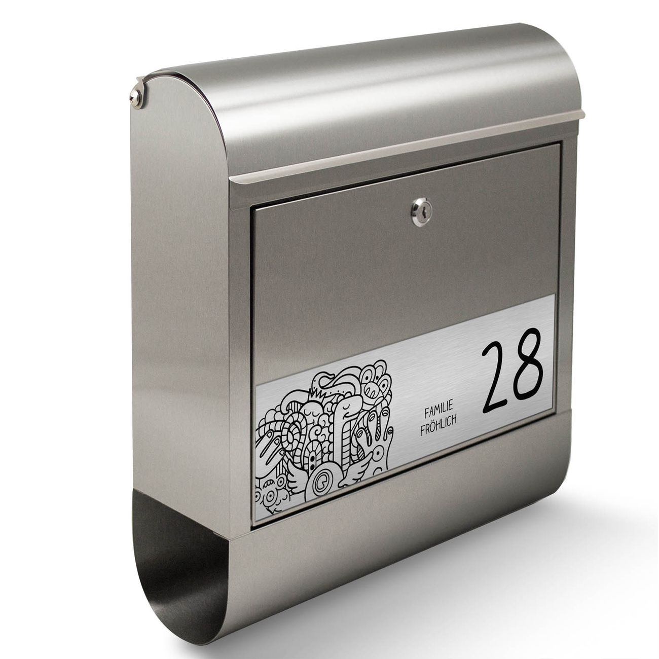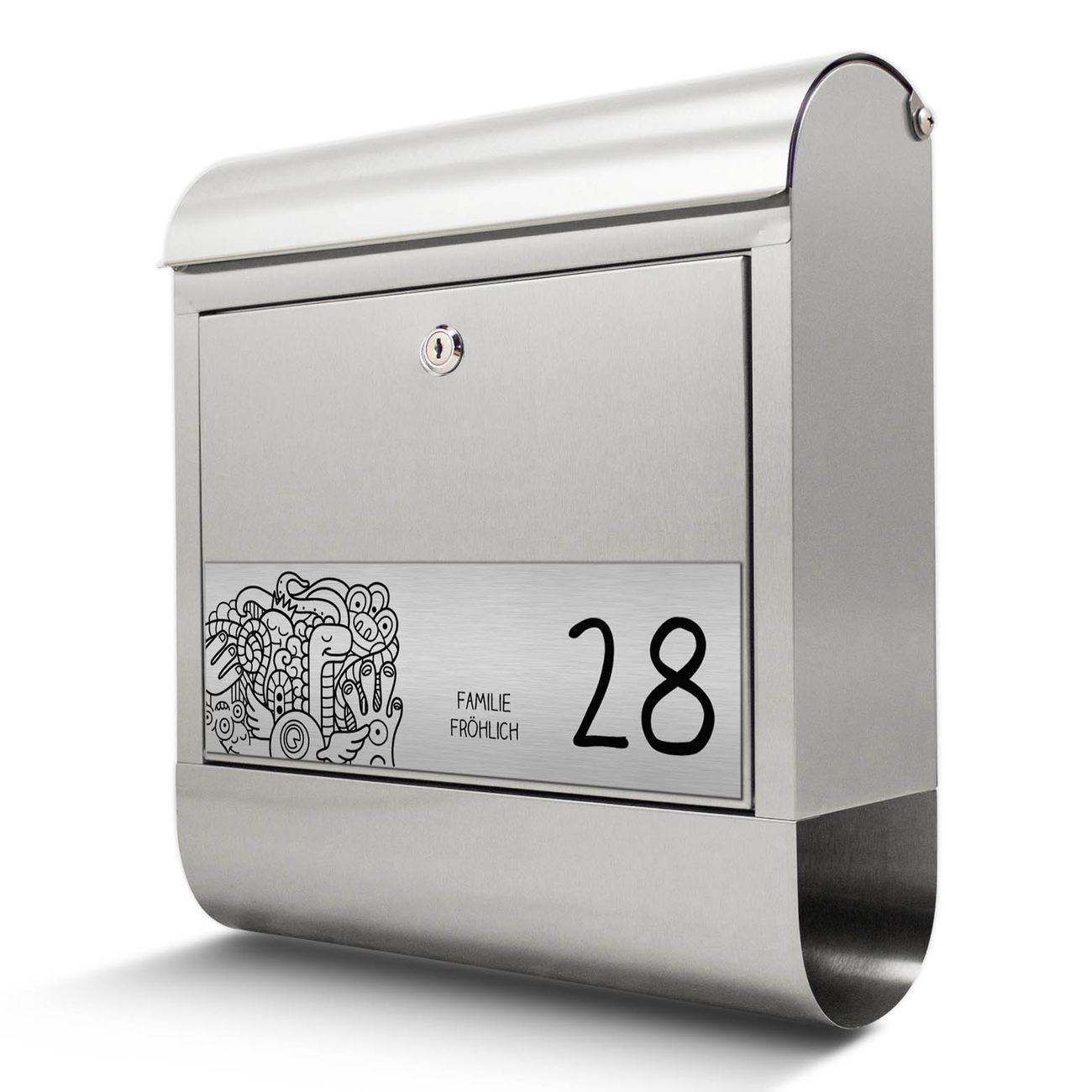 Der Briefkasten mit Gravur hat ein sehr ansprechendes und ausgefallenes Design, damit entlocken Sie Ihren Nachbarn und dem Postboten ein Lächeln. Der Design Briefkasten mit dem Gravur Motiv Birds Worms Freaks besteht aus hochwertigem 18/0 Edelstahl und wird mit Montagematerial und zwei Schlüsseln geliefert. Die Größe bietet genügend Platz für Sendungen aller Art, das hochwertige Edelstahl ist rostfrei und wetterfest.