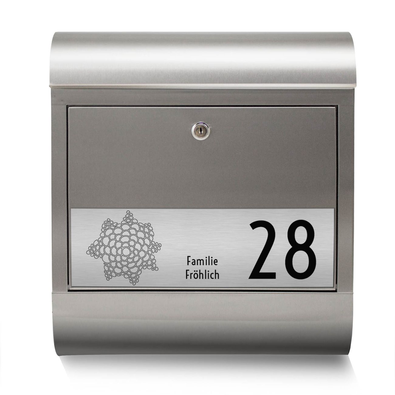 Wandbriefkasten Edelstahl mit Gravur Blume
