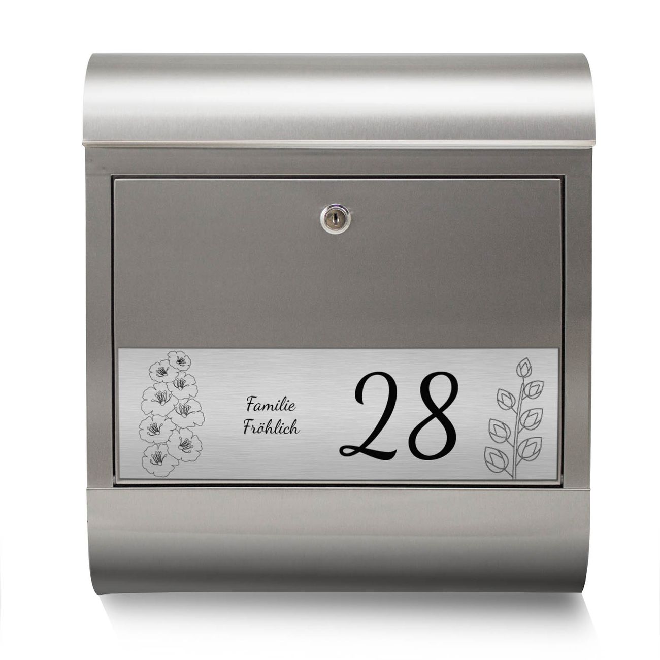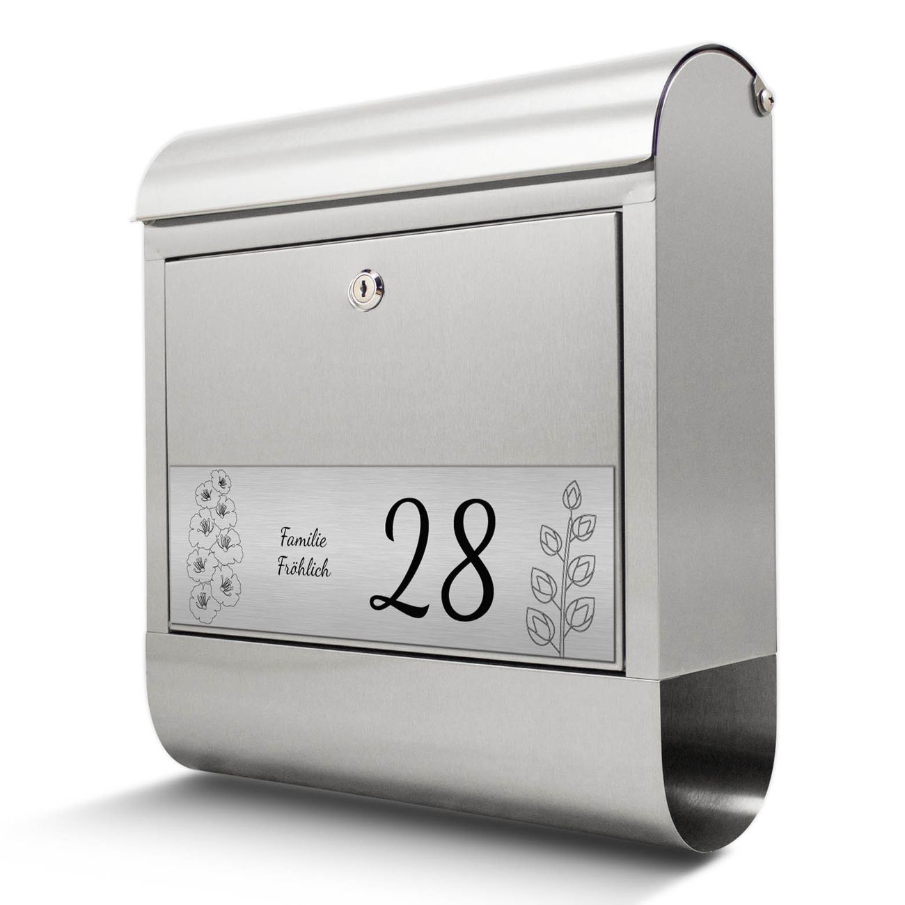 Wandbriefkasten Edelstahl mit Gravur Blumen