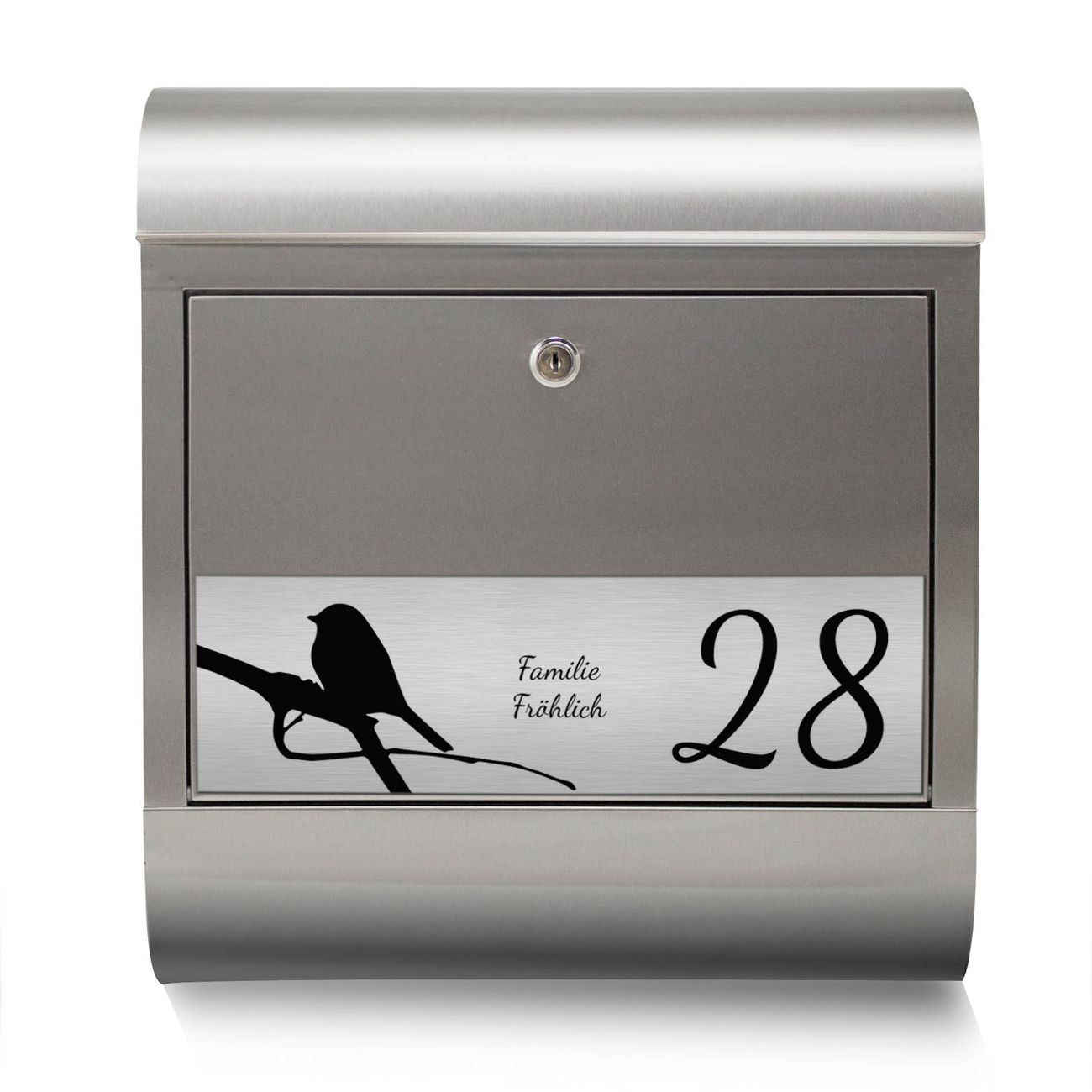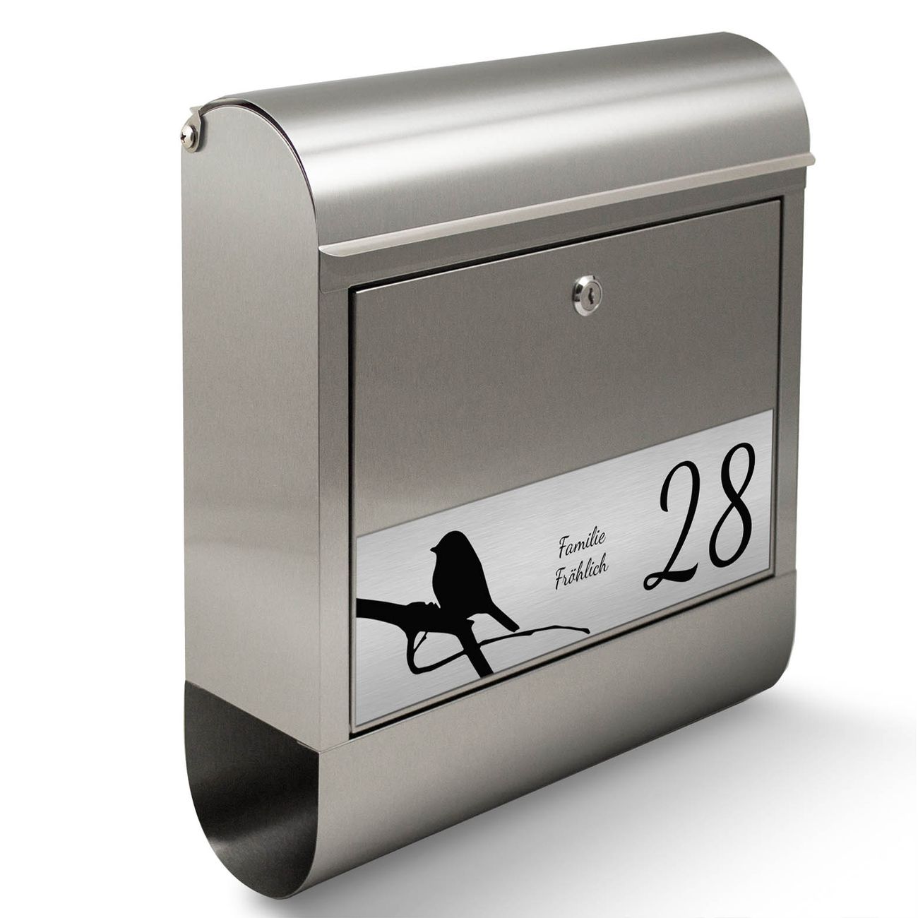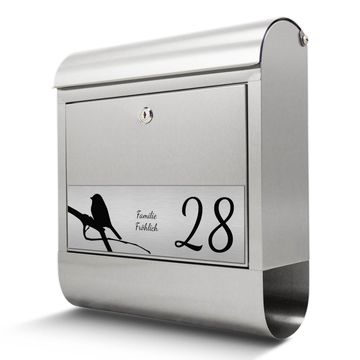 Wandbriefkasten Edelstahl mit Gravur Früher Vogel