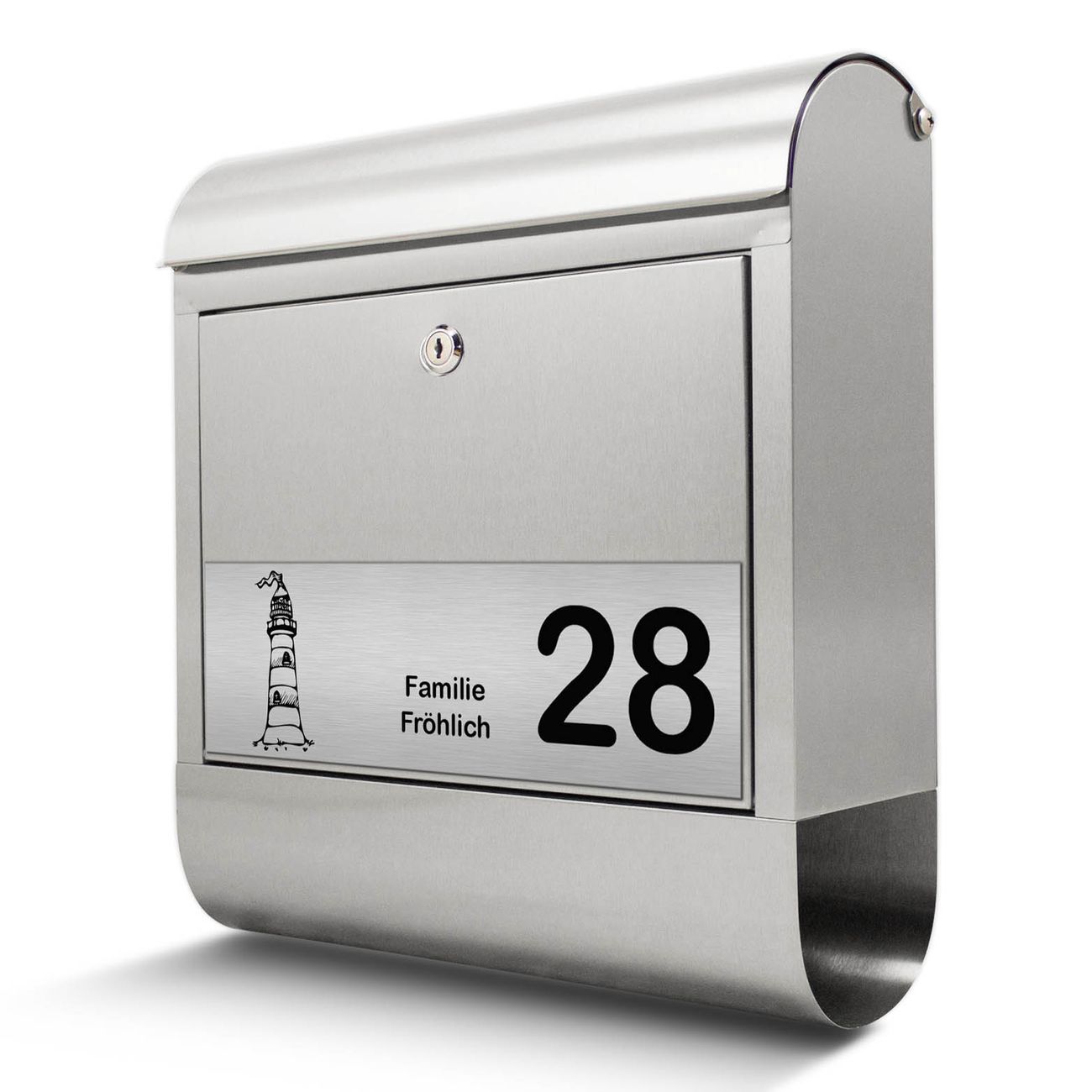 Der Briefkasten mit Gravur hat ein sehr ansprechendes und ausgefallenes Design, damit entlocken Sie Ihren Nachbarn und dem Postboten ein Lächeln. Der Design Briefkasten mit dem Gravur Motiv Leuchtturm besteht aus hochwertigem 18/0 Edelstahl und wird mit Montagematerial und zwei Schlüsseln geliefert. Die Größe bietet genügend Platz für Sendungen aller Art, das hochwertige Edelstahl ist rostfrei und wetterfest.
