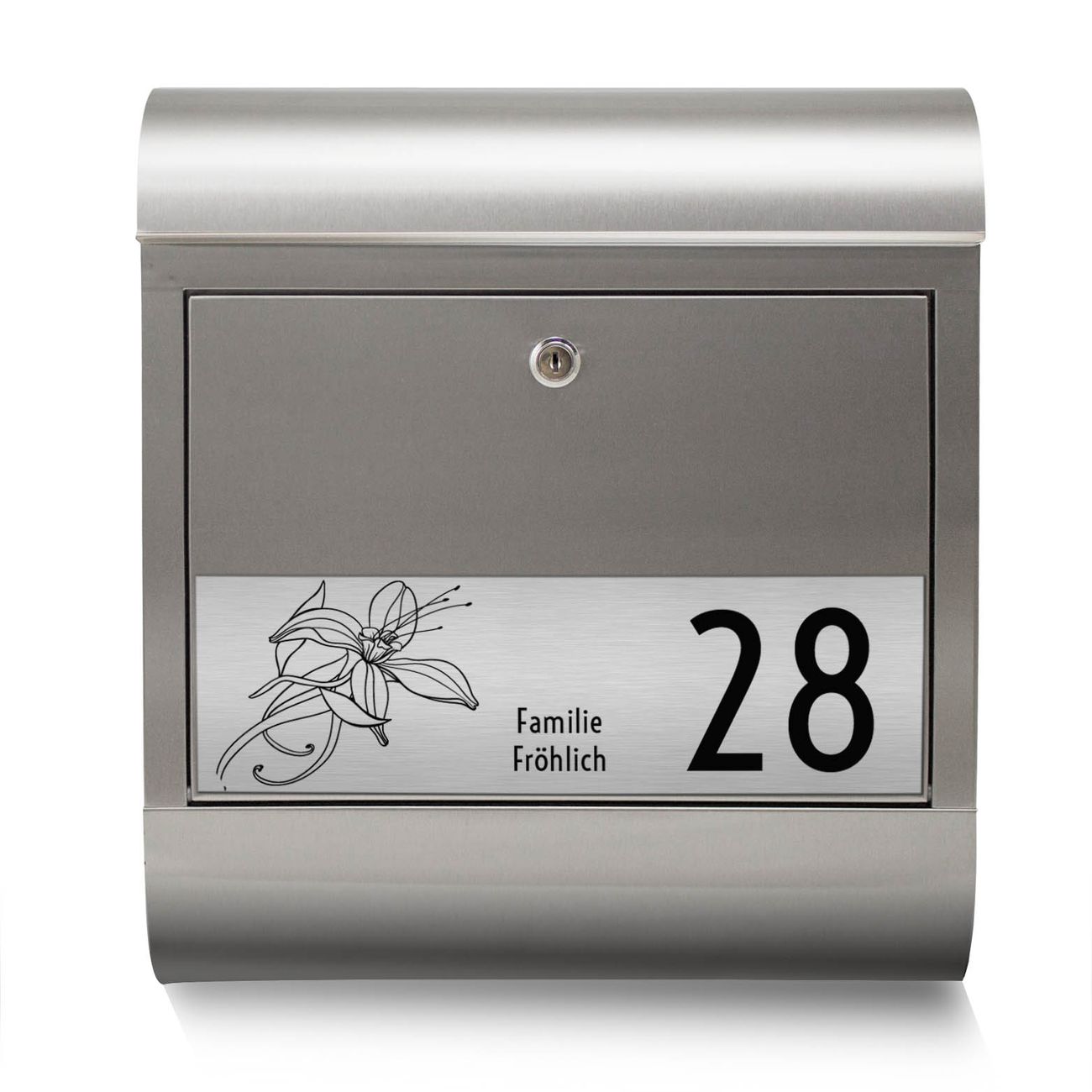 Wandbriefkasten Edelstahl mit Gravur Lilie